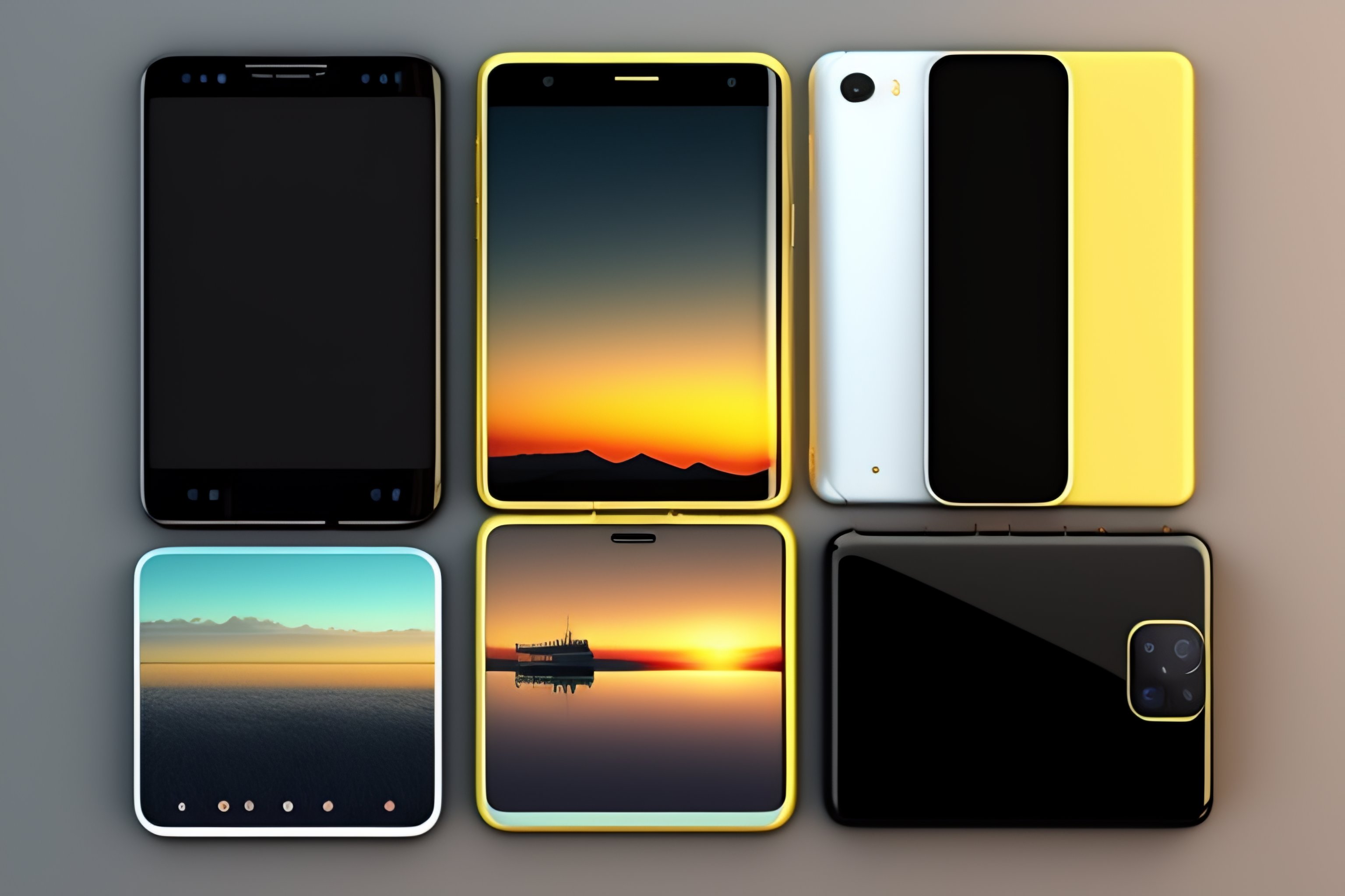 Realistic smartphone model. mobile phone frame with blank screen isolated templates, different angles views of the phone.