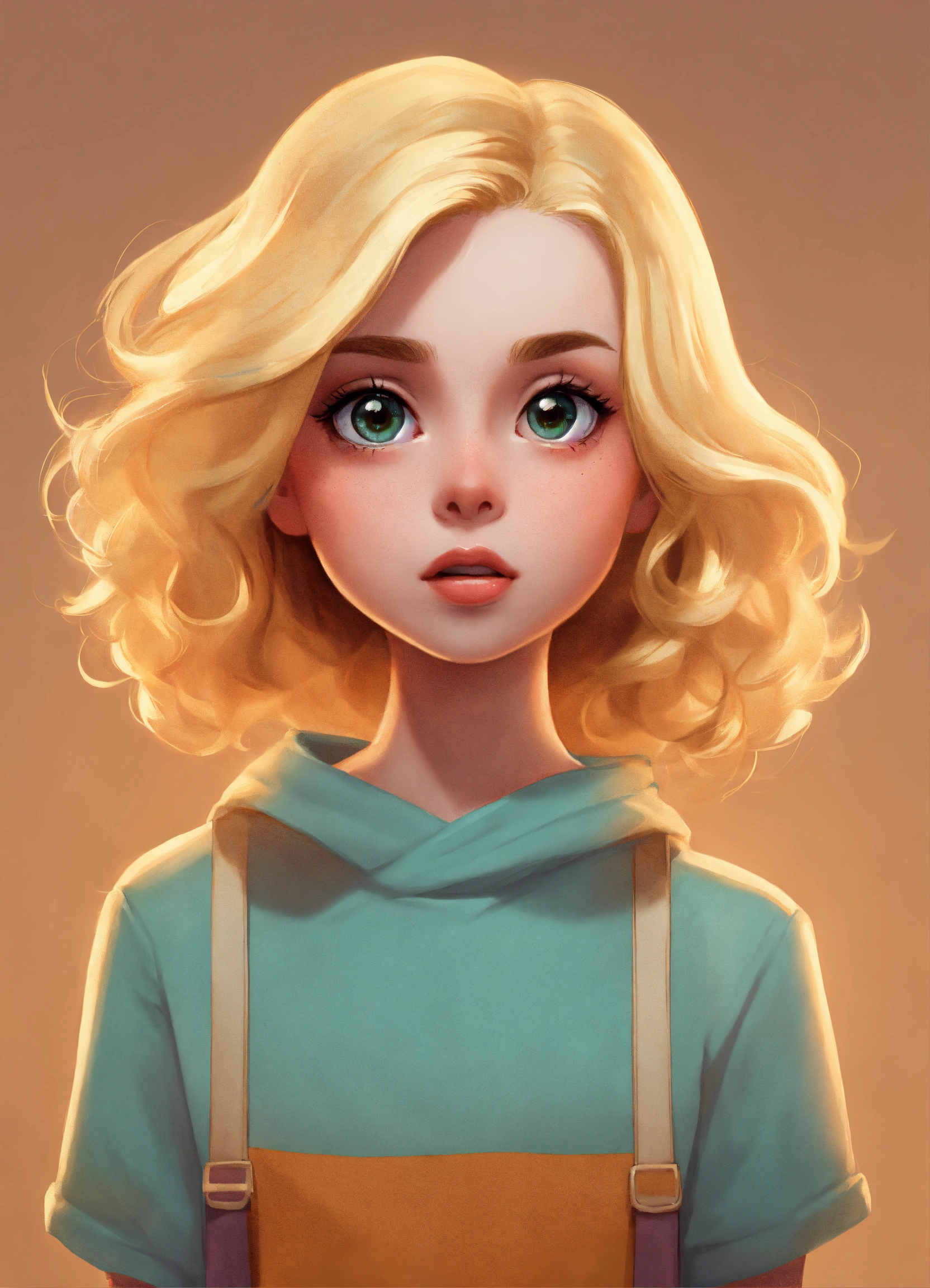 A minimalistic cartoon character portrait with blonde hair