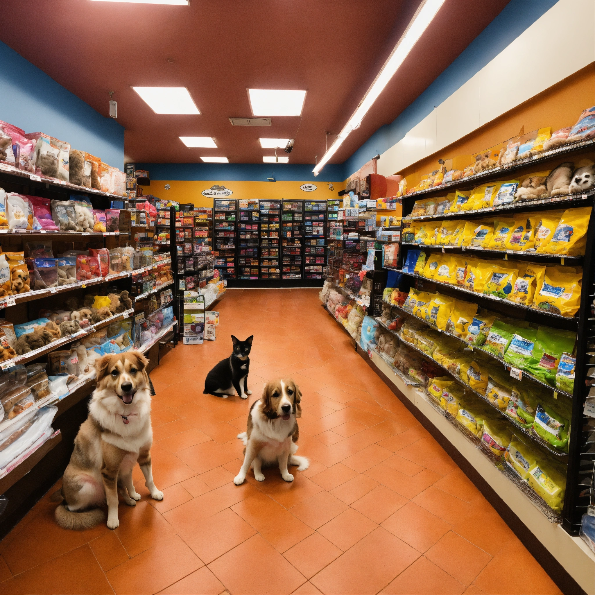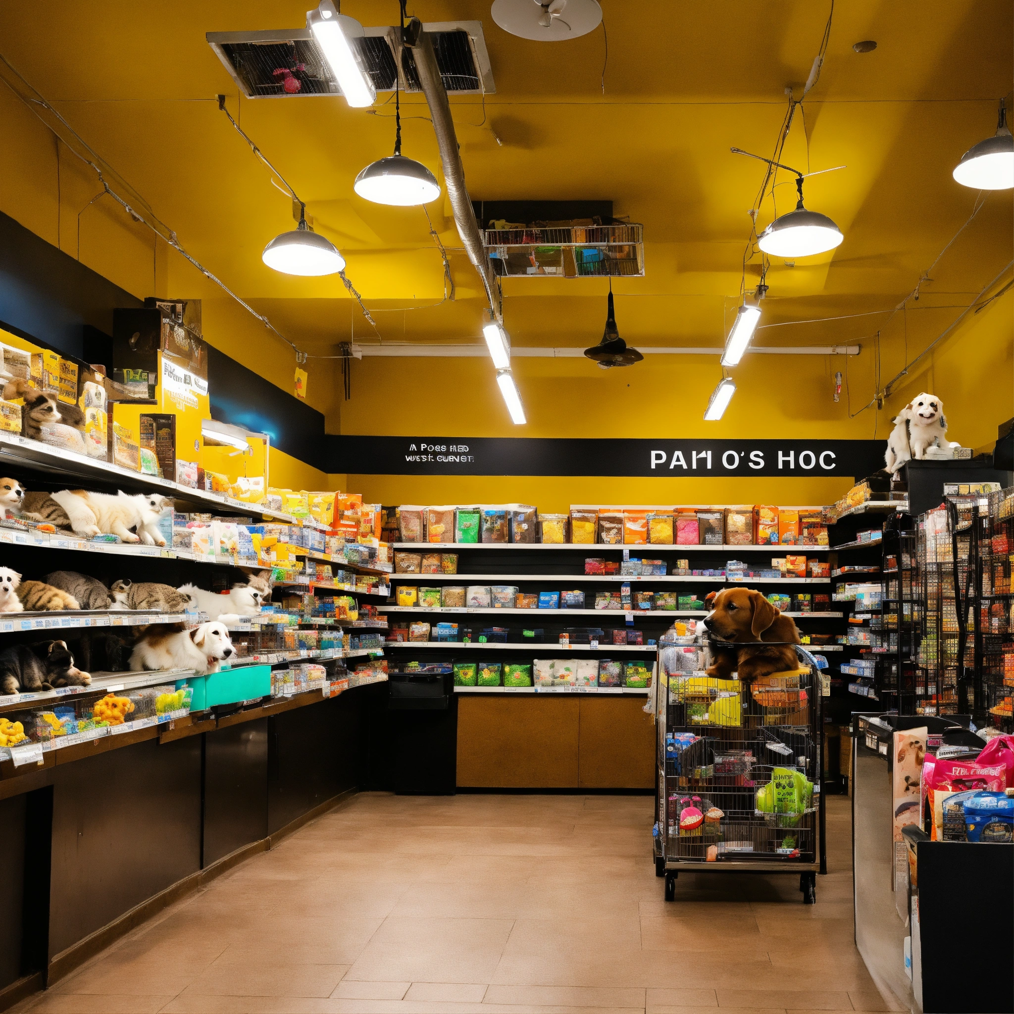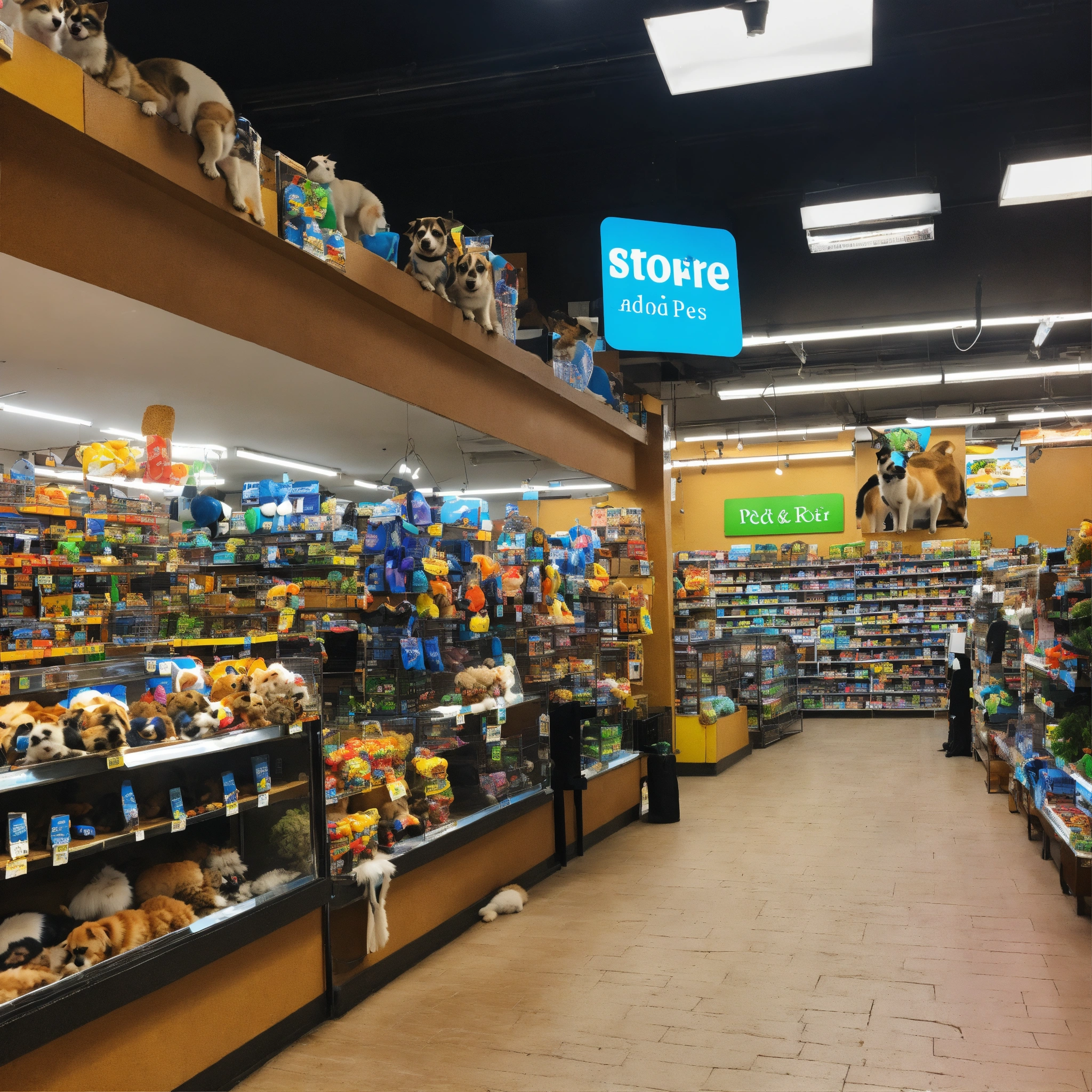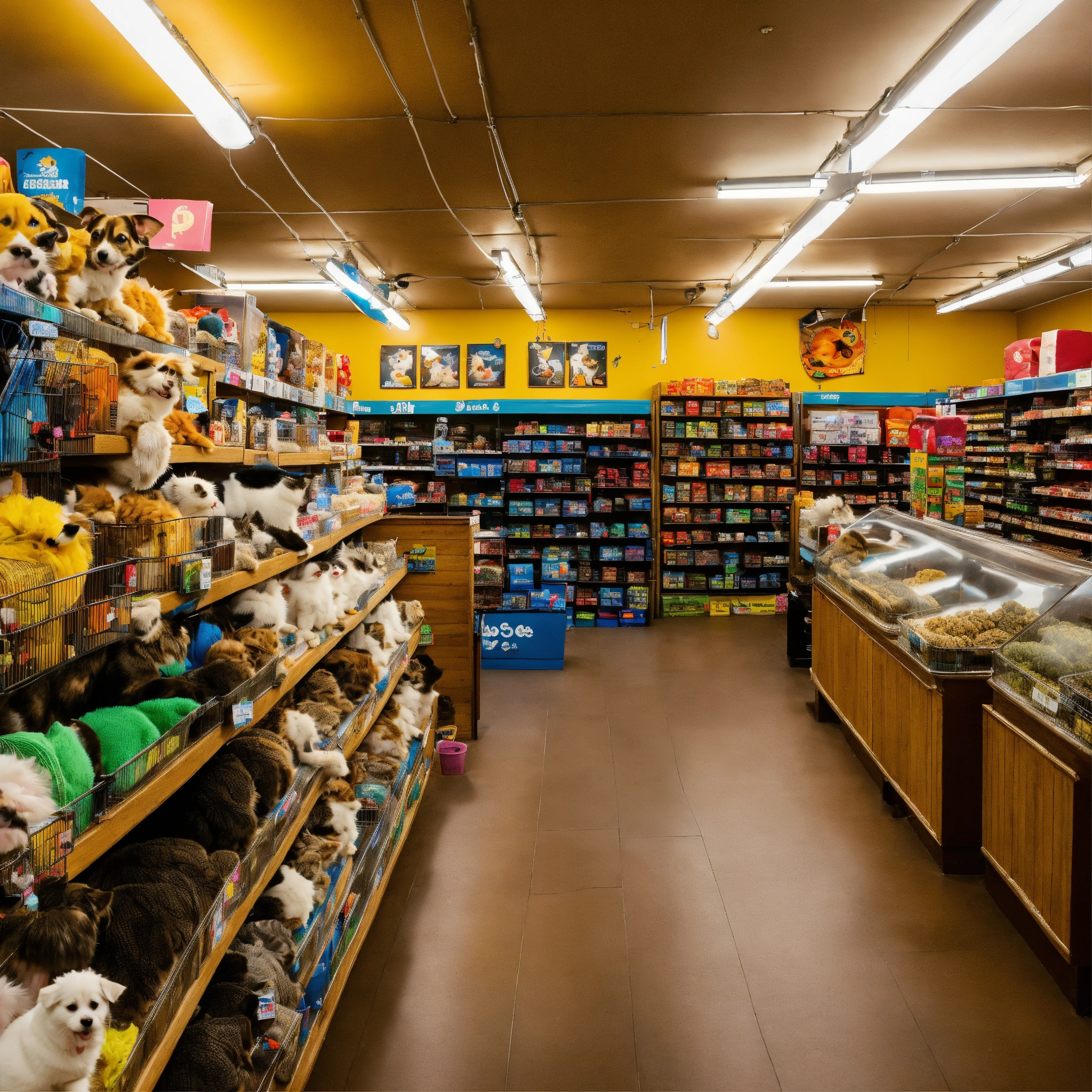 A photo of a pet store with a wide selection of pet supplies. the store is well-organized and has a friendly atmosphere. there are many different types of pets in the store, including dogs, cats, birds, and fish.