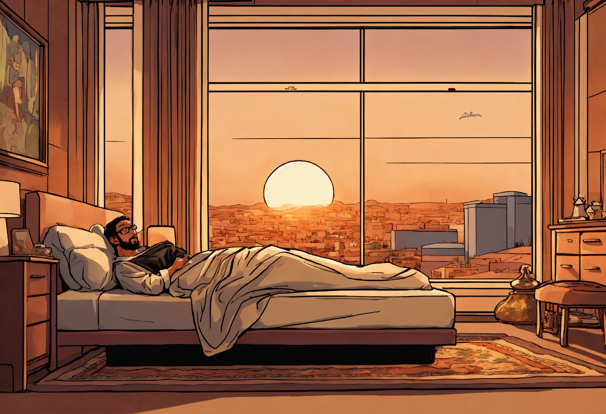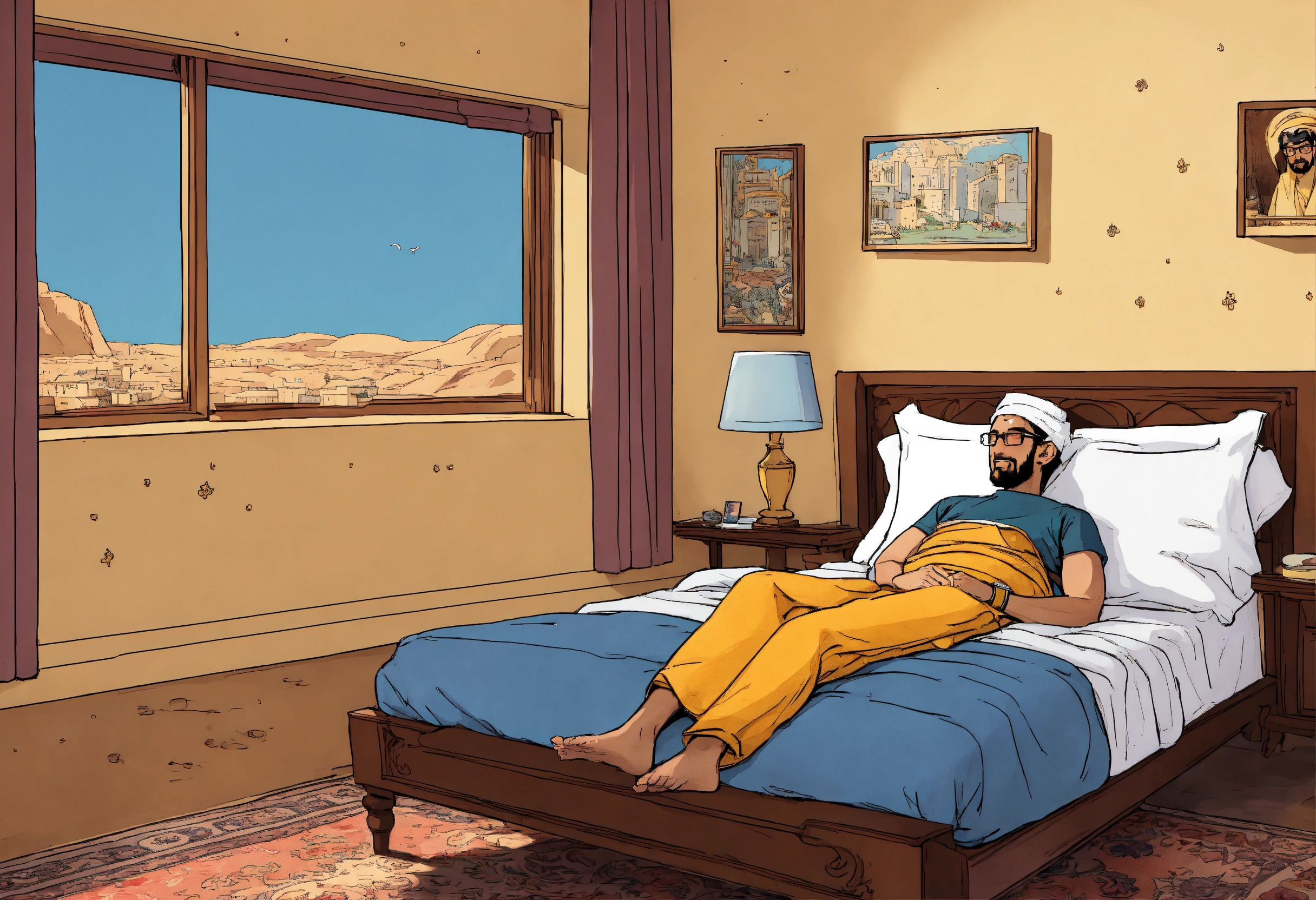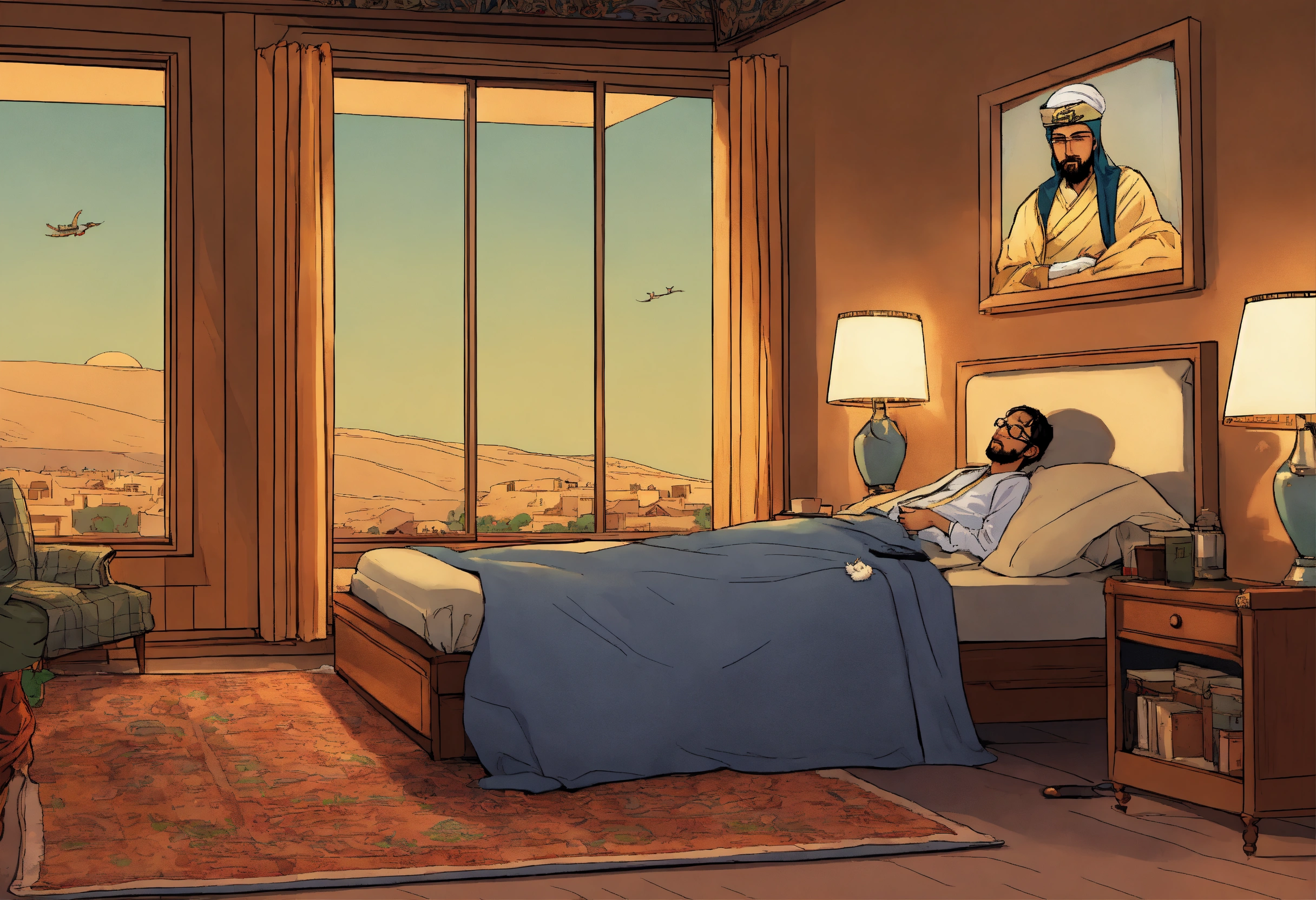 Sundar pichai comic strip of arab king sleeping by bedroom window scene