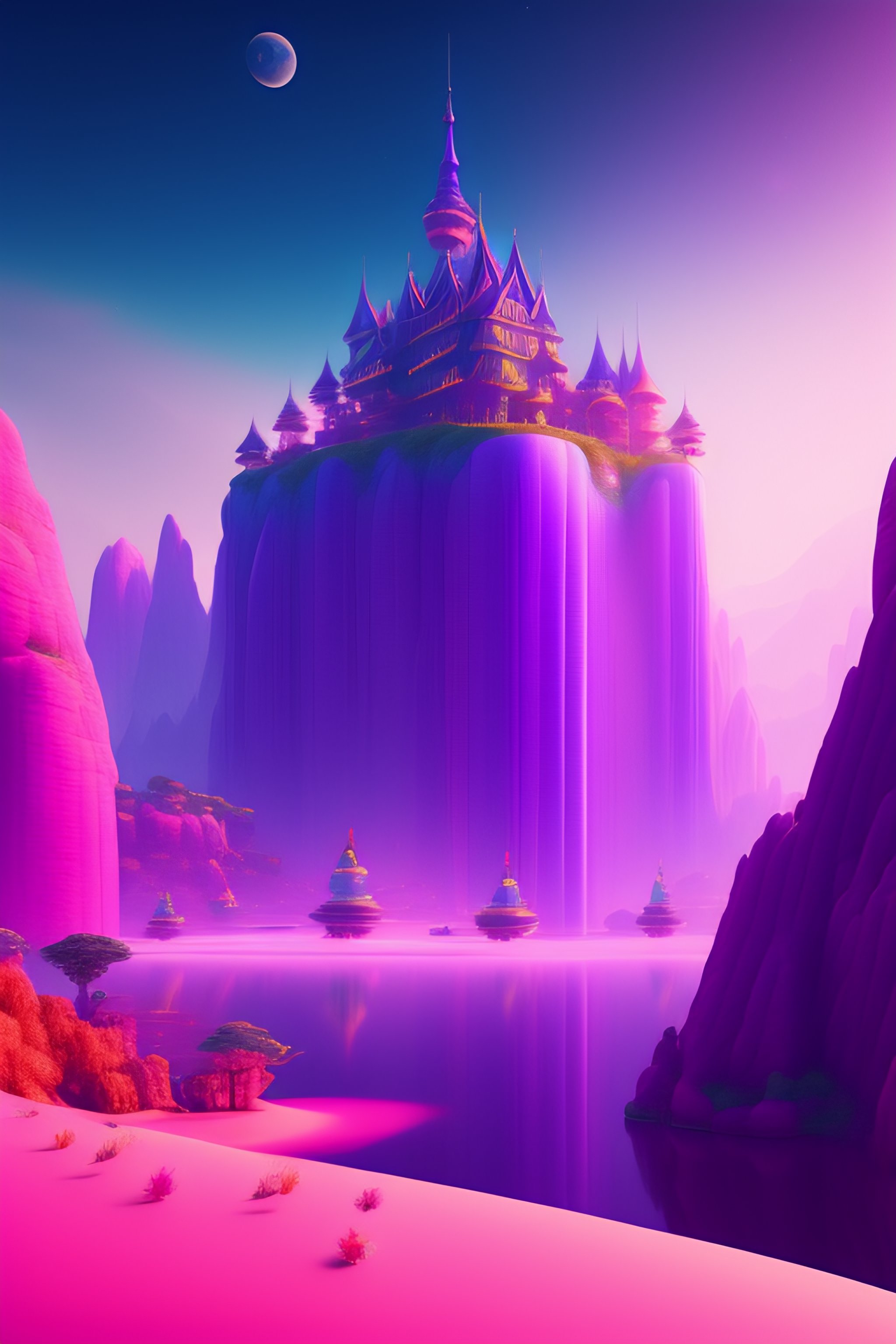 A kingdom, a castle on a purple alien planet. vibrant colors. intricate artwork by tooth wu and wlop and beeple. octane render, hyper realism, 8k