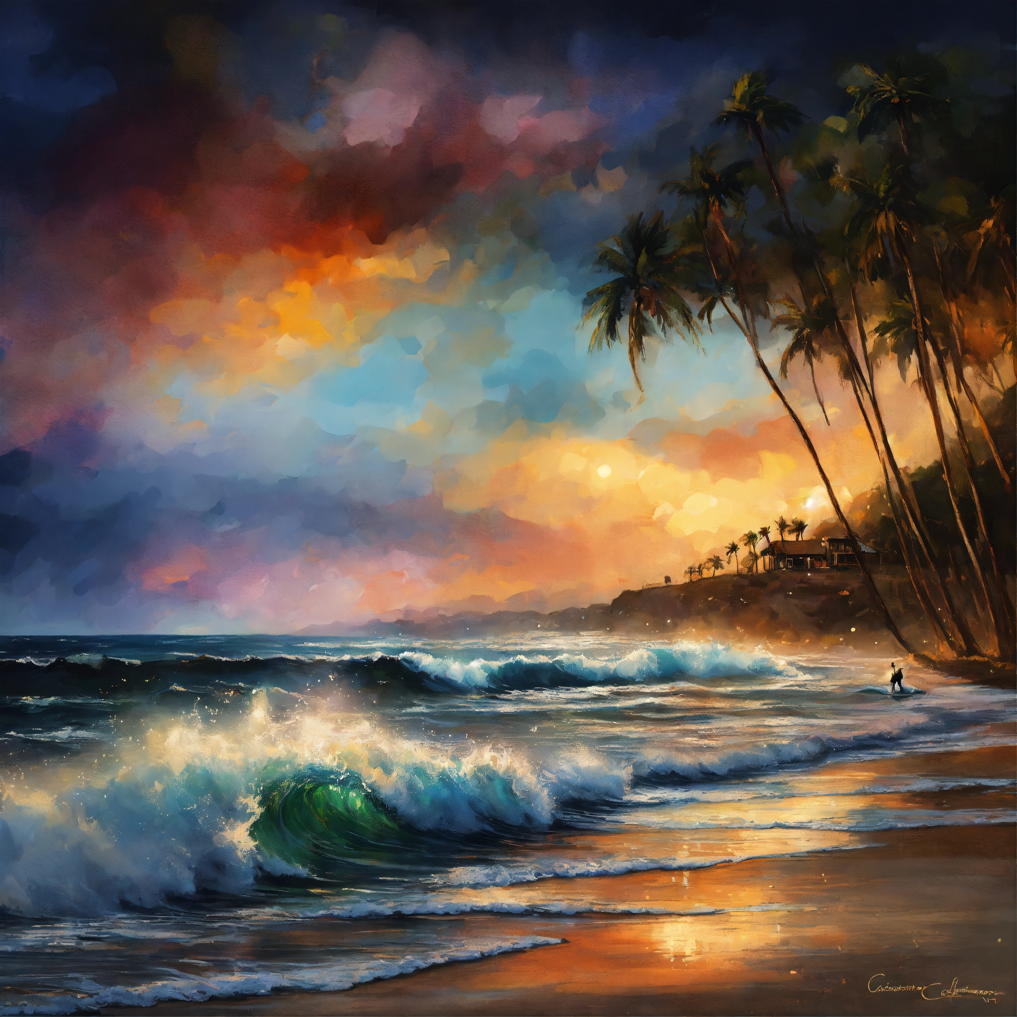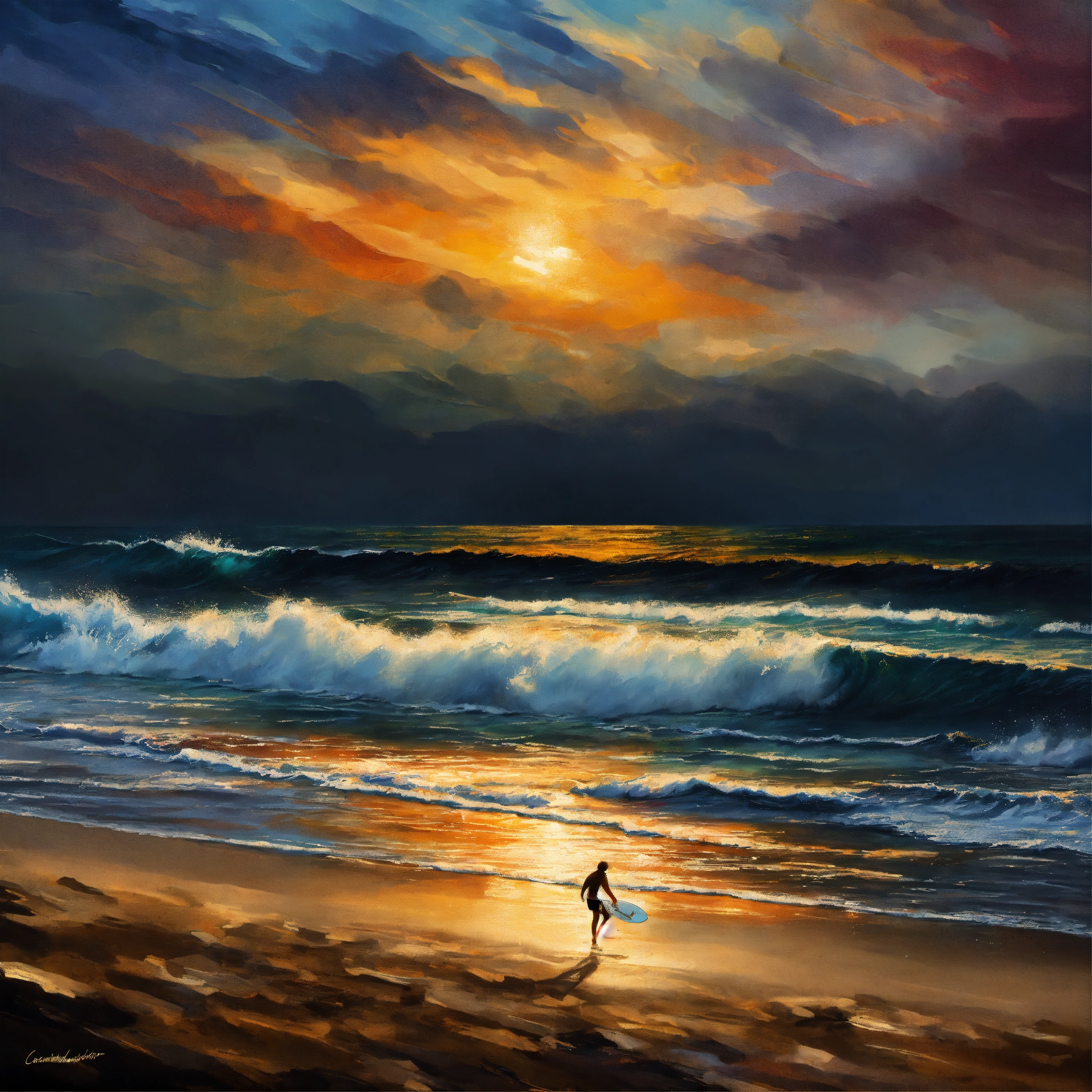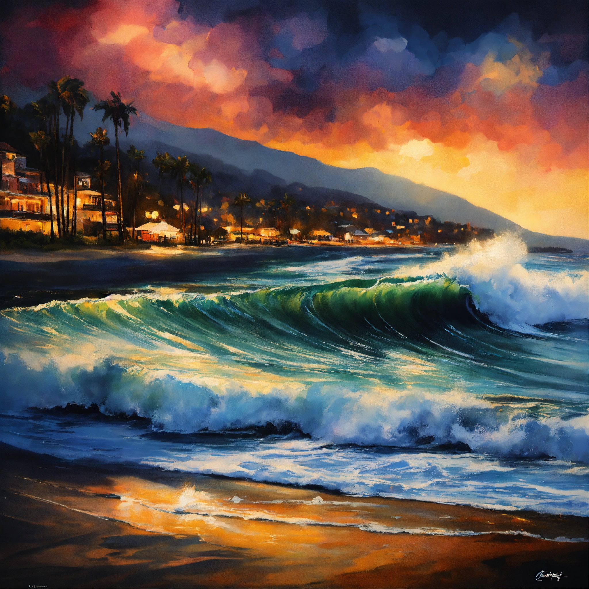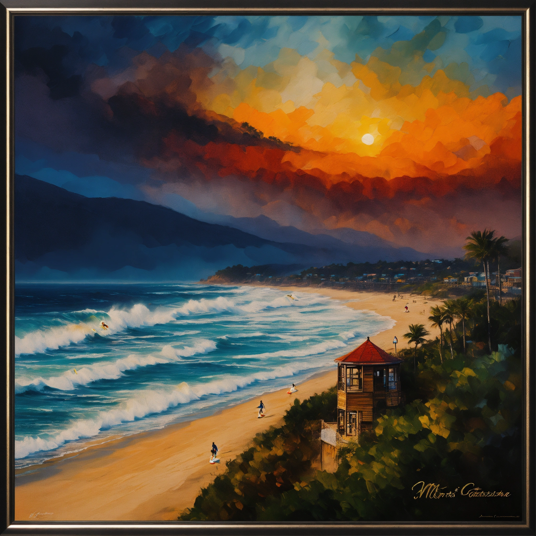 "montabeach" a poster with ultra realistic surf, with the words of daniel castancarne griffithsandreas lieruss millsleonid afremov, black background