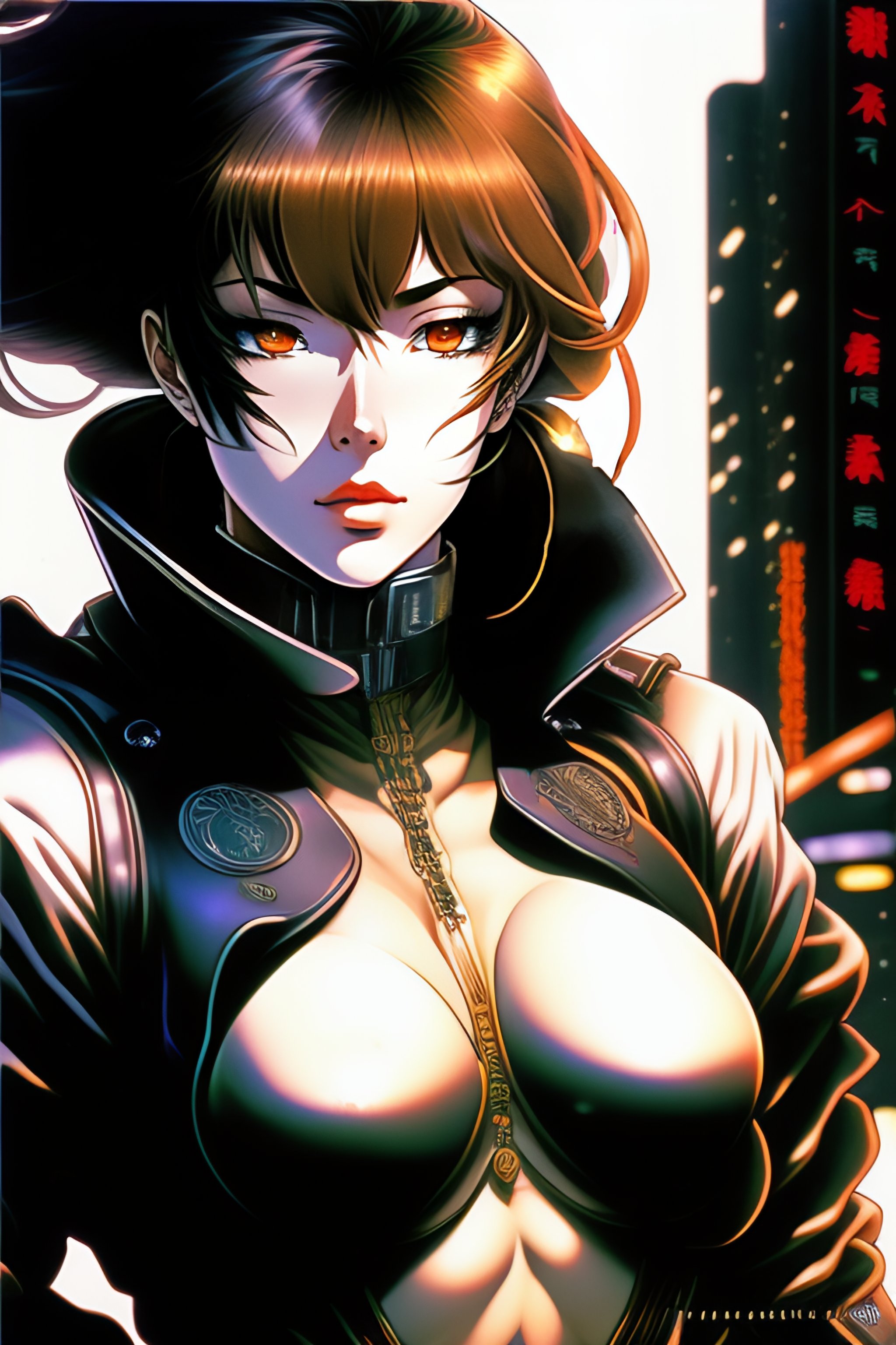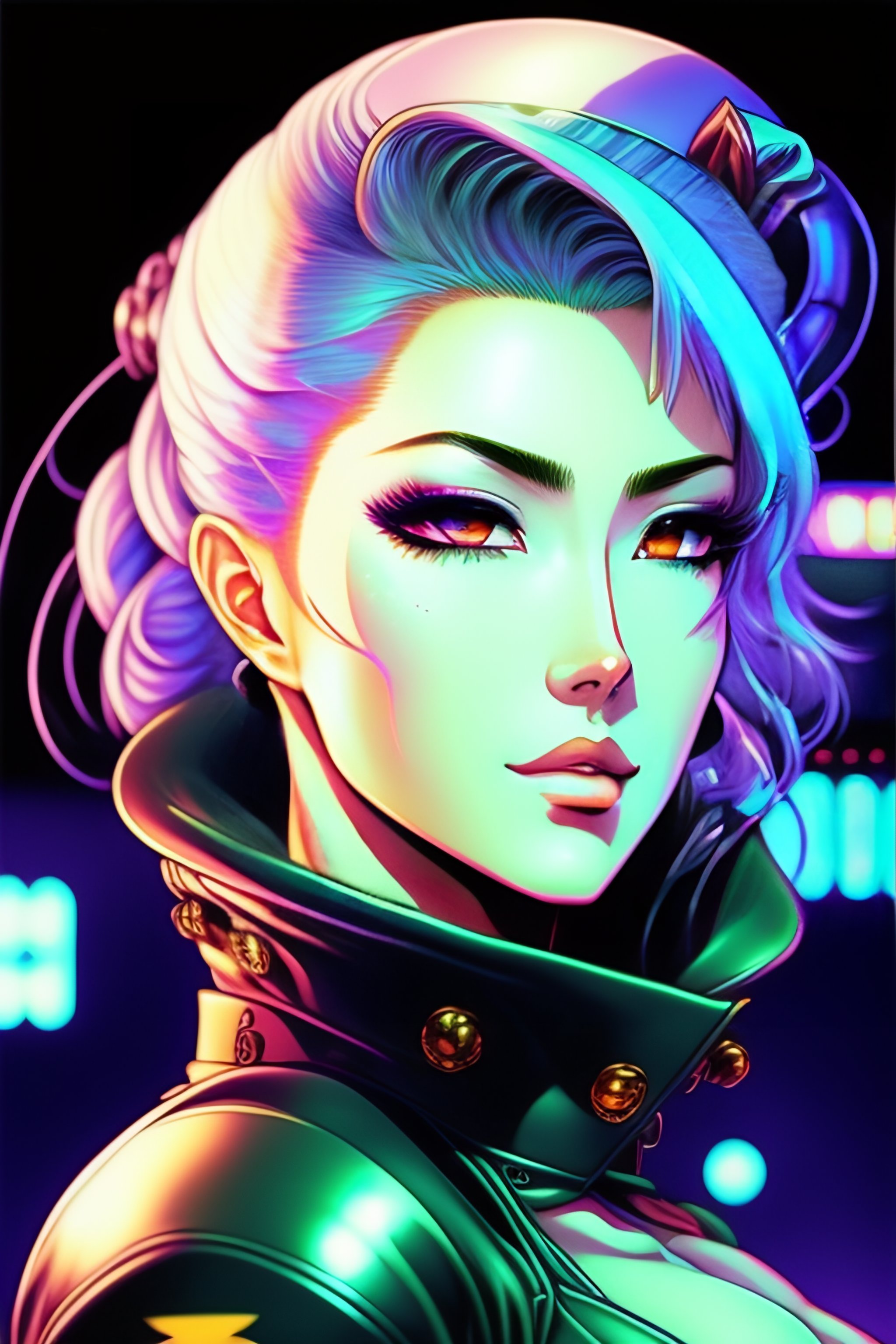 Vintage 90's anime style portrait shot of a cyberpunk night; a army soldier; by hajime sorayama, greg tocchini, virgil finlay, sci-fi. line art. environmental arcade art.