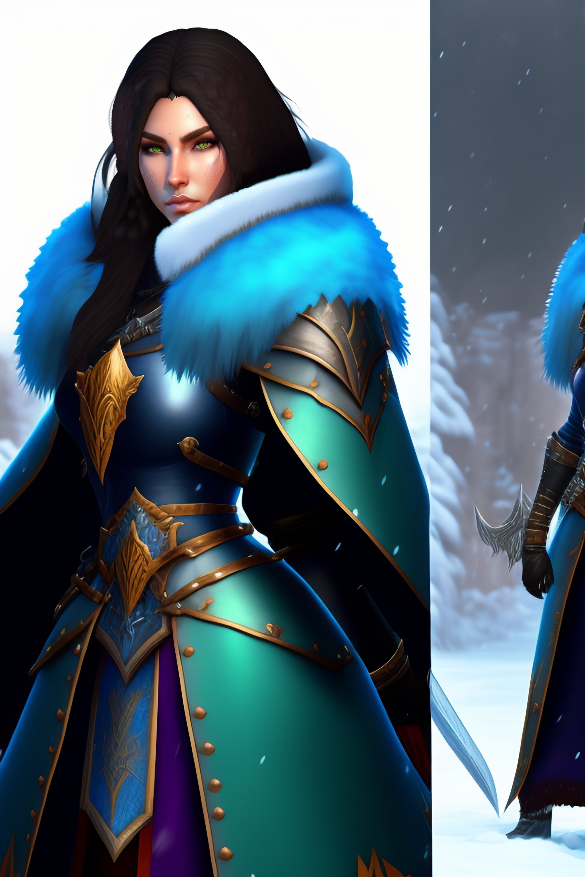 Kislev ice guard, fur armor, death knight, anti-paladin, world of warcraft: wrath of the lich king, winter armor, fantasy, woman, black hair, ice blue eyes, young woman, mercenary, sellsword, ranger, warhammer fantasy, kislev, russian, eastern european, total war warhammer 3, warrior, johan grenier, portrait, low class, wearing fur, drawn, digital art, soft line work, anime, fur armored, drawn, stylized, stylized, concept art, creative assembly, wolfish, rogue, outlaw, bandit, cutthroat, cutpurse, highway man, anime, rwby, blazblue, rough, drawn, peasant, low class
