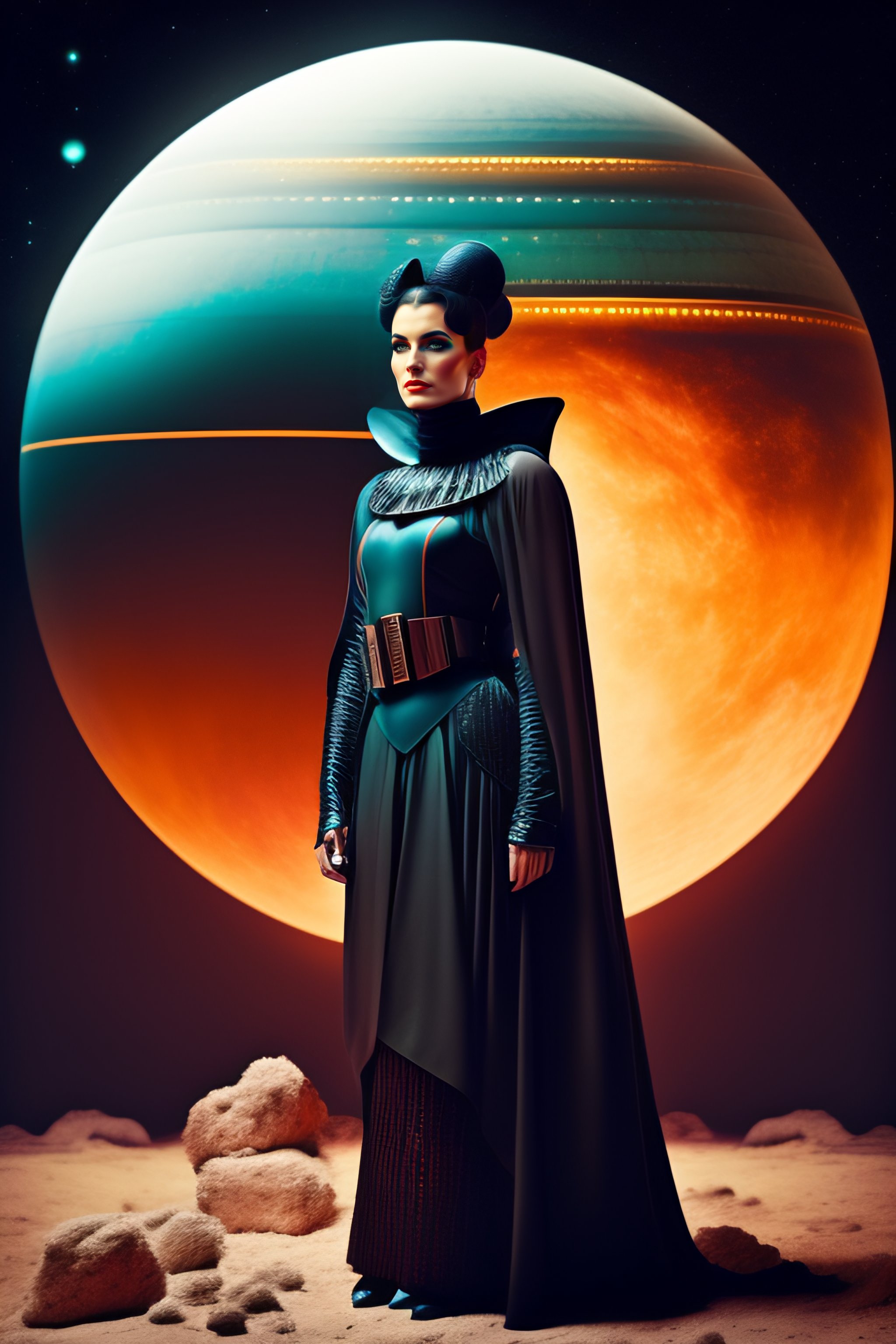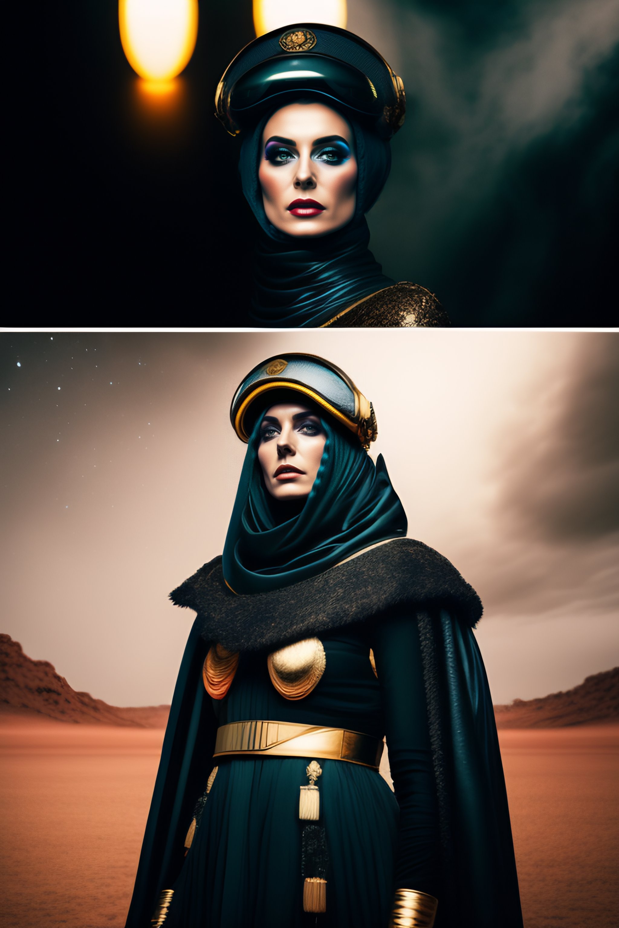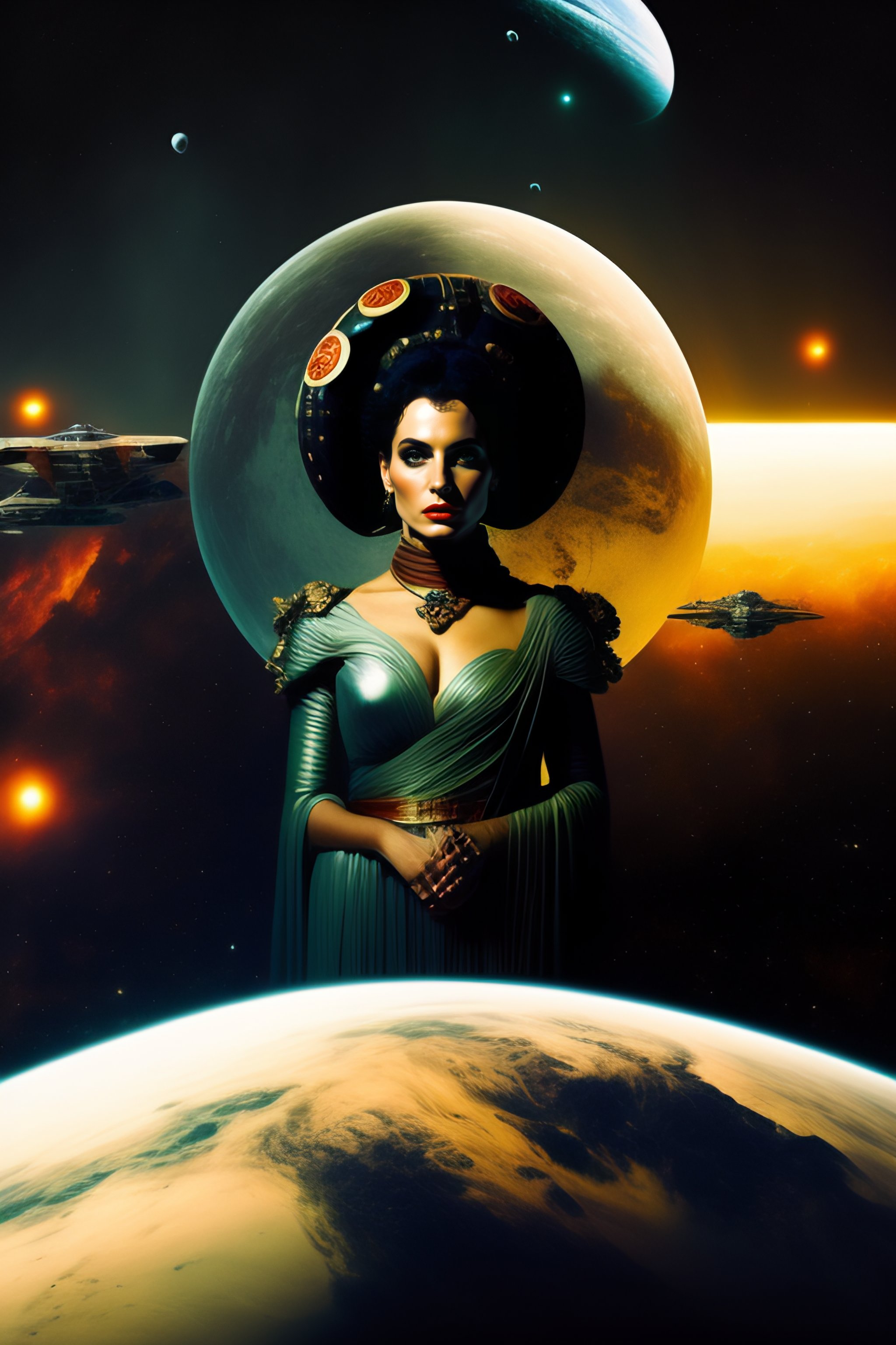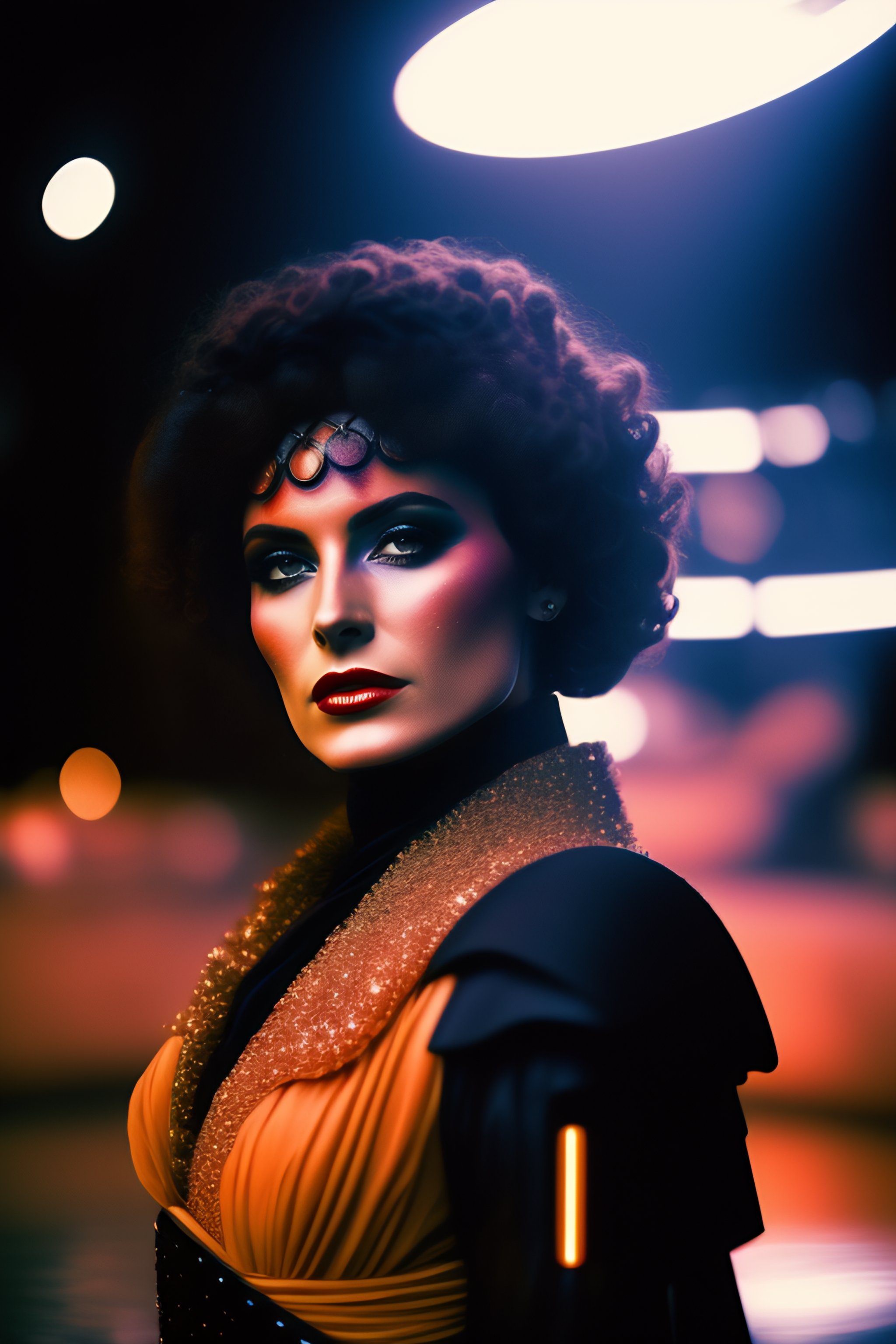 Foto di medea in un ambiente post punk stile star wars con navicella spaziale sullo sfondo e mercato rionale post punk