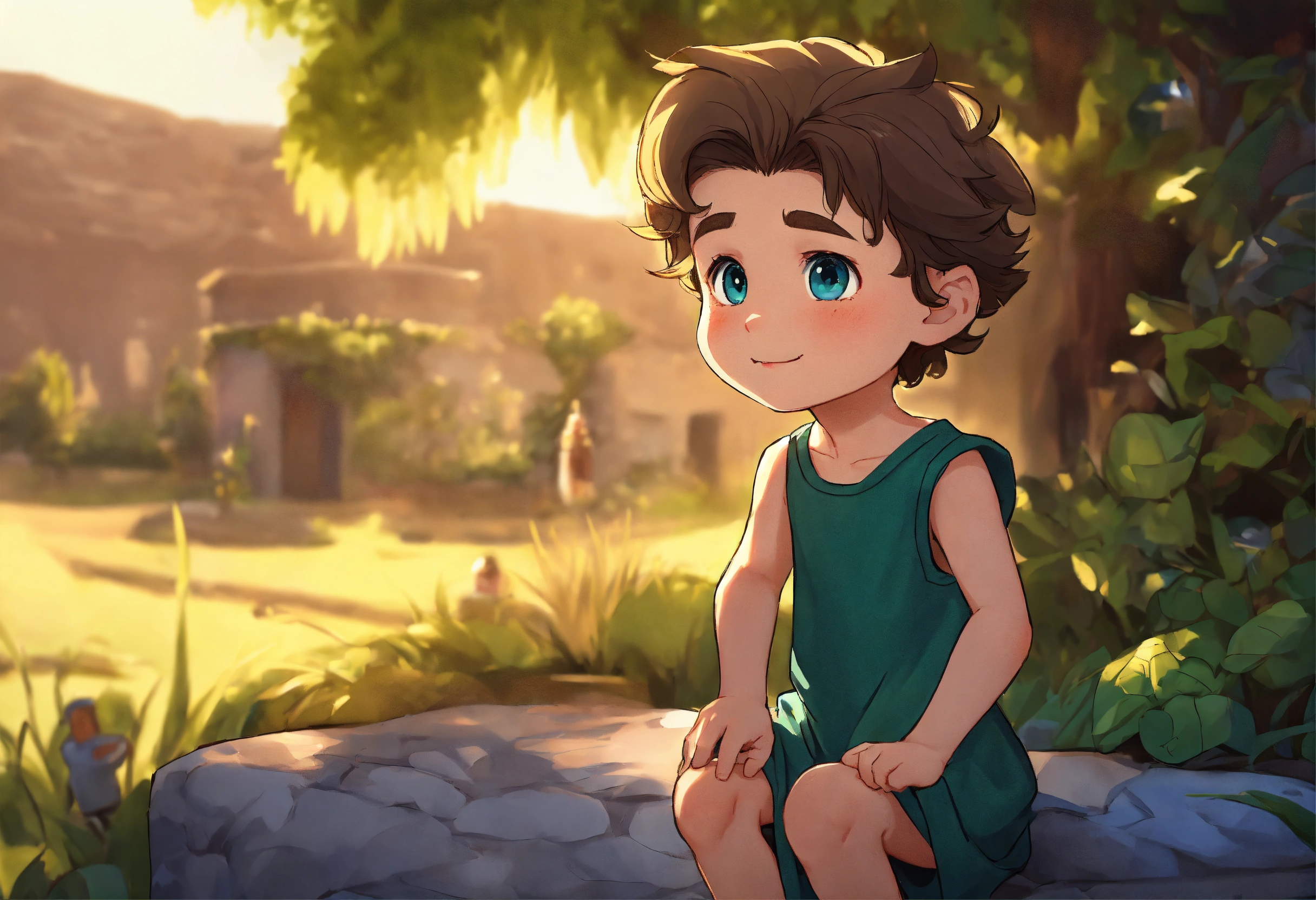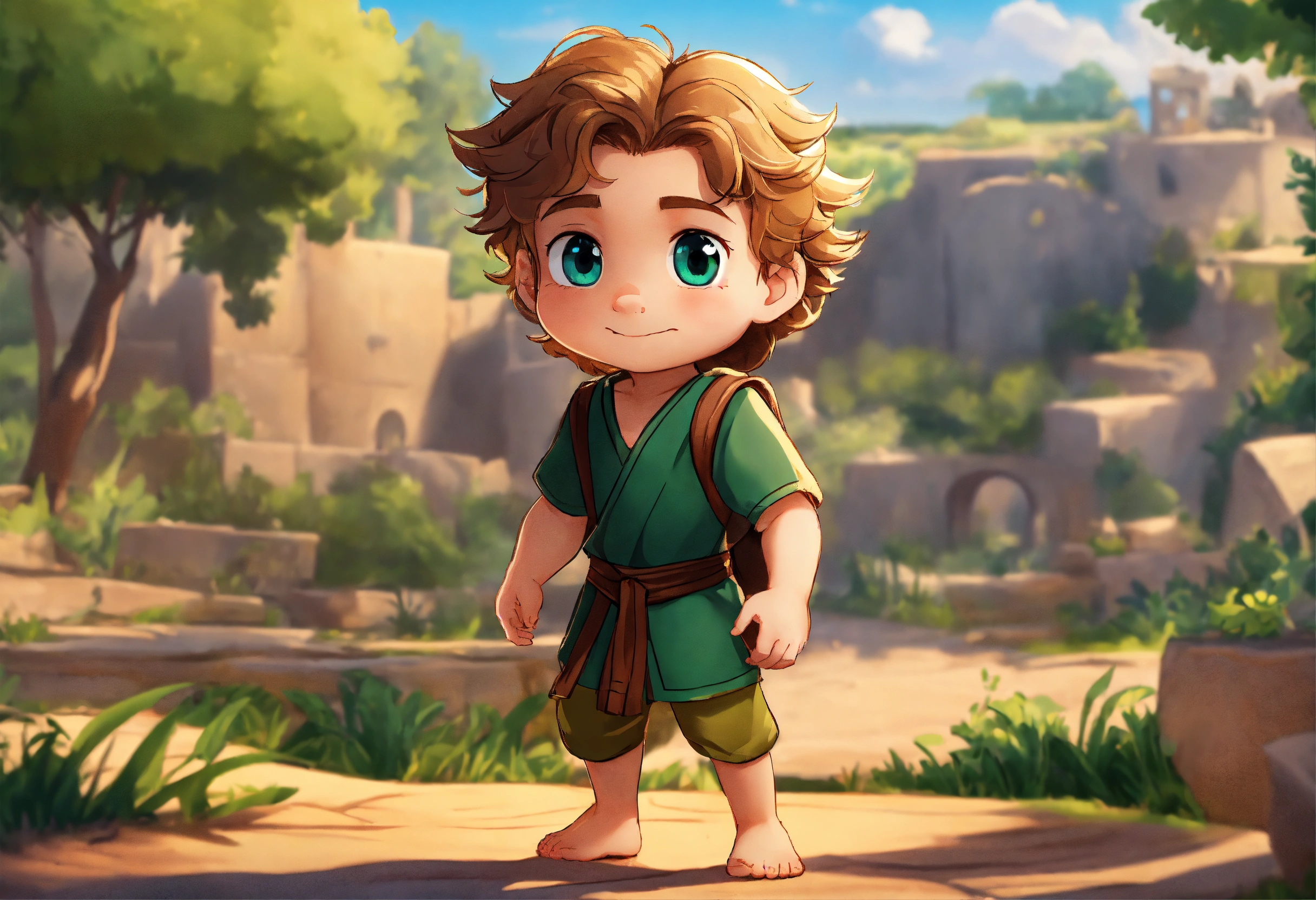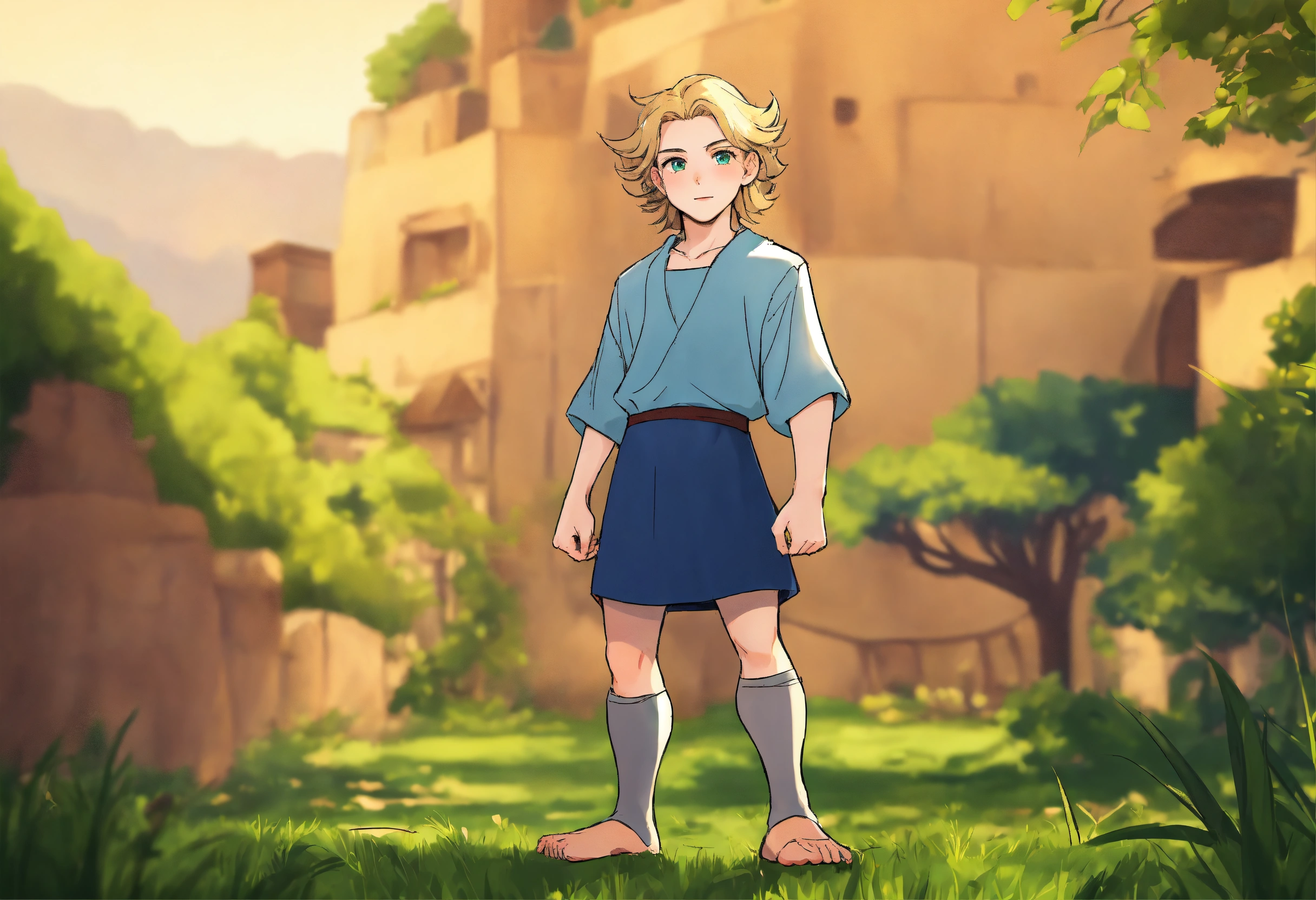 Cute boy cartoon, green eyes, 15 years old, blue eyes, dark blue dress, cute boy long hair cute and adorable cartoon tom holland baby white skin, full body pose, !!! legs!!! blonde hair, handsome, 500 bc years, green eyes cartoon, old israeli dress