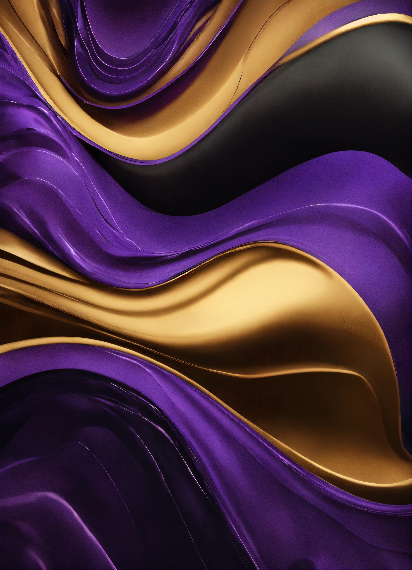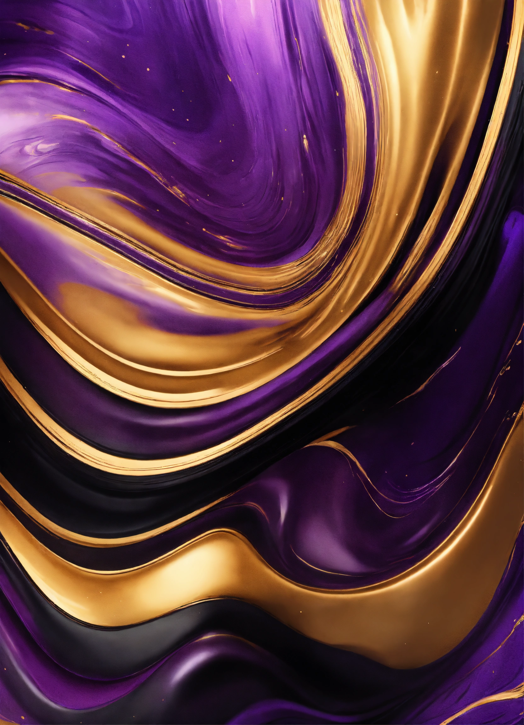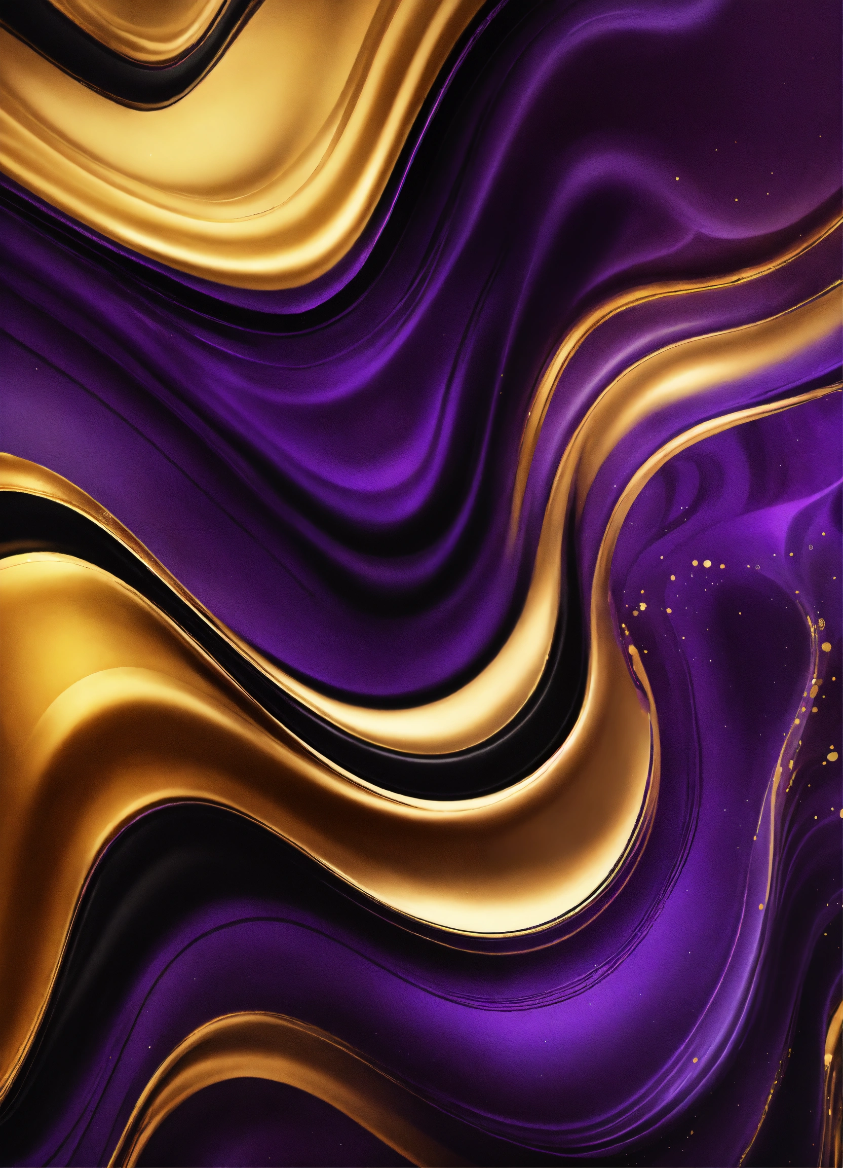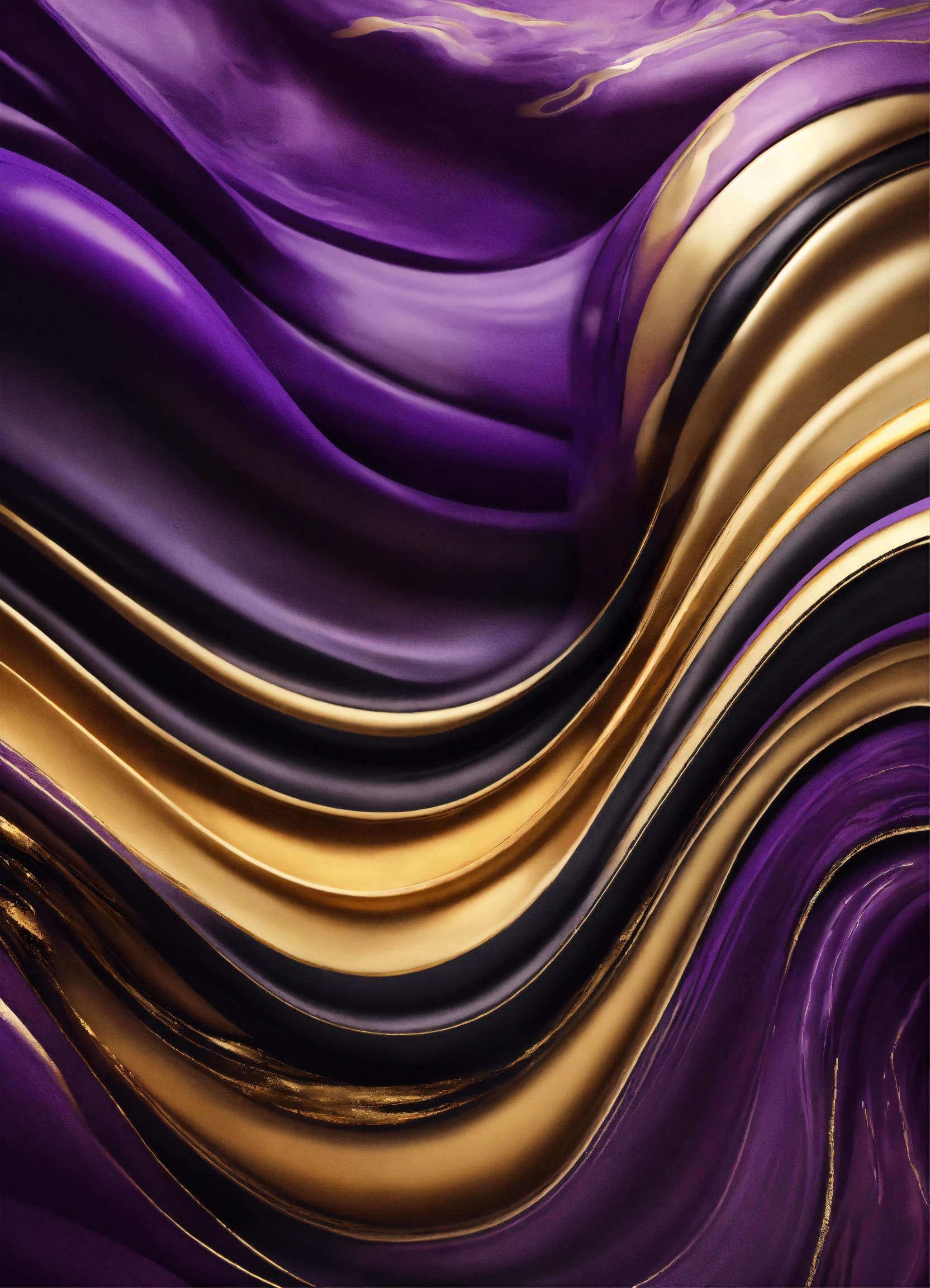 Luxury royal purple, black and gold colored waves abstract background, textured, marbles, ink liquid modern abstract backdrop, generative ai