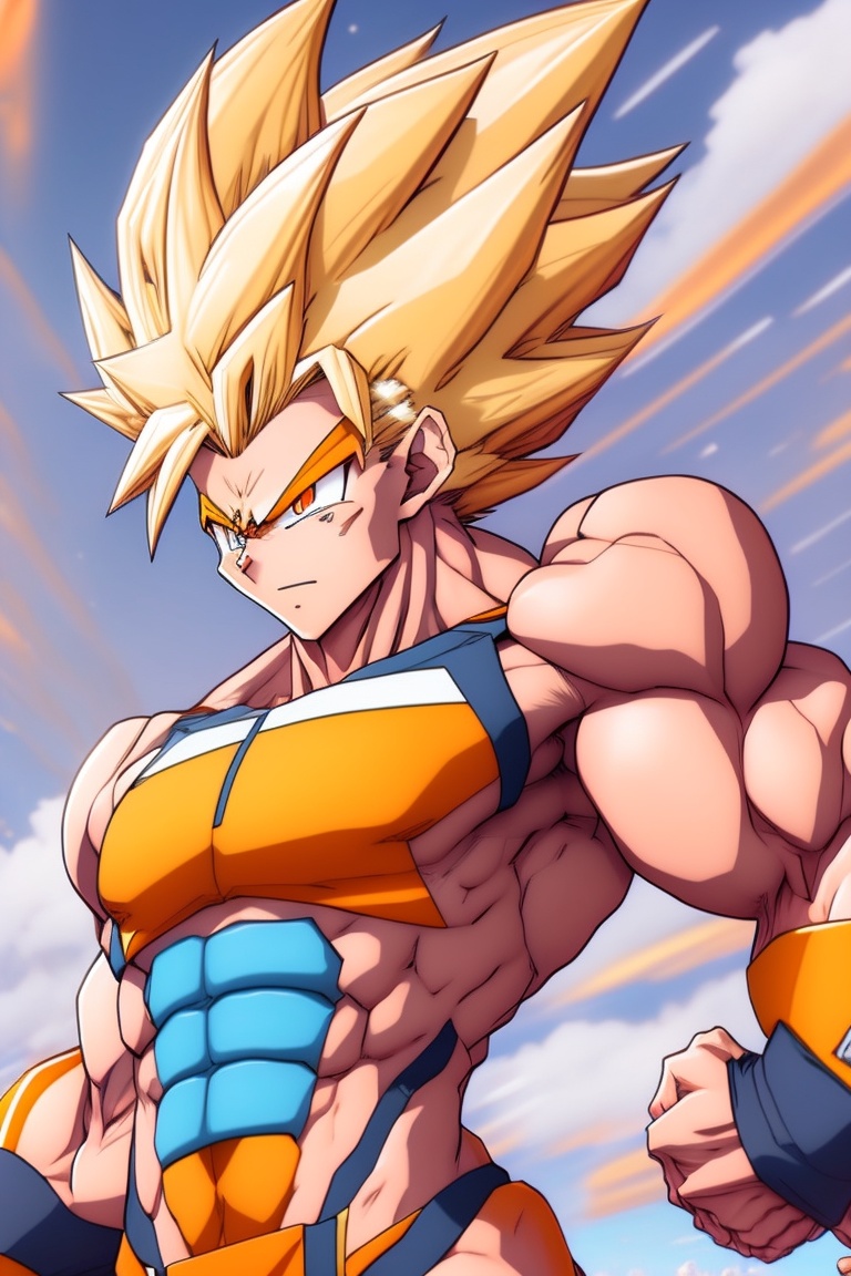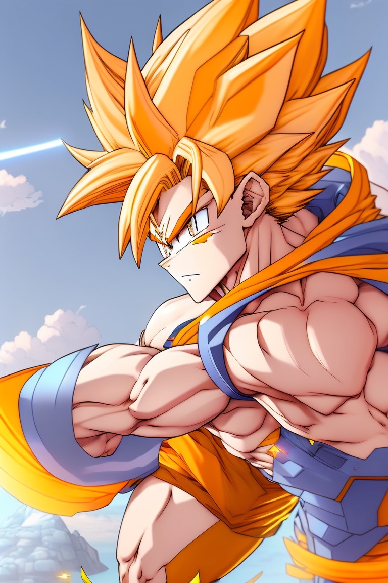 Futuristic anime style super sayian goku
