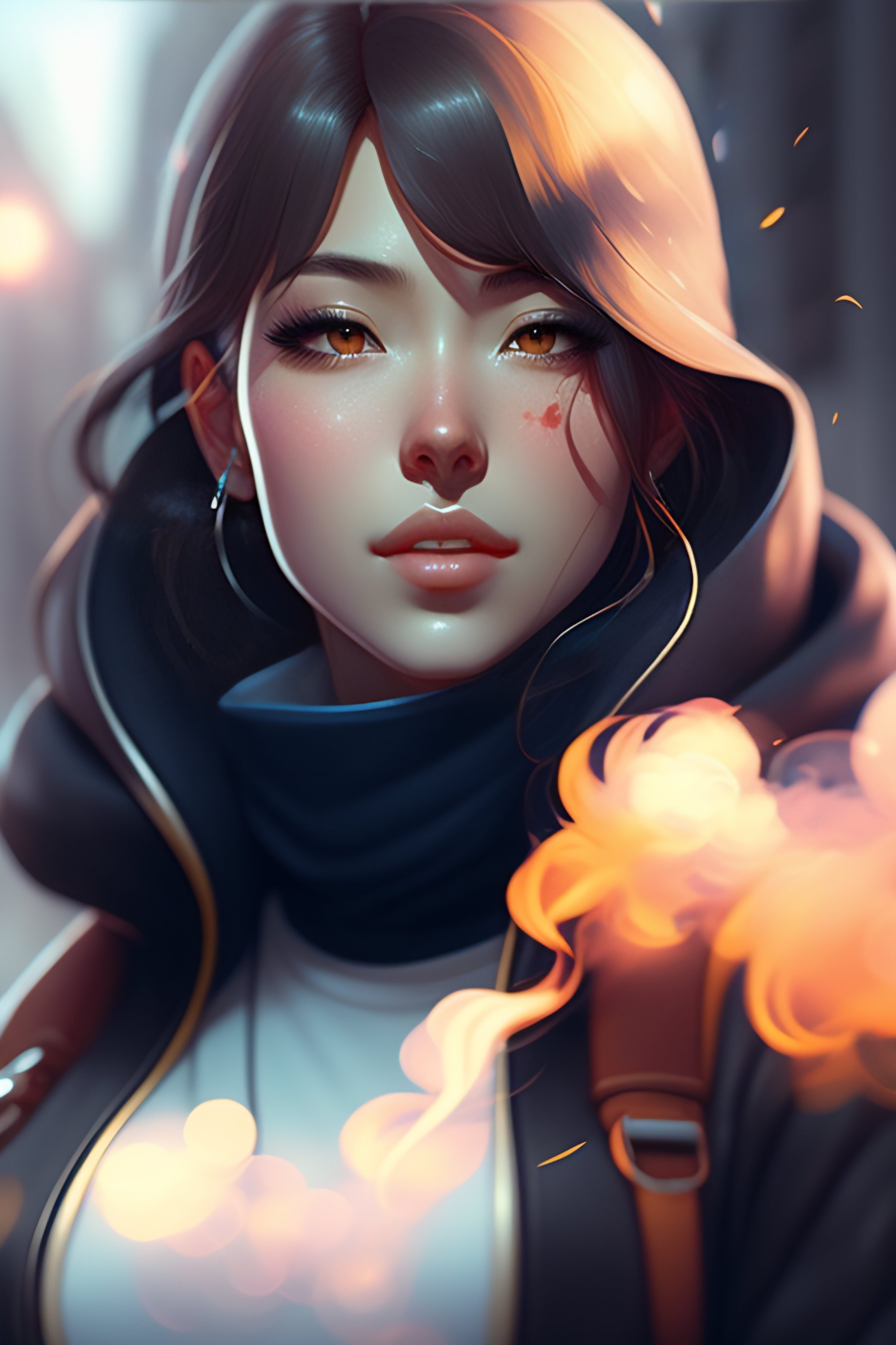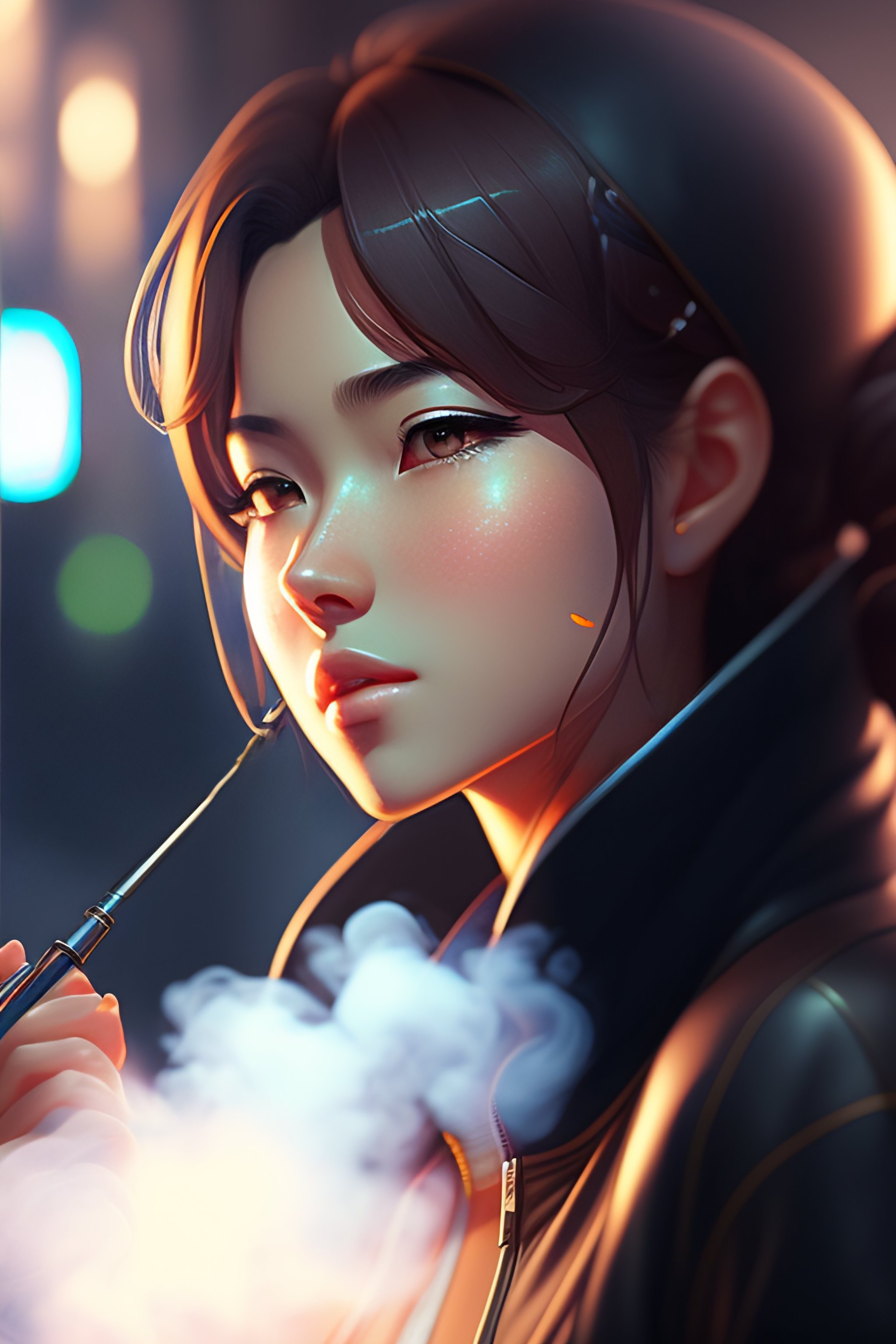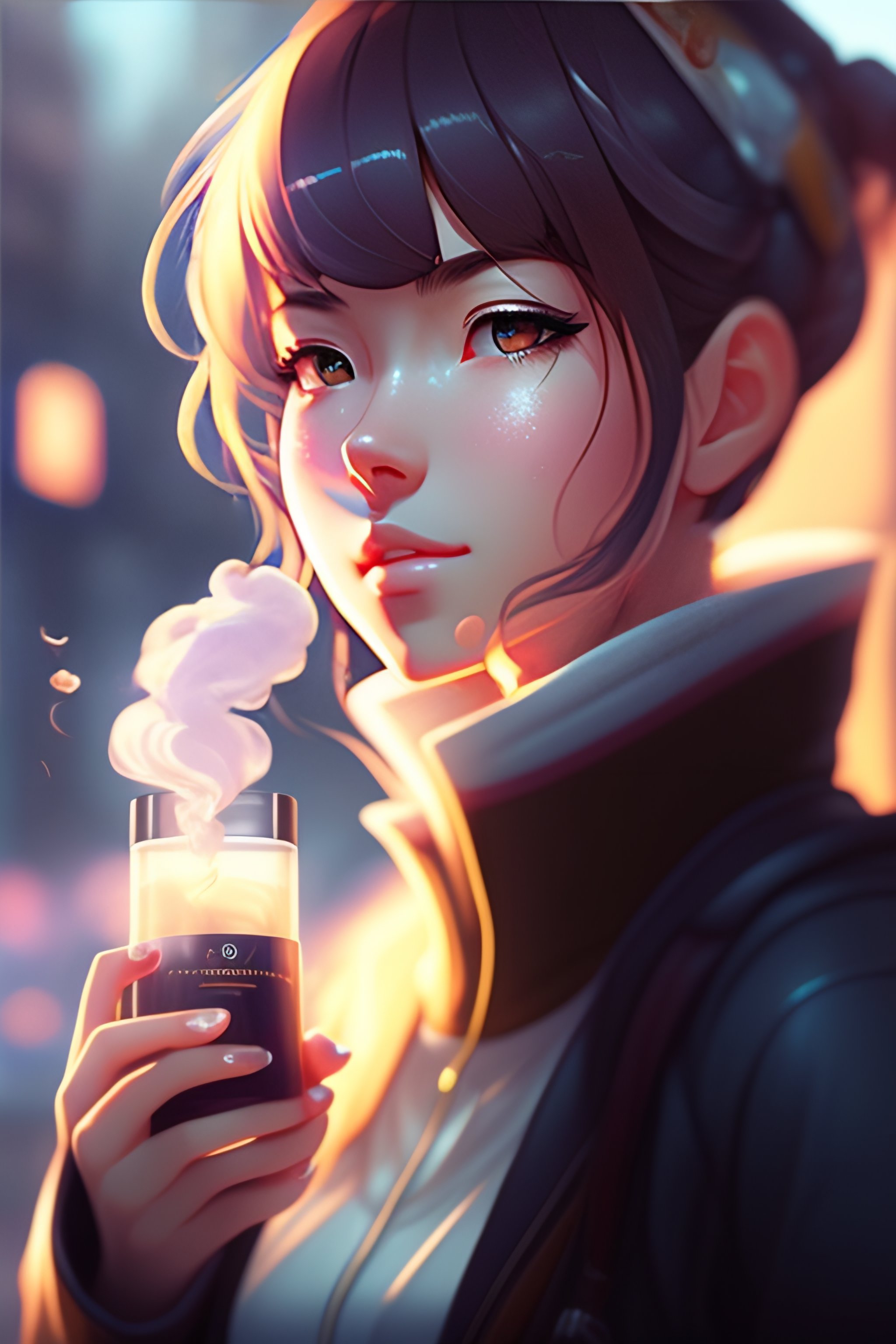 A girl smoking vape, single centered subject, mid shot, ambient lighting, detailed face, by makoto shinkai, stanley artgerm lau, wlop, rossdraws