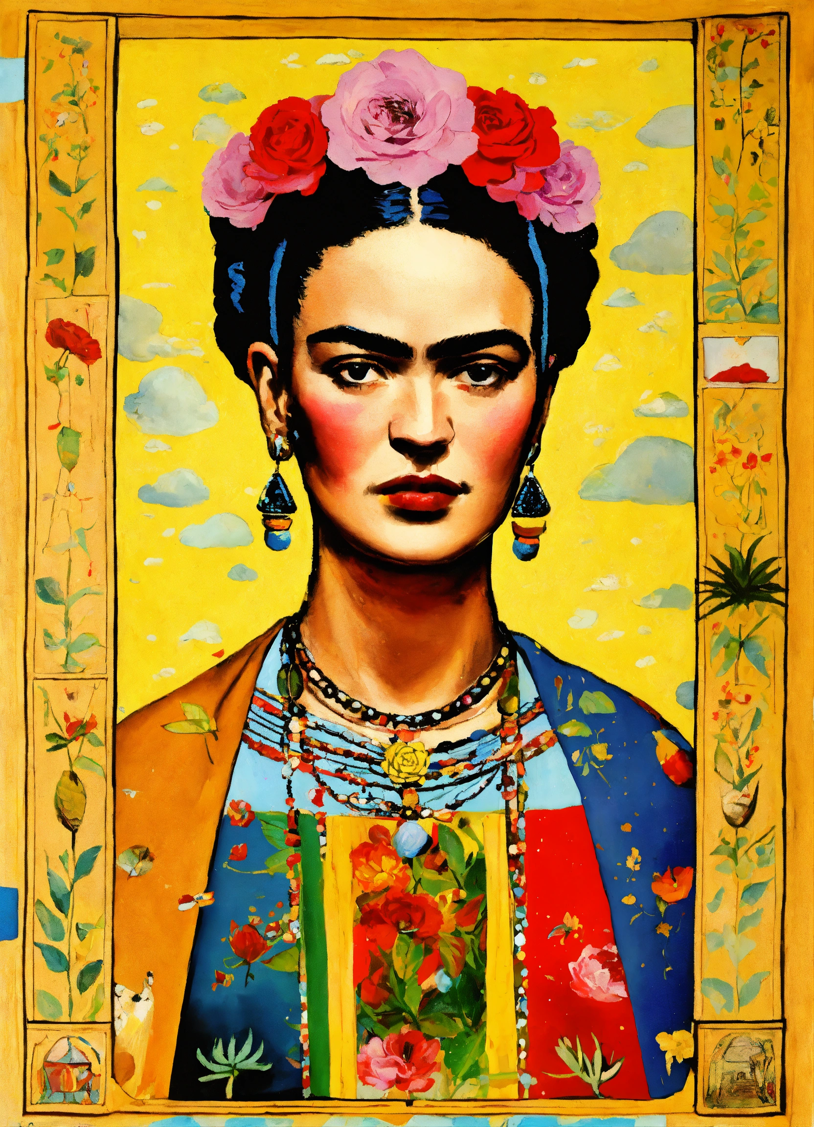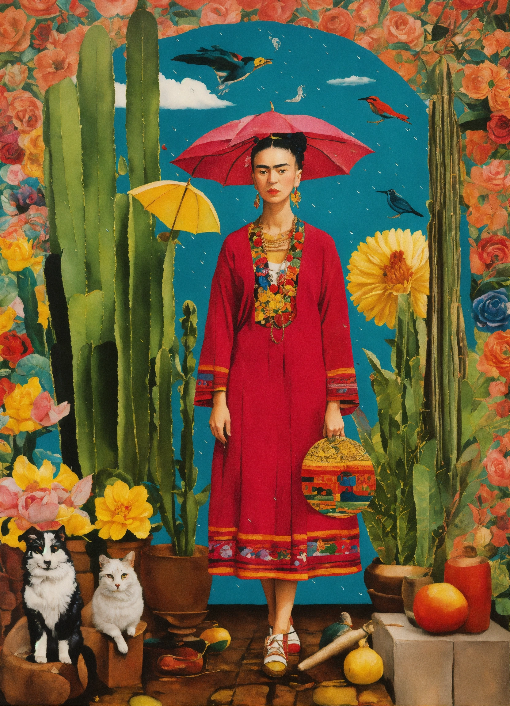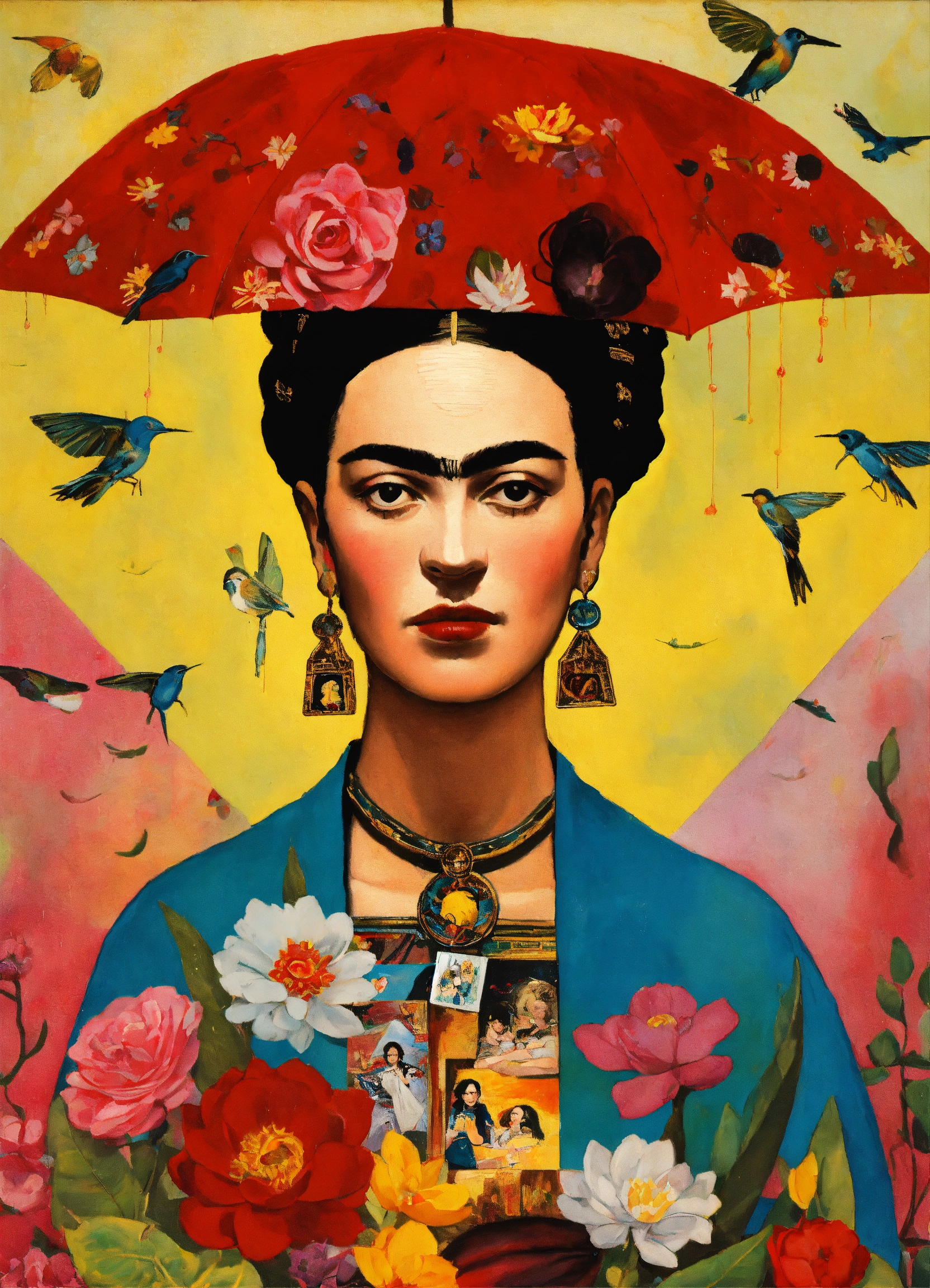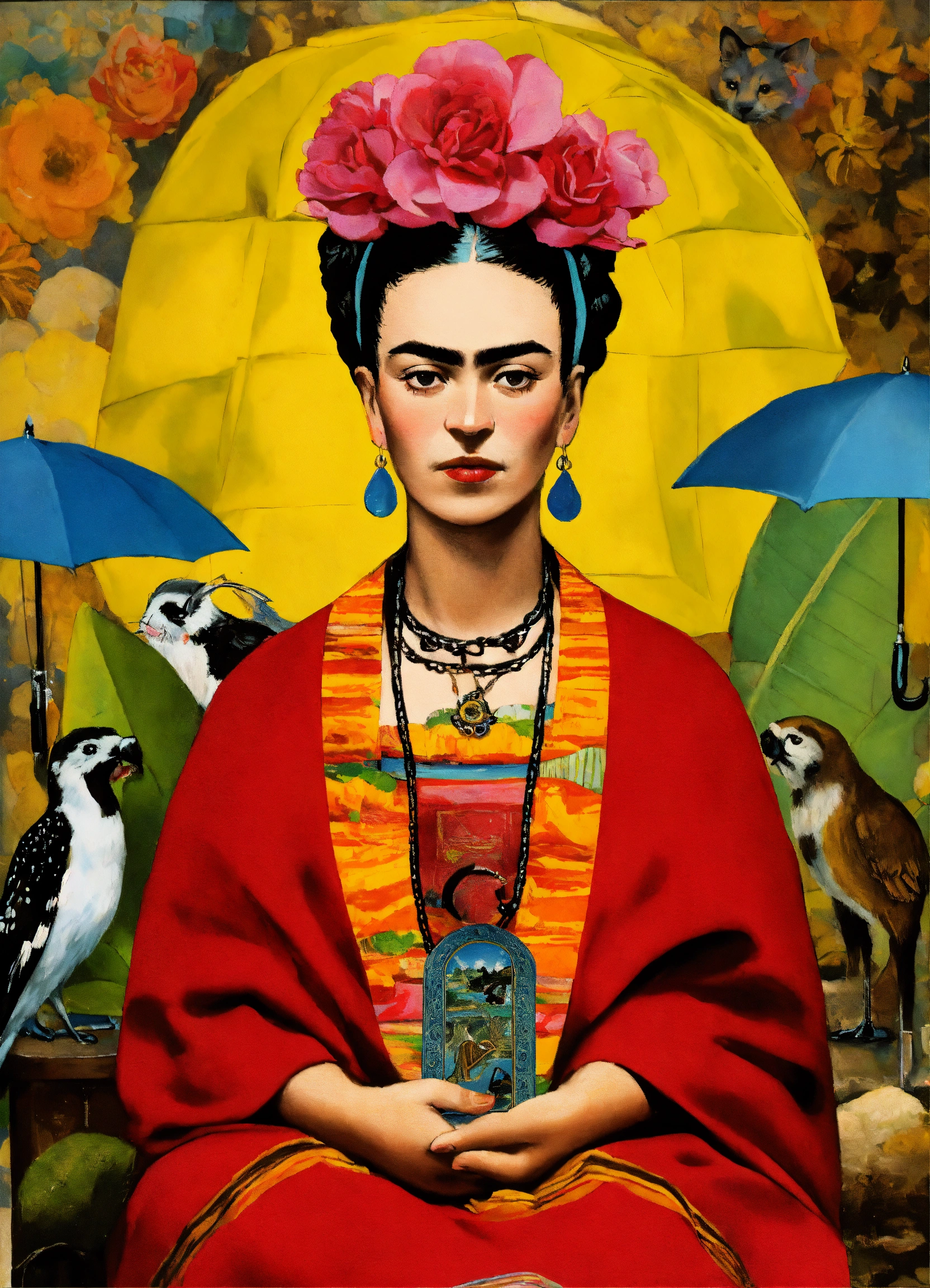 Frida kahlo, le collage, couleur vive, huile, la représentation de la carte de tarot, jour de pluie rainy day