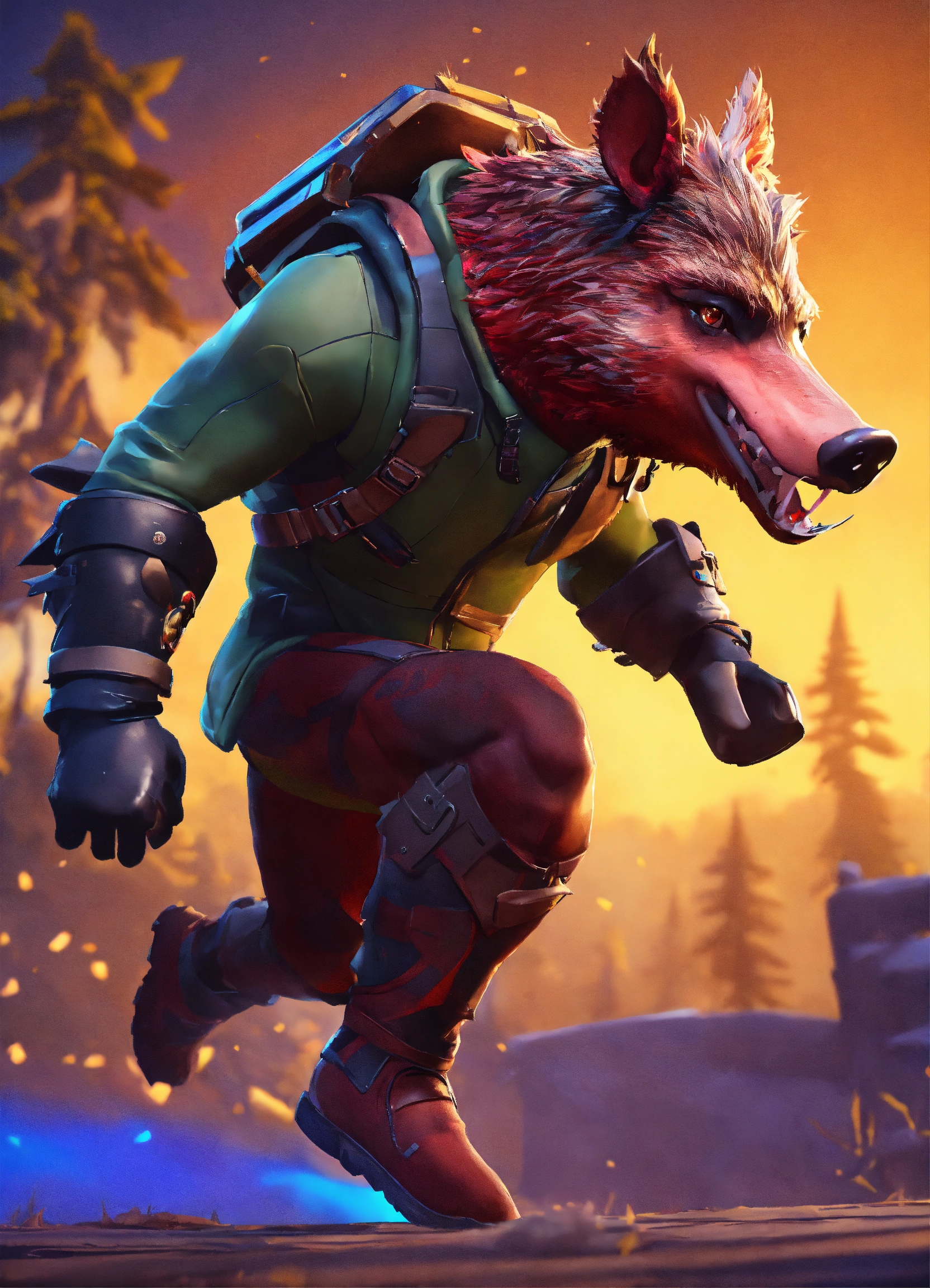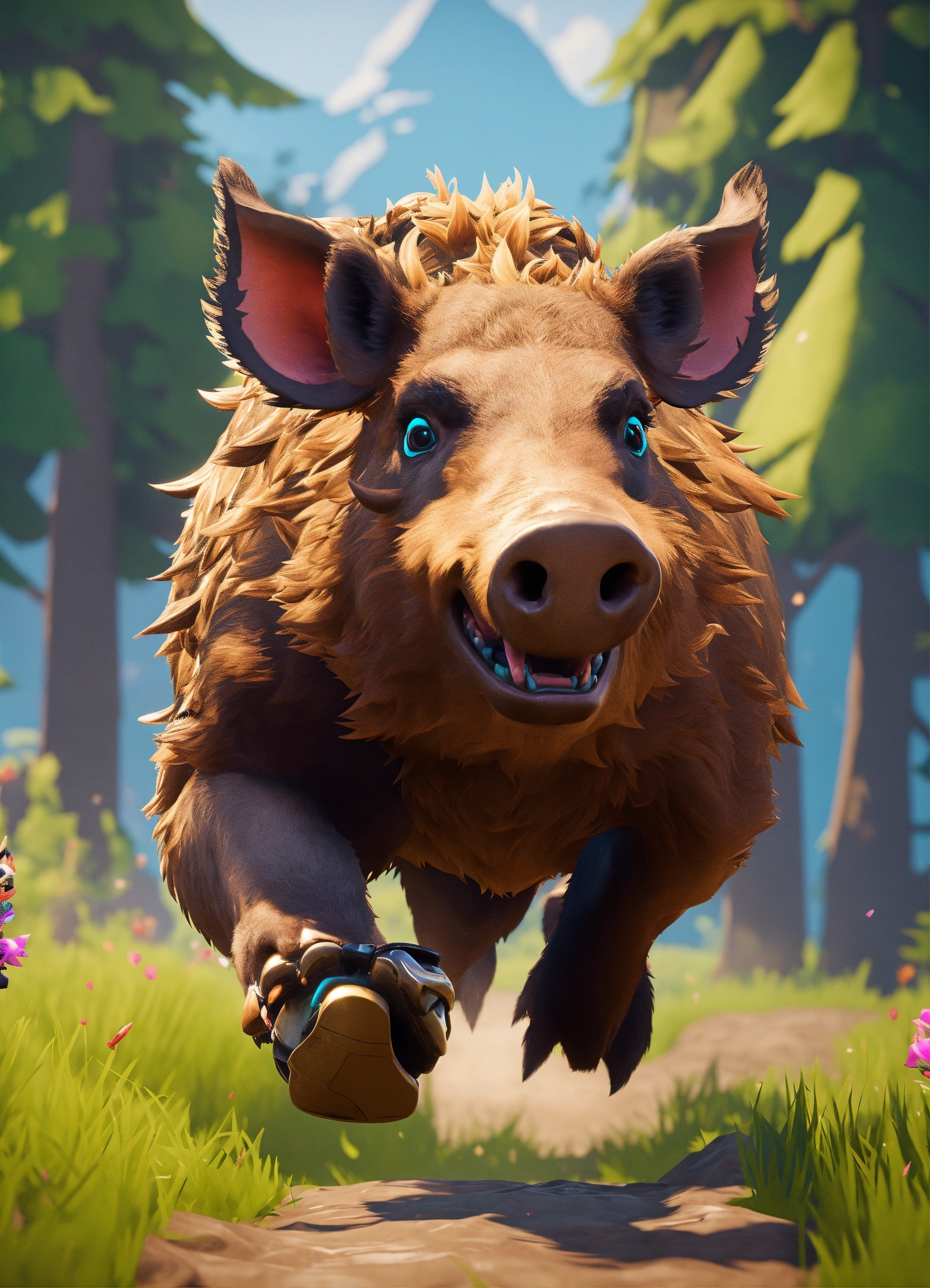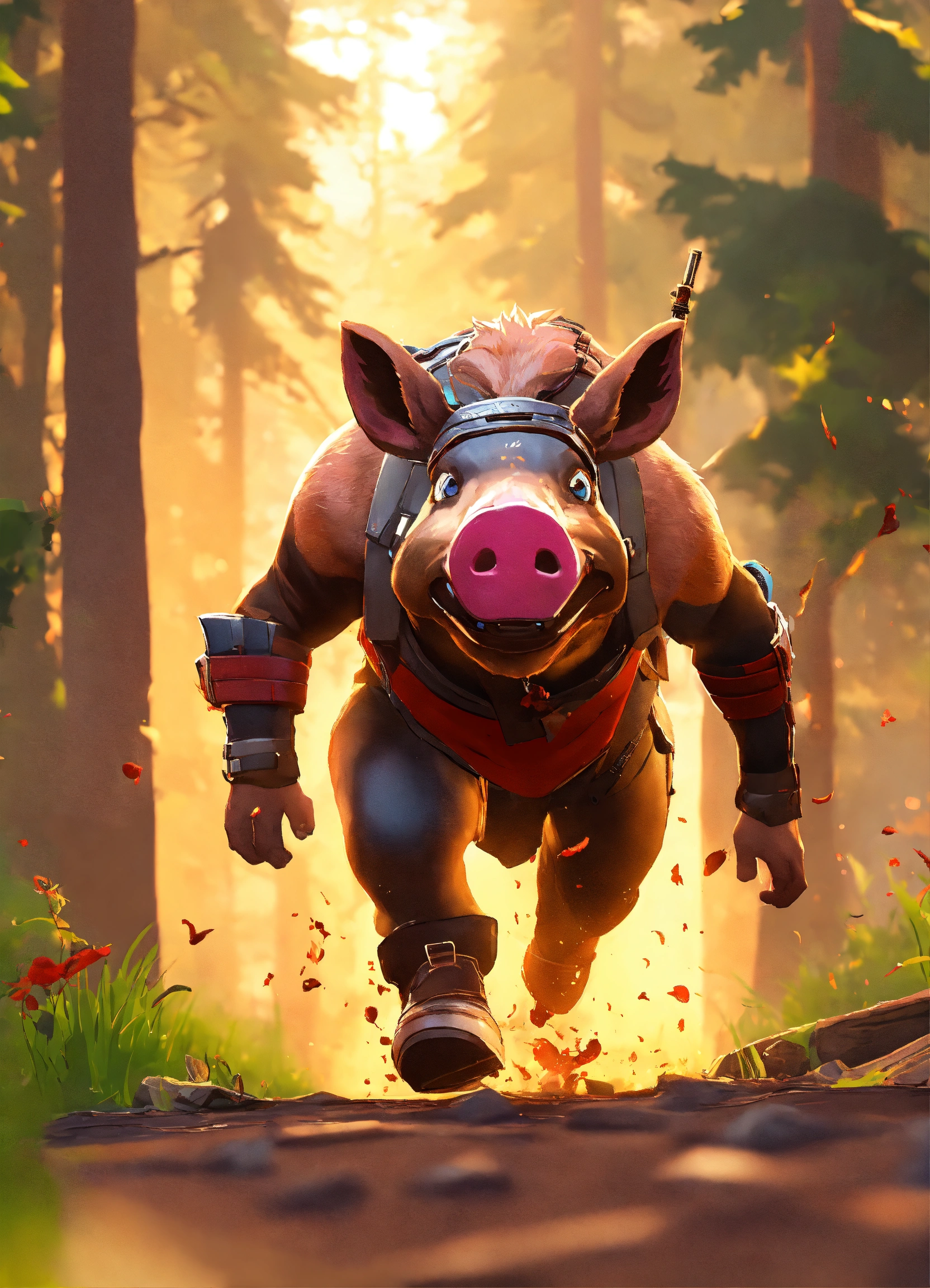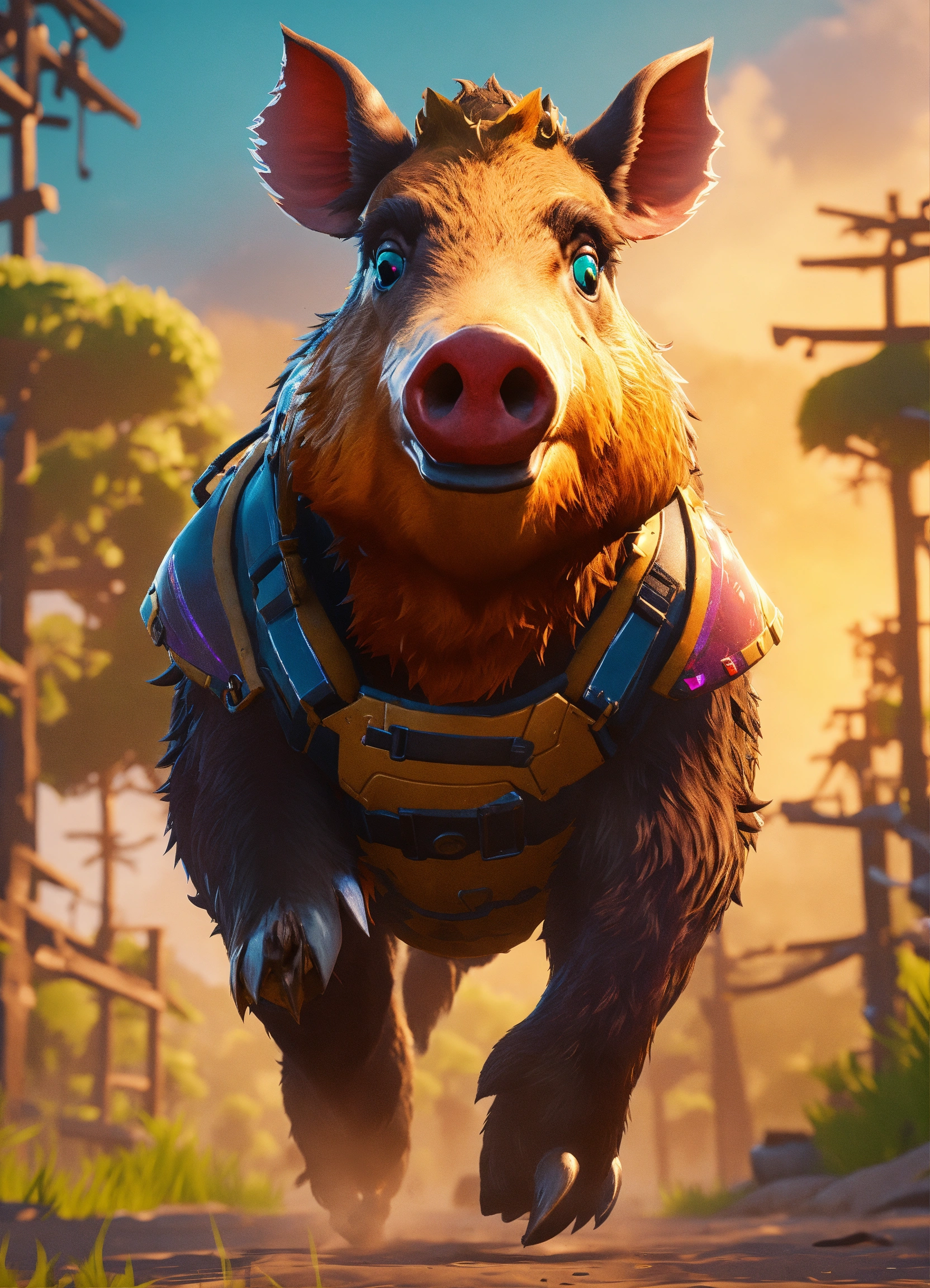 Humoristic fortnite body mixed with wild boar head running