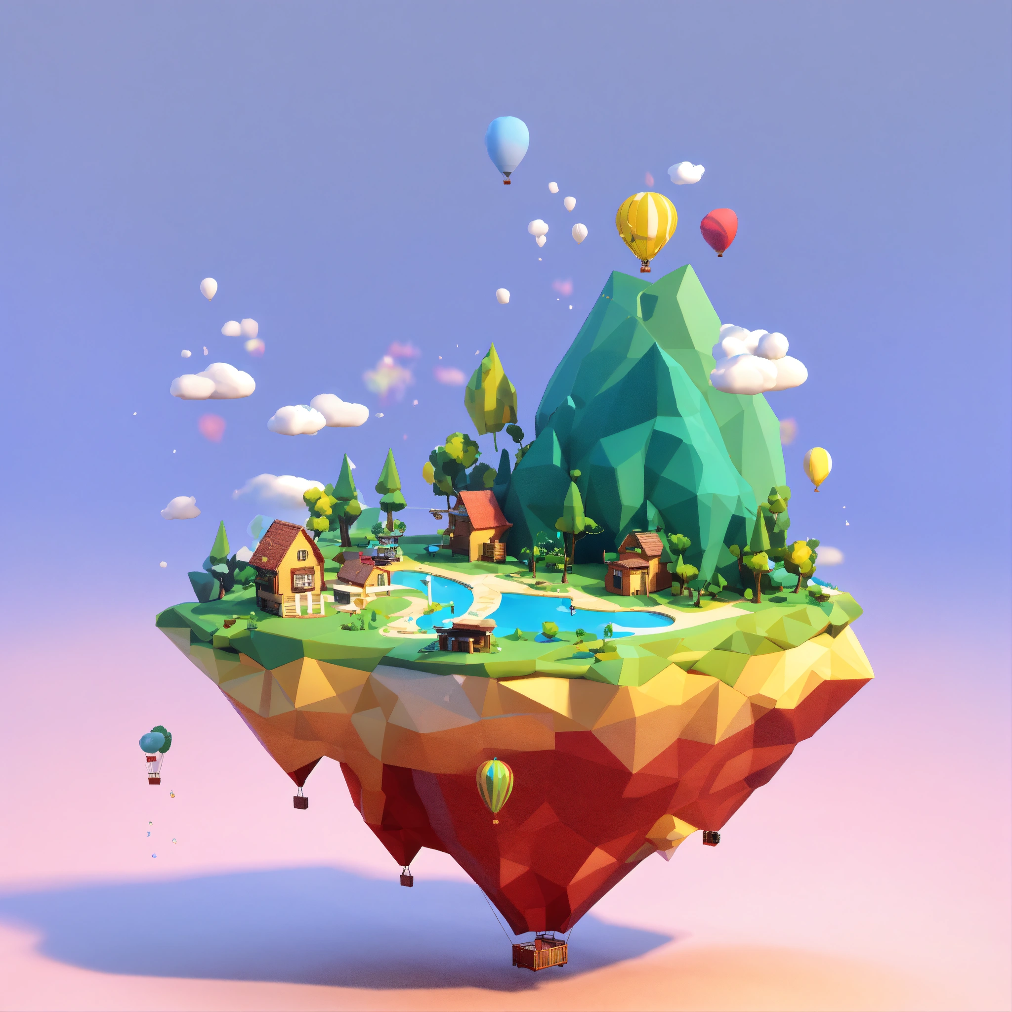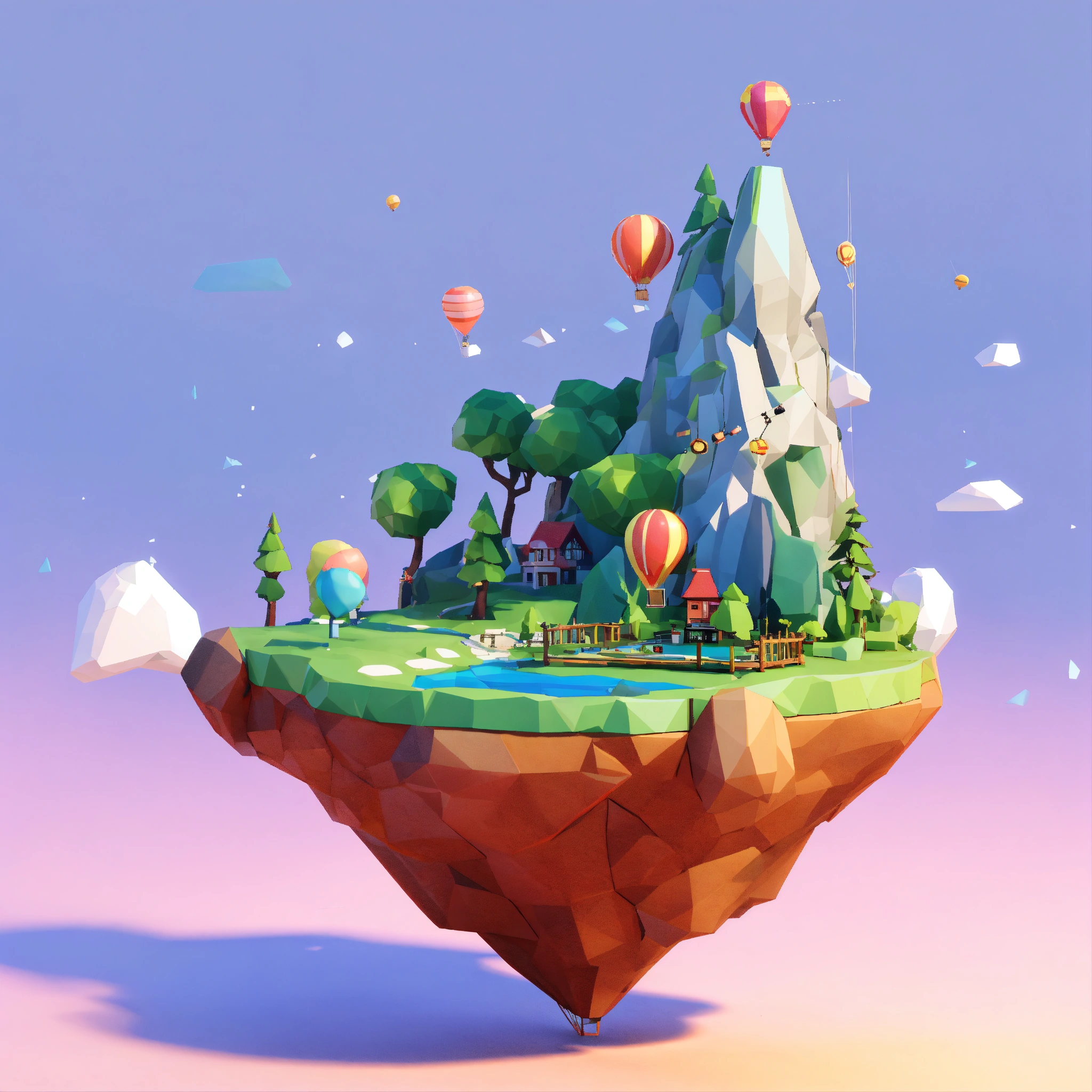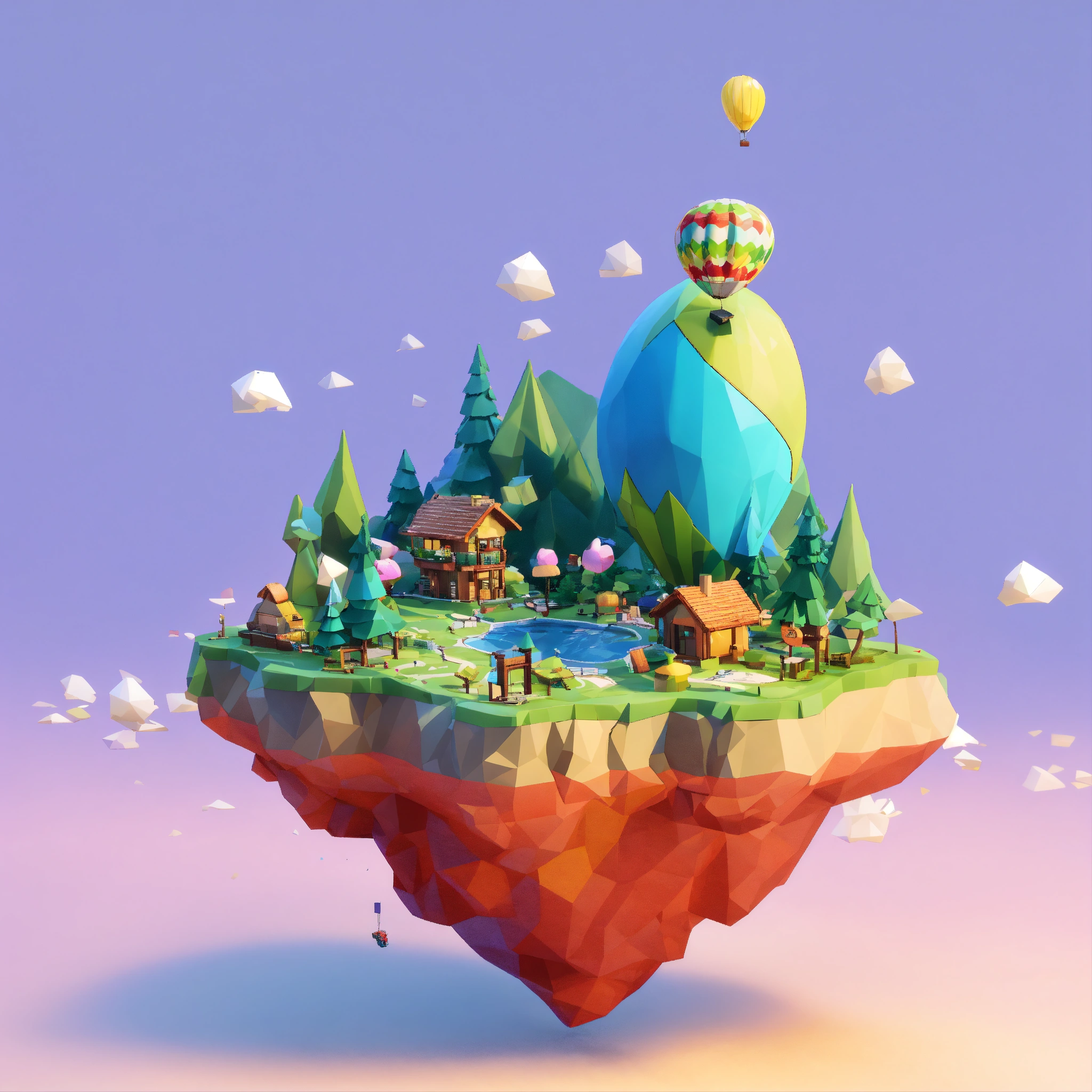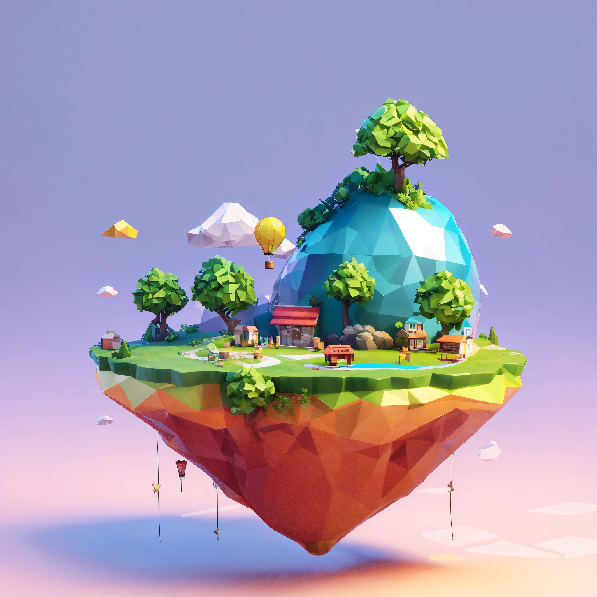 Small stylized piece of land in the air combined with snap chat logo and laters "ar" as ballon in the air, low poly, game ready 3d model