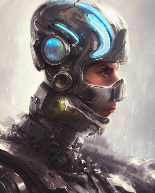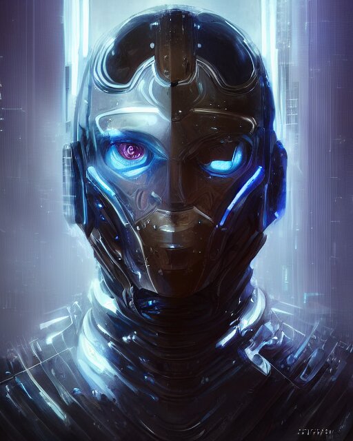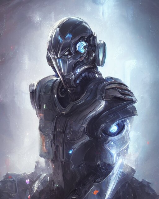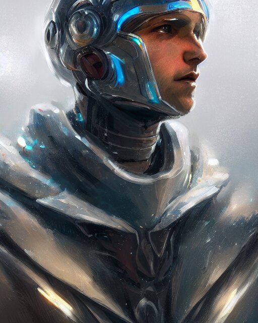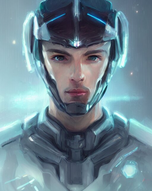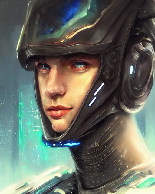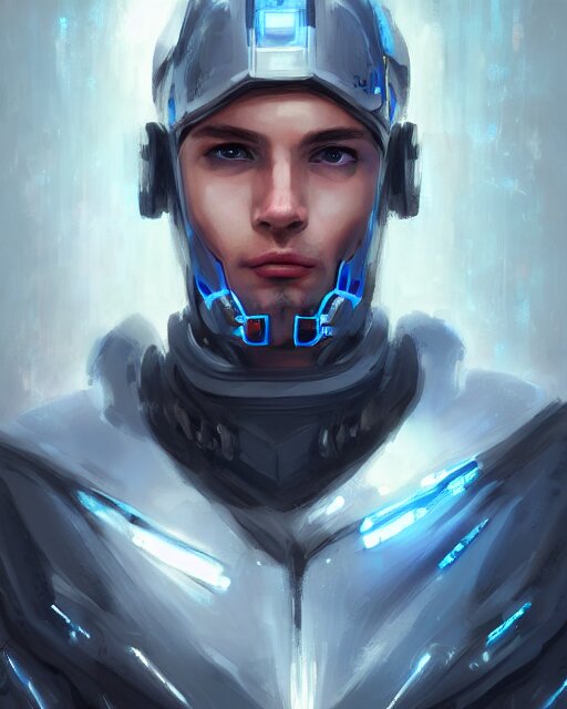 Portrait of handsome guy in cyber armor, dreamy and ethereal, expressive pose, bule eyes, exciting expression, fantasy, intricate, elegant, many lightning, cold color, highly detailed, digital painting, artstation, concept art, cyberpunk wearing, smooth, sharp focus, led, illustration.