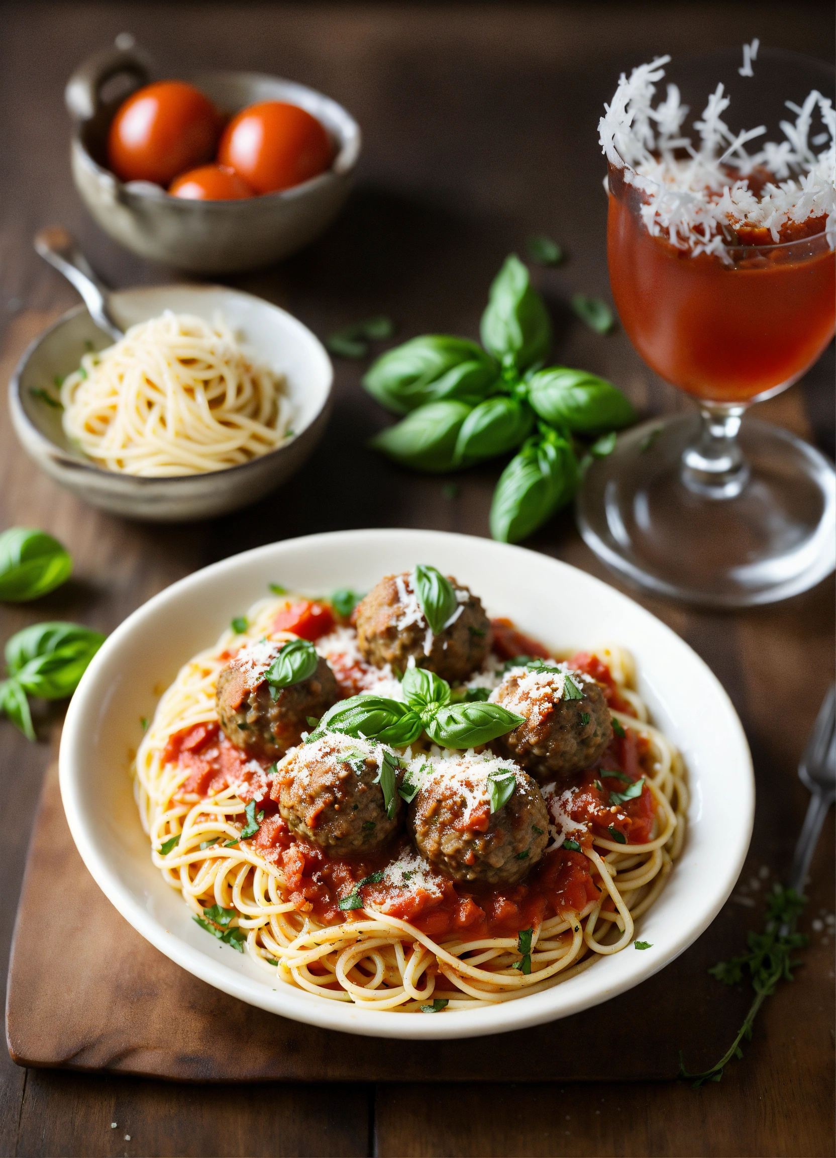 Picture a plate of perfectly al dente spaghetti, adorned with a luscious tomato sauce made from vine-ripened san marzano tomatoes, fresh basil, and a hint of garlic. grated parmigiano-reggiano cheese snows down over the top, and nestled among the twirls of pasta are tender meatballs. each bite is a harmonious blend of tangy tomato, fragrant basil, and the rich, umami goodness of the meatballs. it's a classic italian dish that's both comforting and undeniably mouthwatering, making it an absolute must-try for any pasta lover.