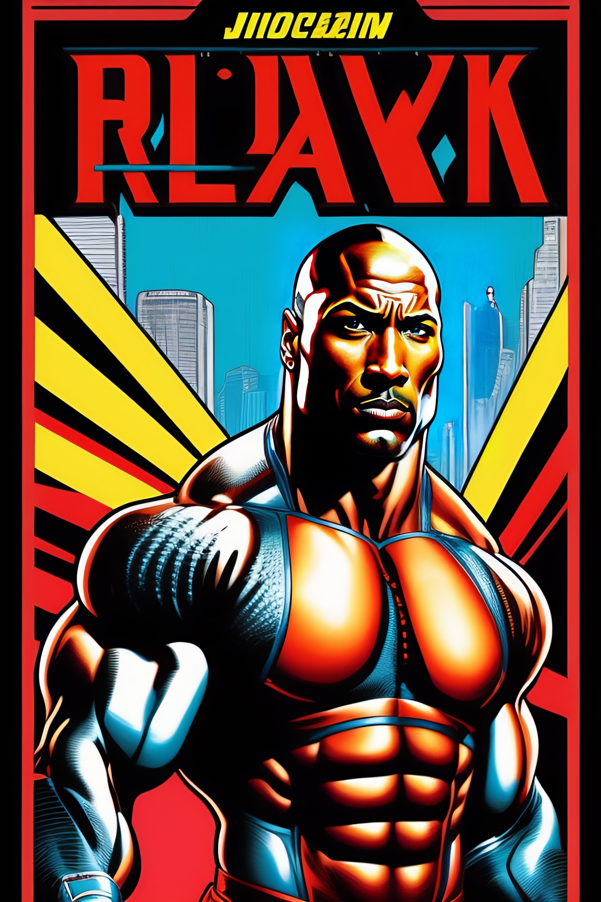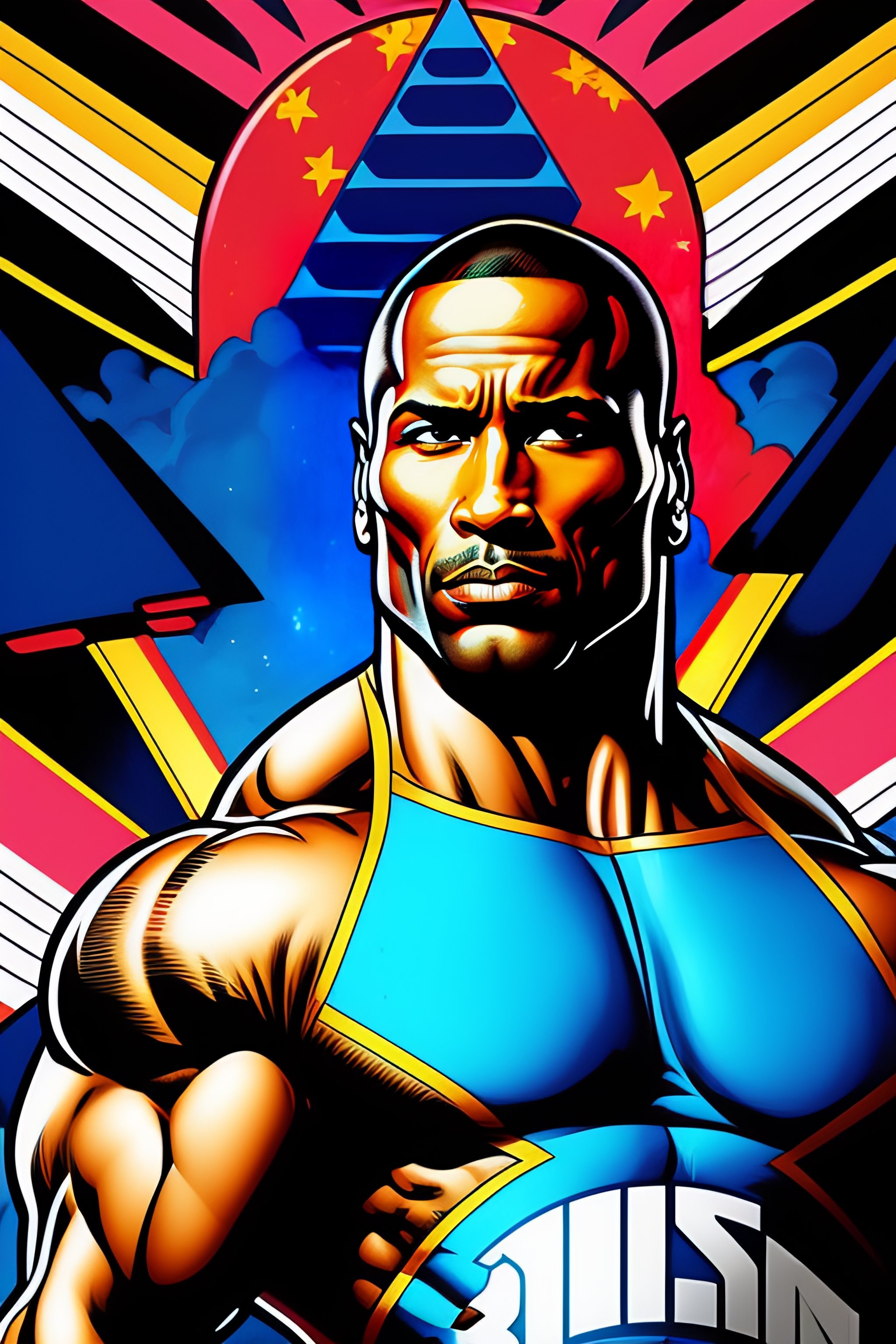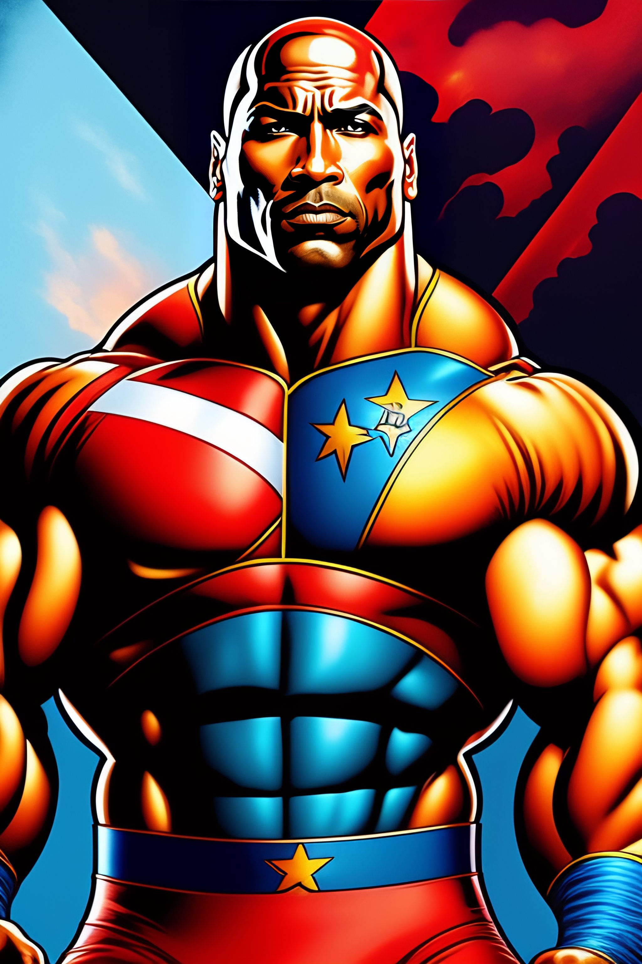 Retro comic style artwork, highly detailed dwayne 'the rock' johnson, comic book cover, symmetrical, vibrant