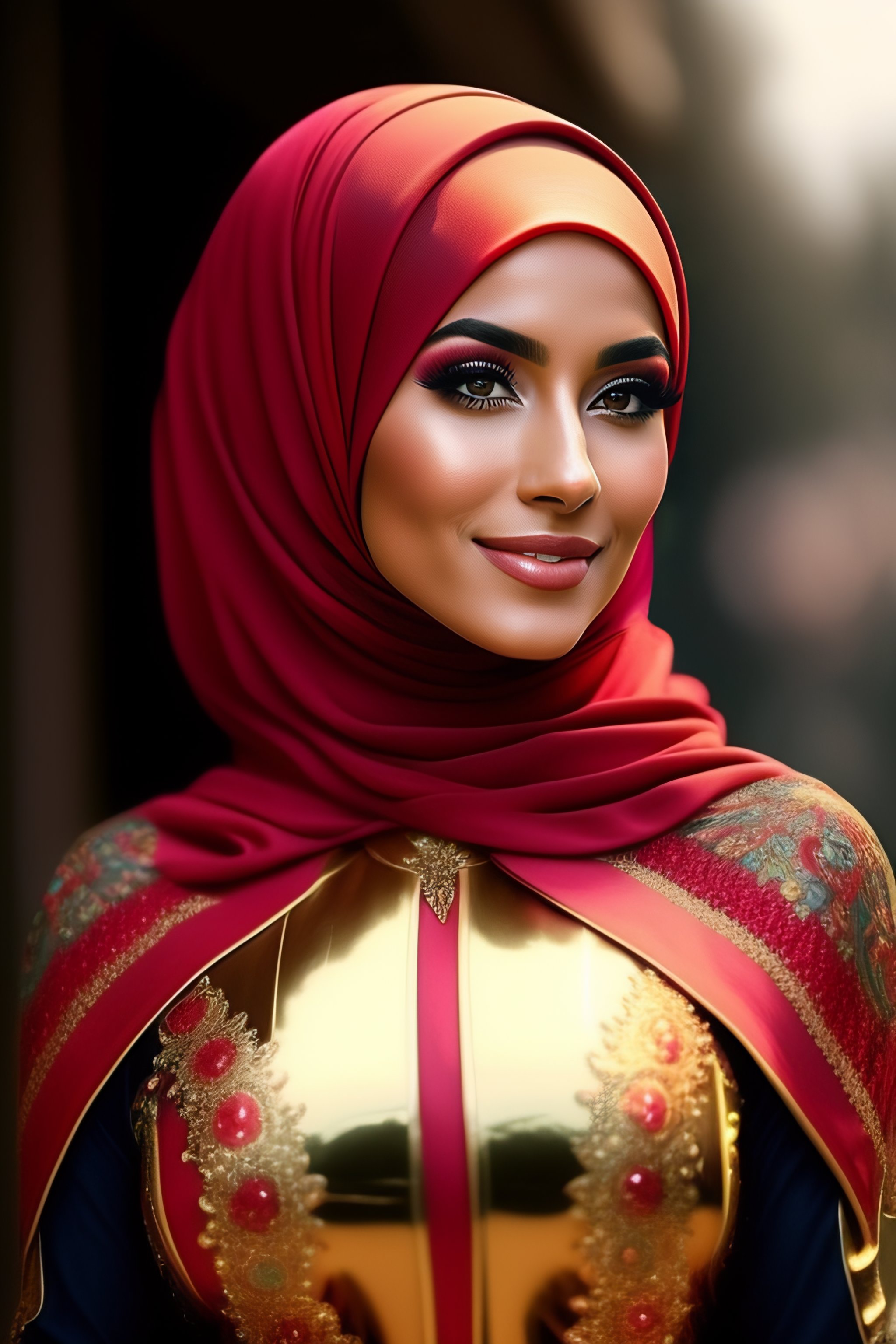 Cute hijab girl wearing sexy iron suit