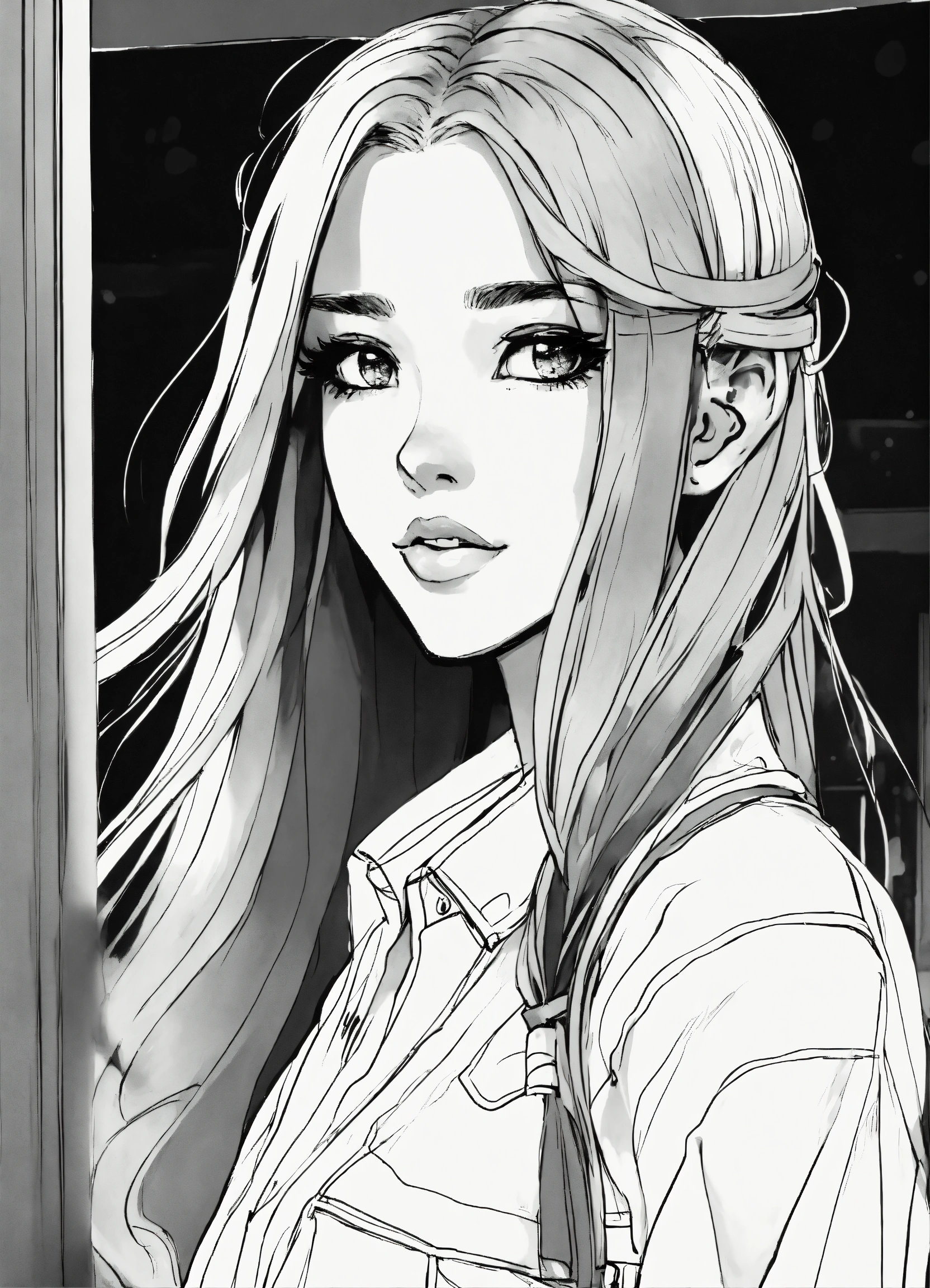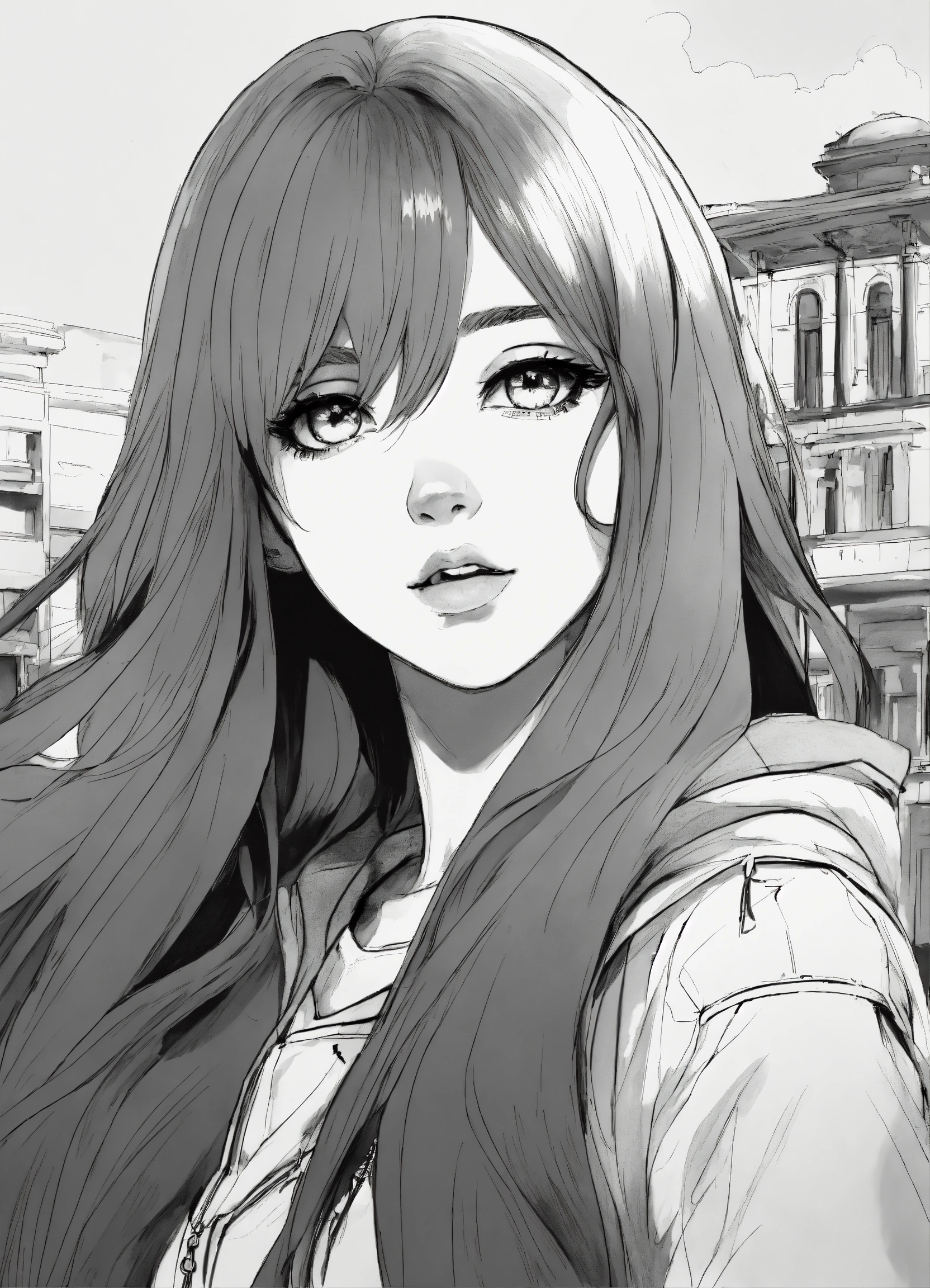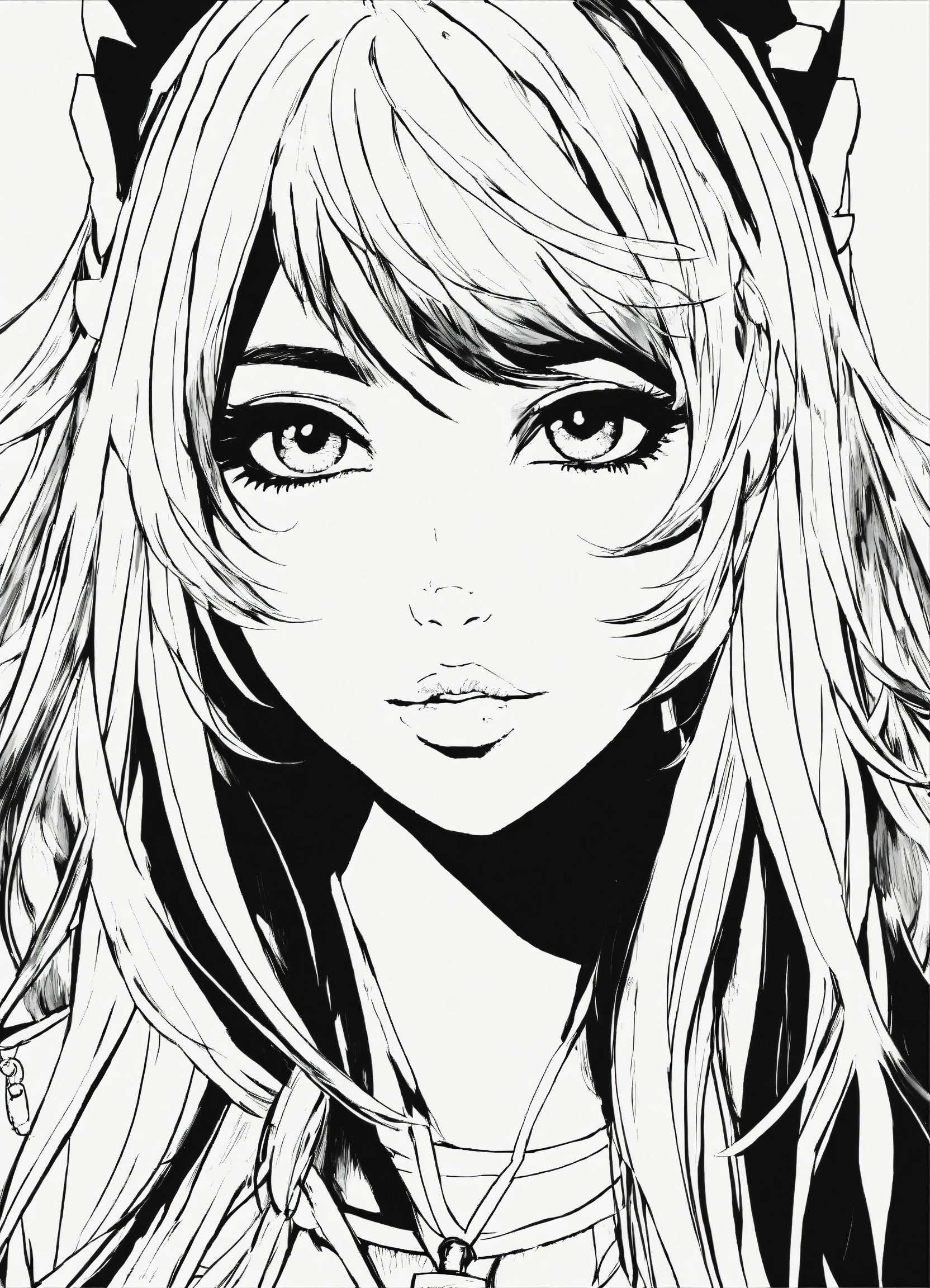 A black and white picture for coloring of an anime girl in long hair, in the style of subversive appropriation, blink - and - you - miss - it detail, bold chromaticity, the new fauves, charming characters, hurufiyya