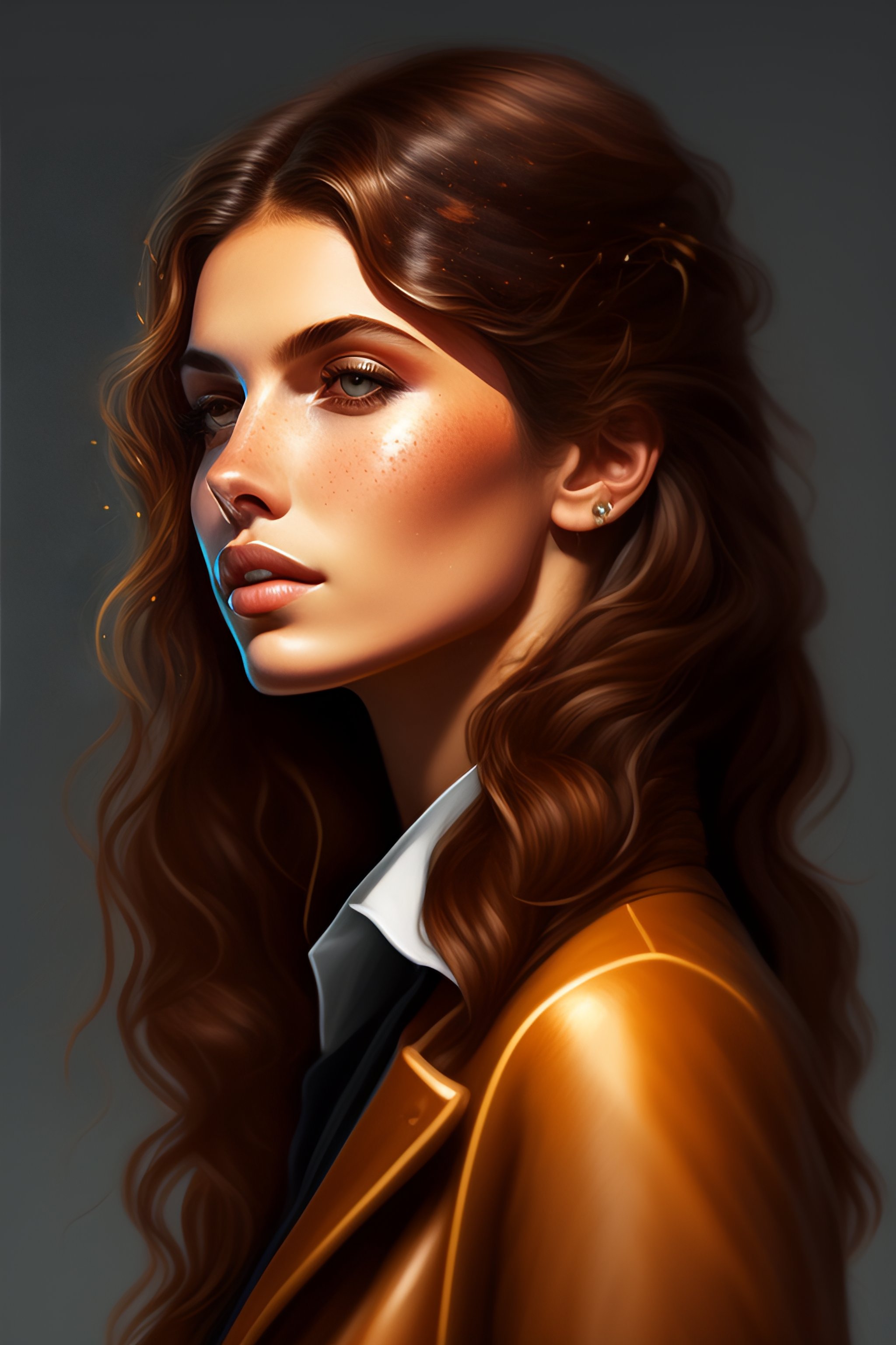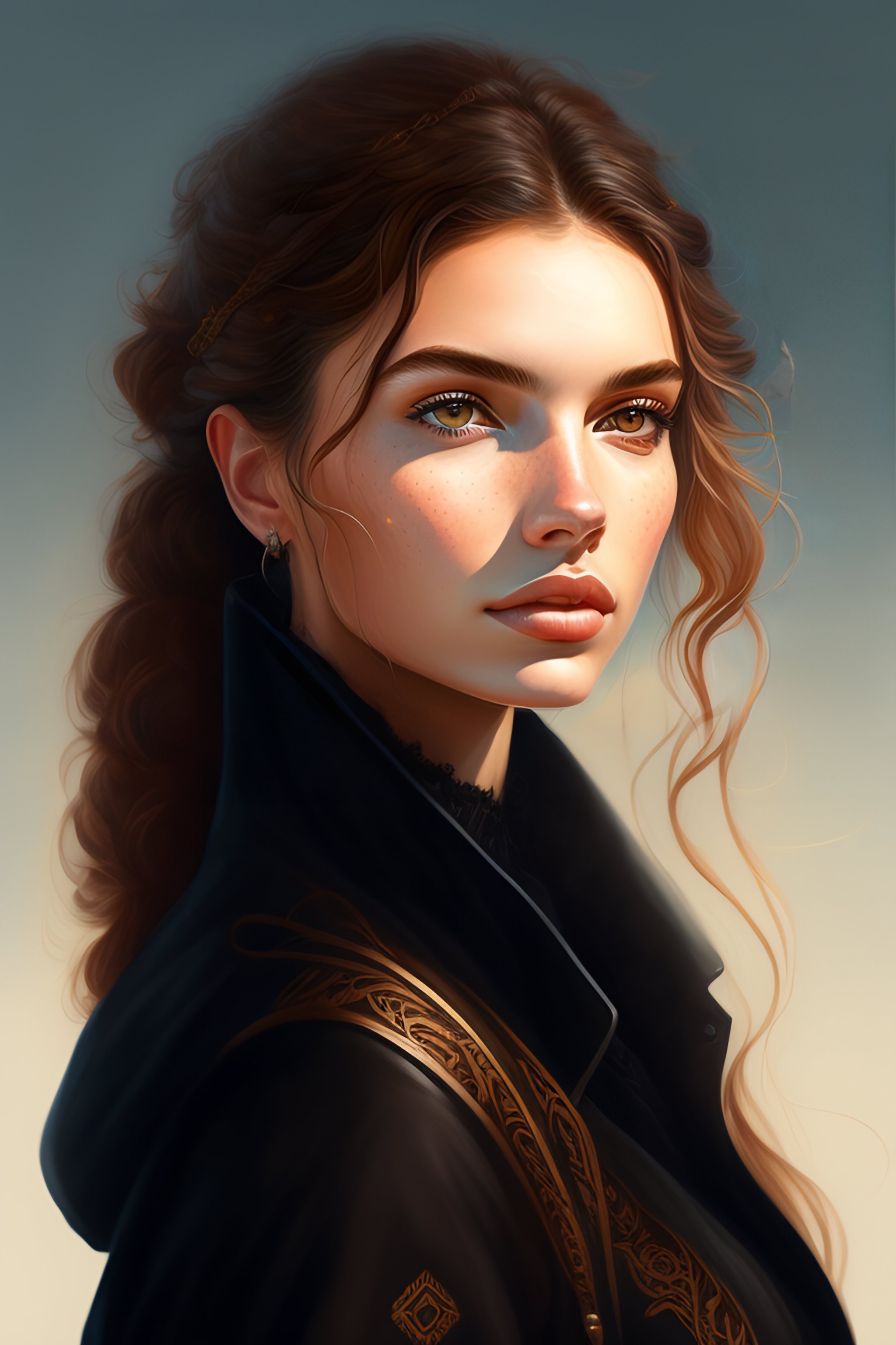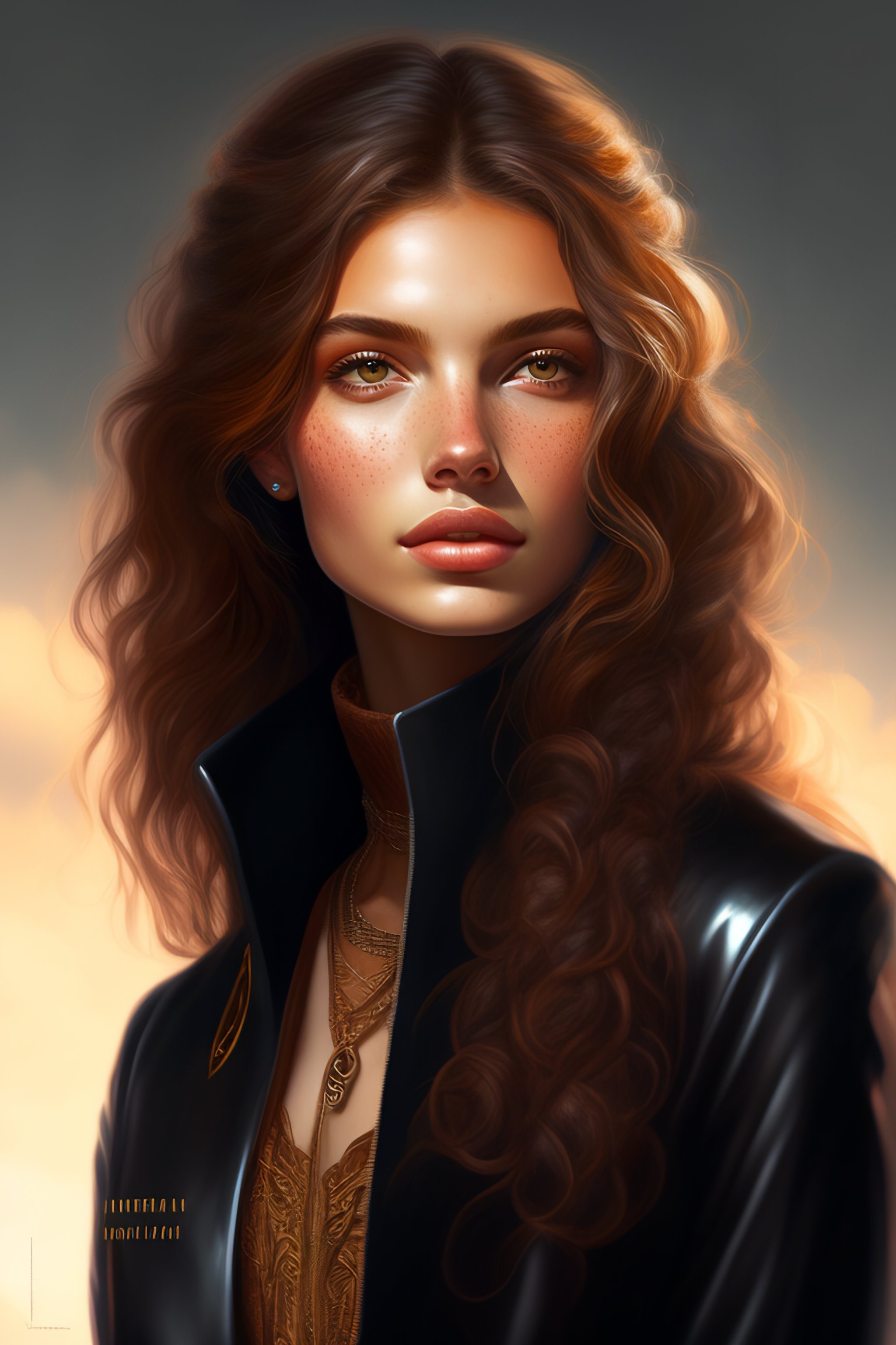 Black round shades, a full body portrait of a jotarivera75 beautiful wild, intricate, elegant, highly detailed, digital painting, artstation, concept art, smooth, sharp focus, illustration, brown hair, black jacket, youthful hannah murray, round face, messy hair, hippy, freckles