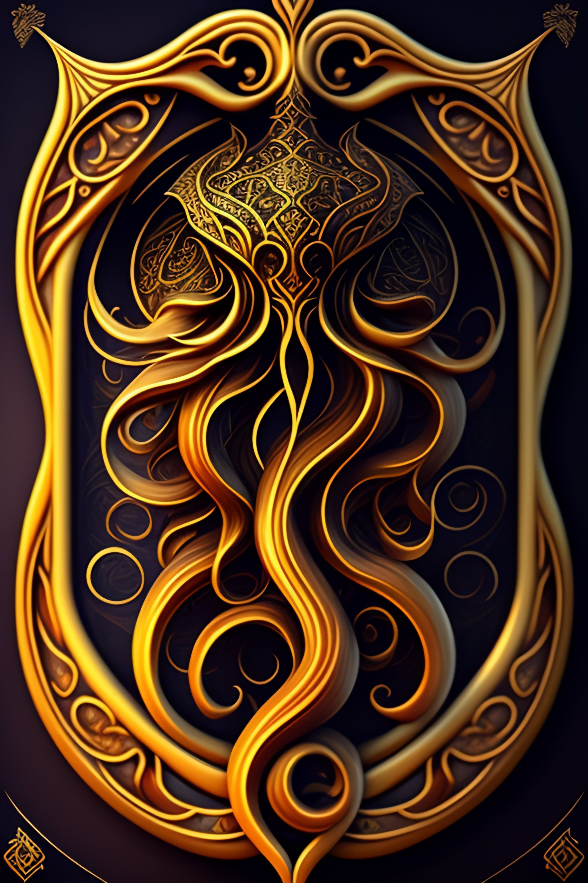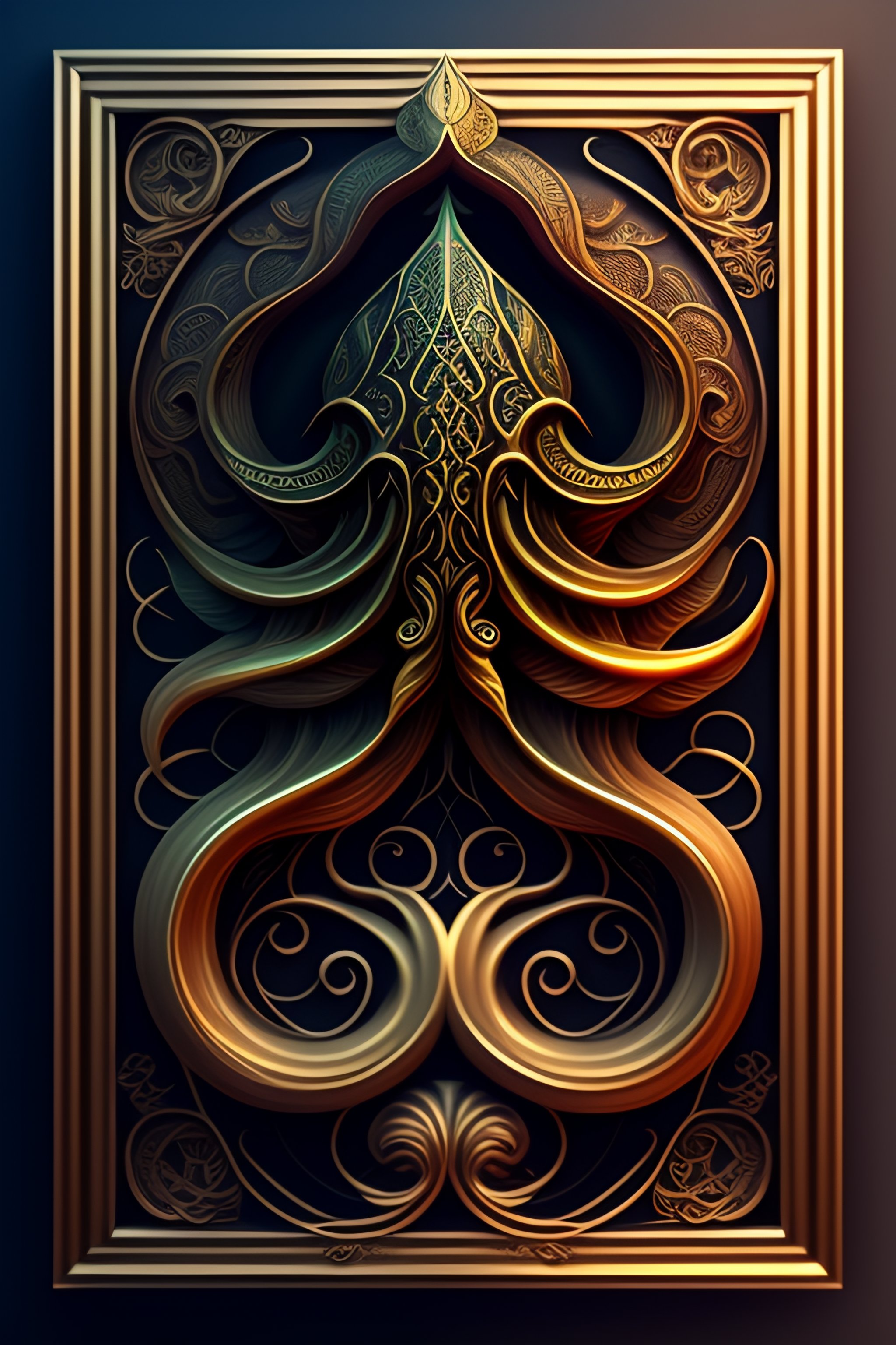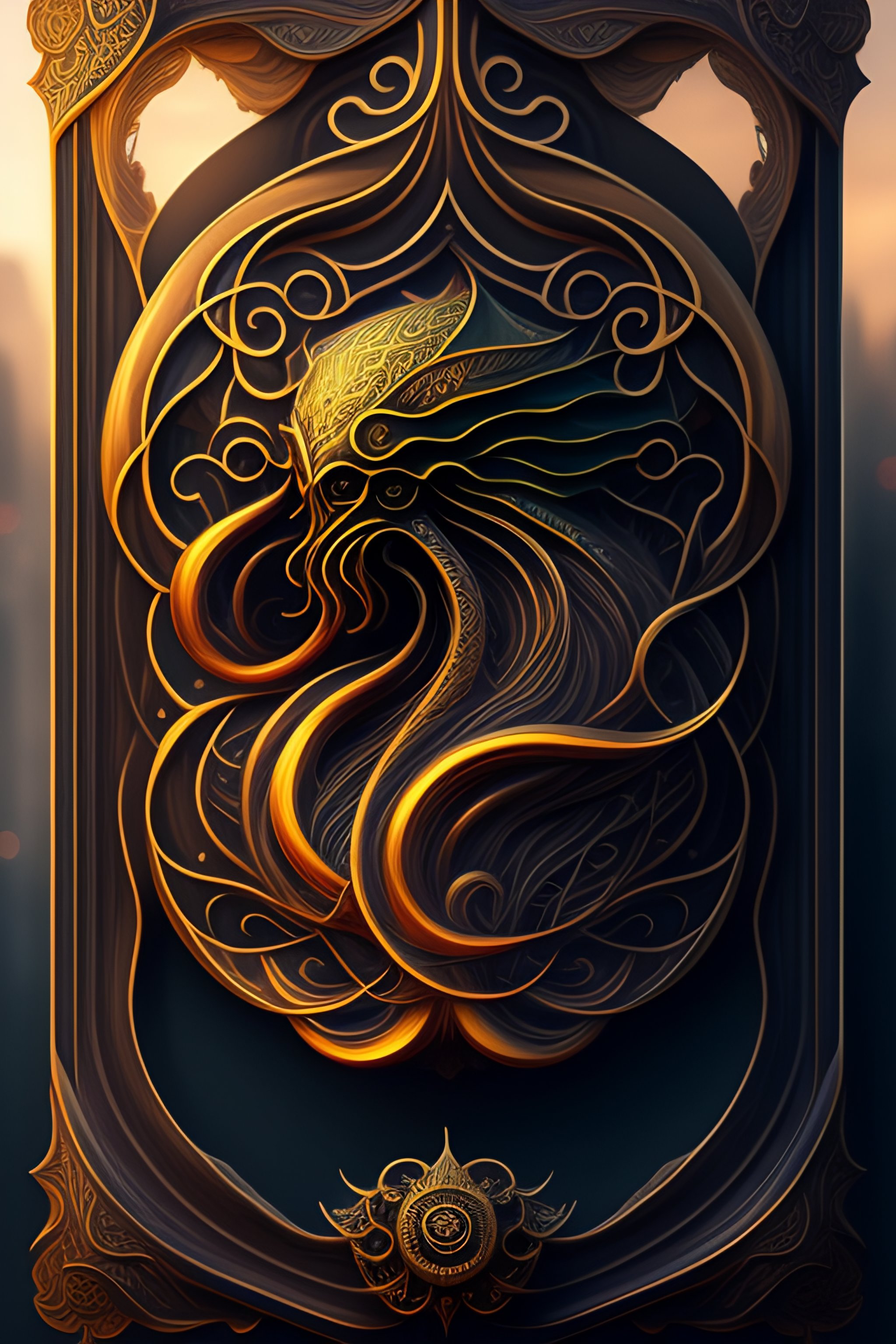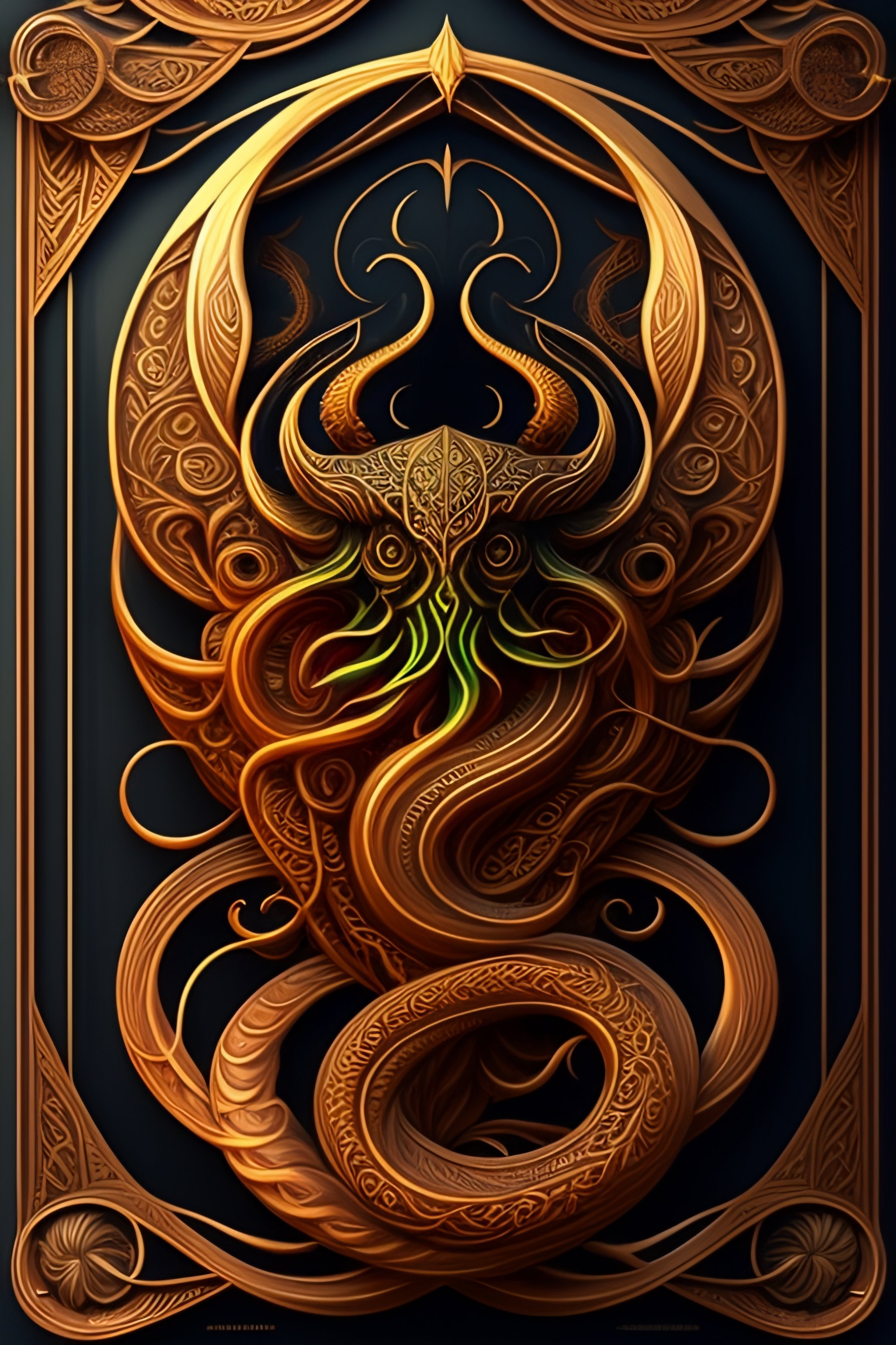 An intricate art nouveau edges frame, with a centered head of a cthulhu, tentacles, highly detailed, artstation, concept art, matte, sharp focus