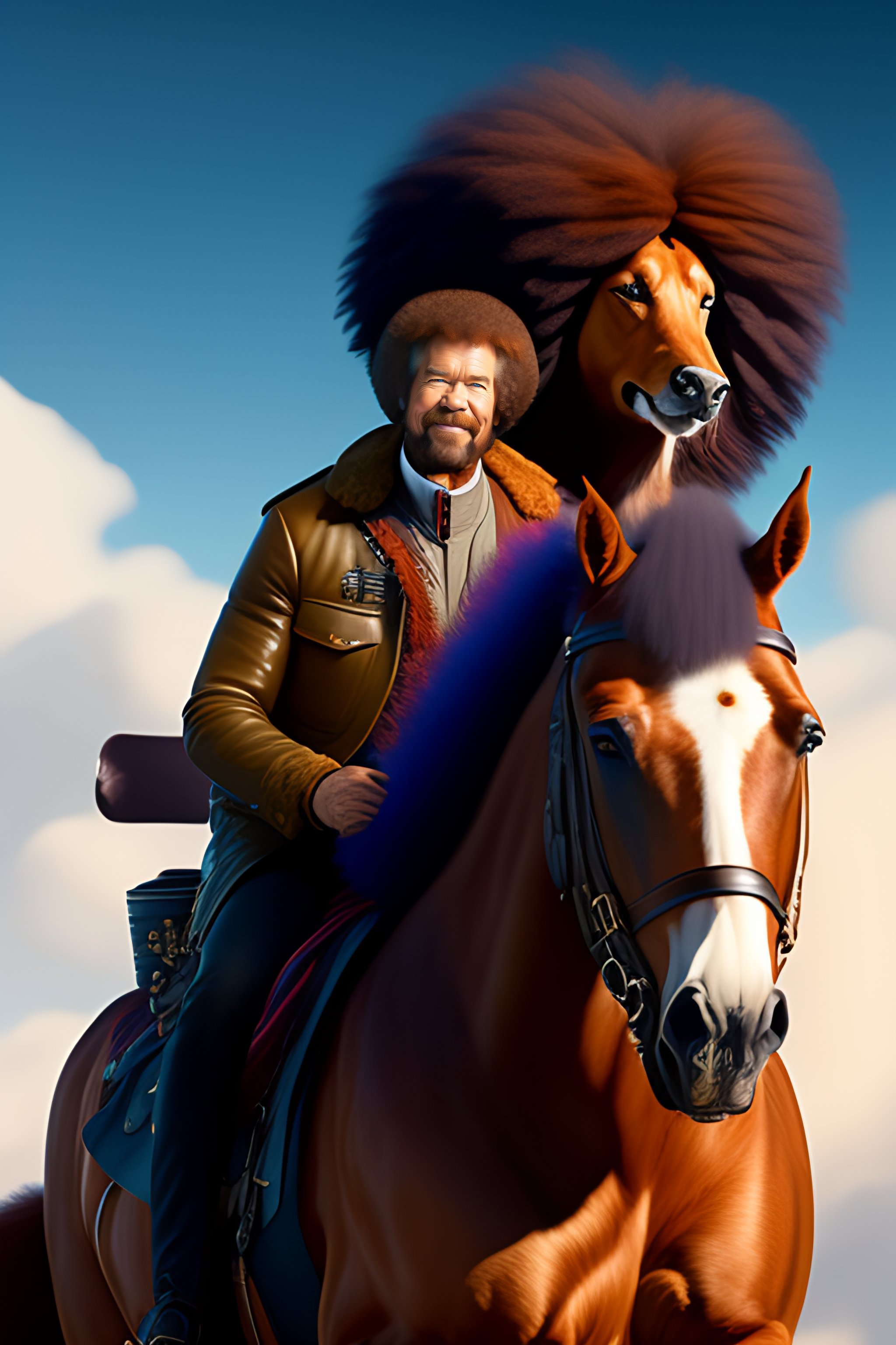 Bob ross!!! riding!!! a gryphon!!, giant afro!, model pose, ultra realistic, concept art, intricate details, highly detailed, photorealistic, octane render, 8 k, unreal engine. art by artgerm and greg rutkowski and alphonse mucha