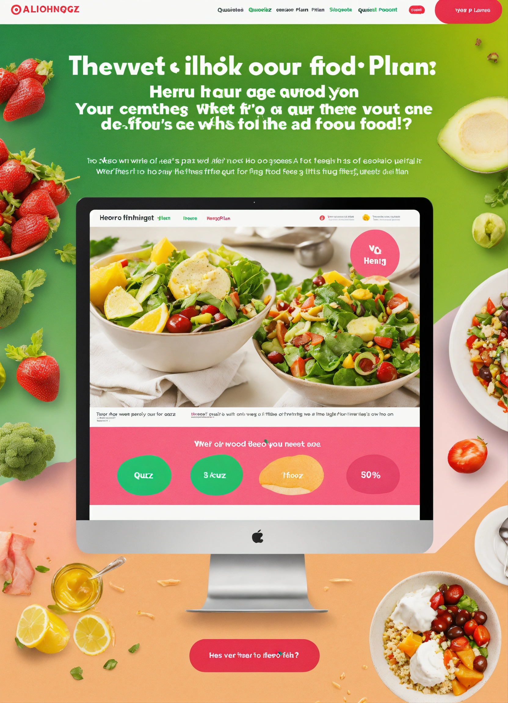 Hero image of a landing page before quiz about fitness, target audience is people who are looking for weight loss and want to see if they're suitable for food plan.