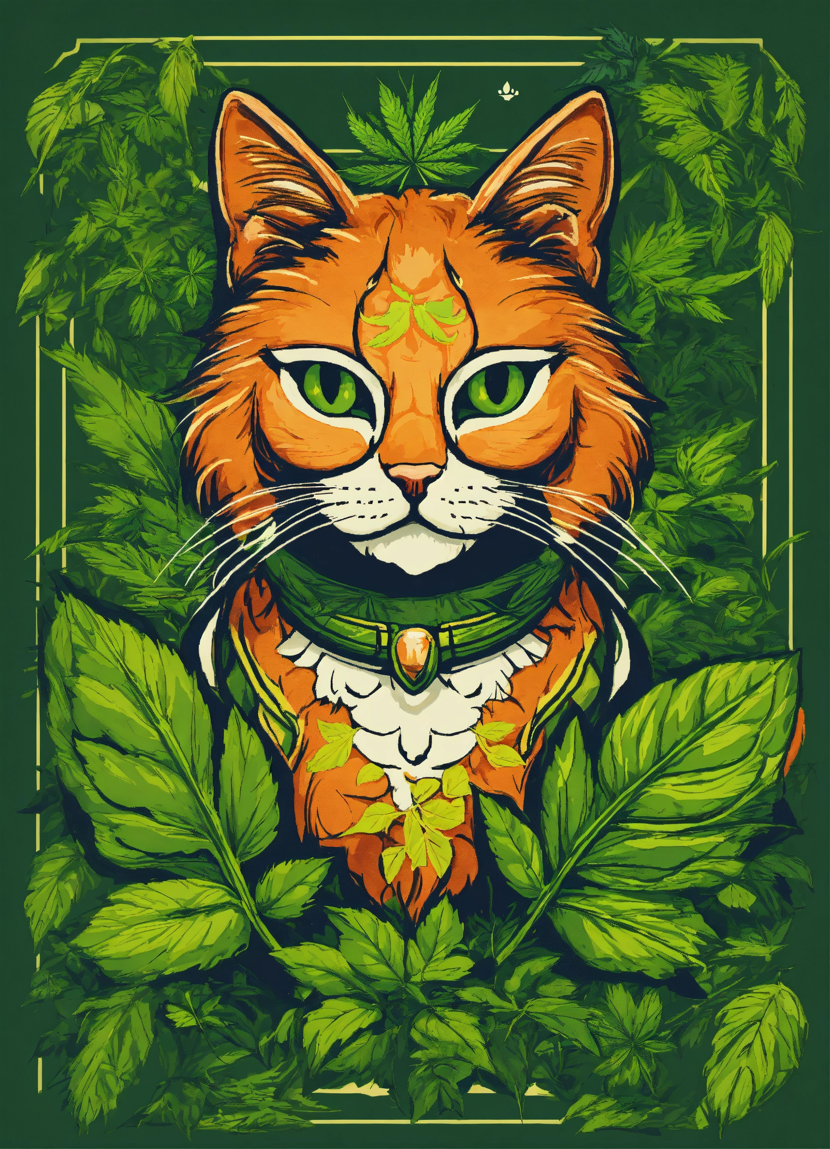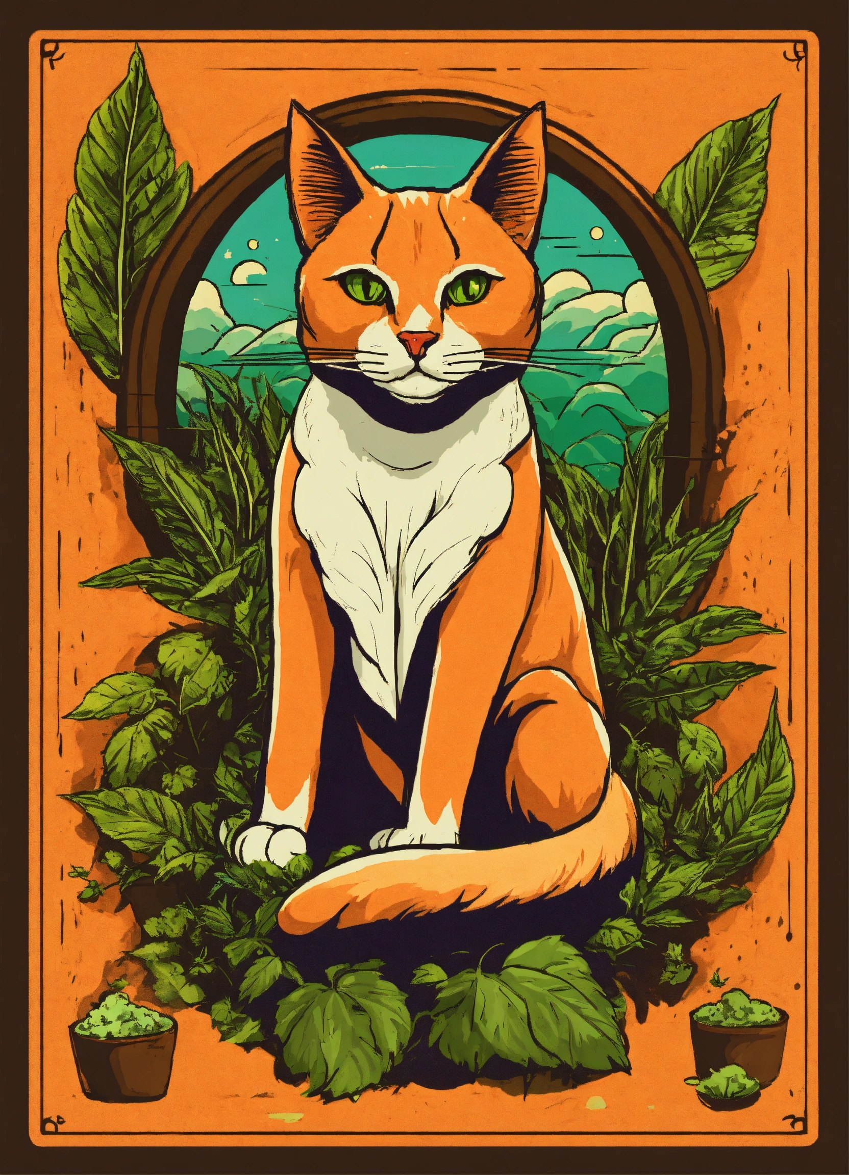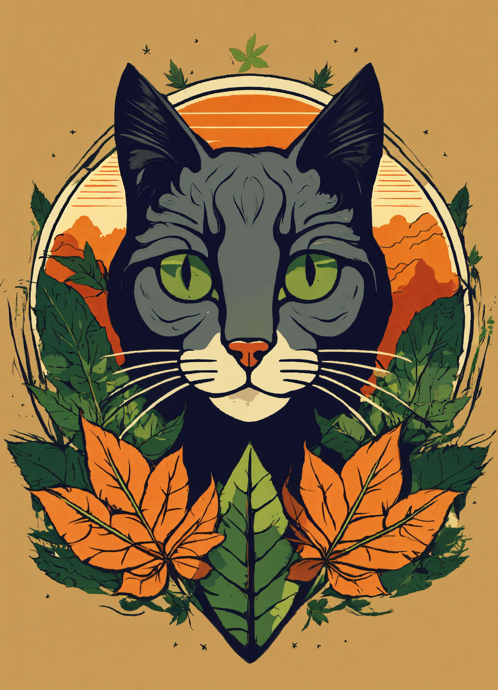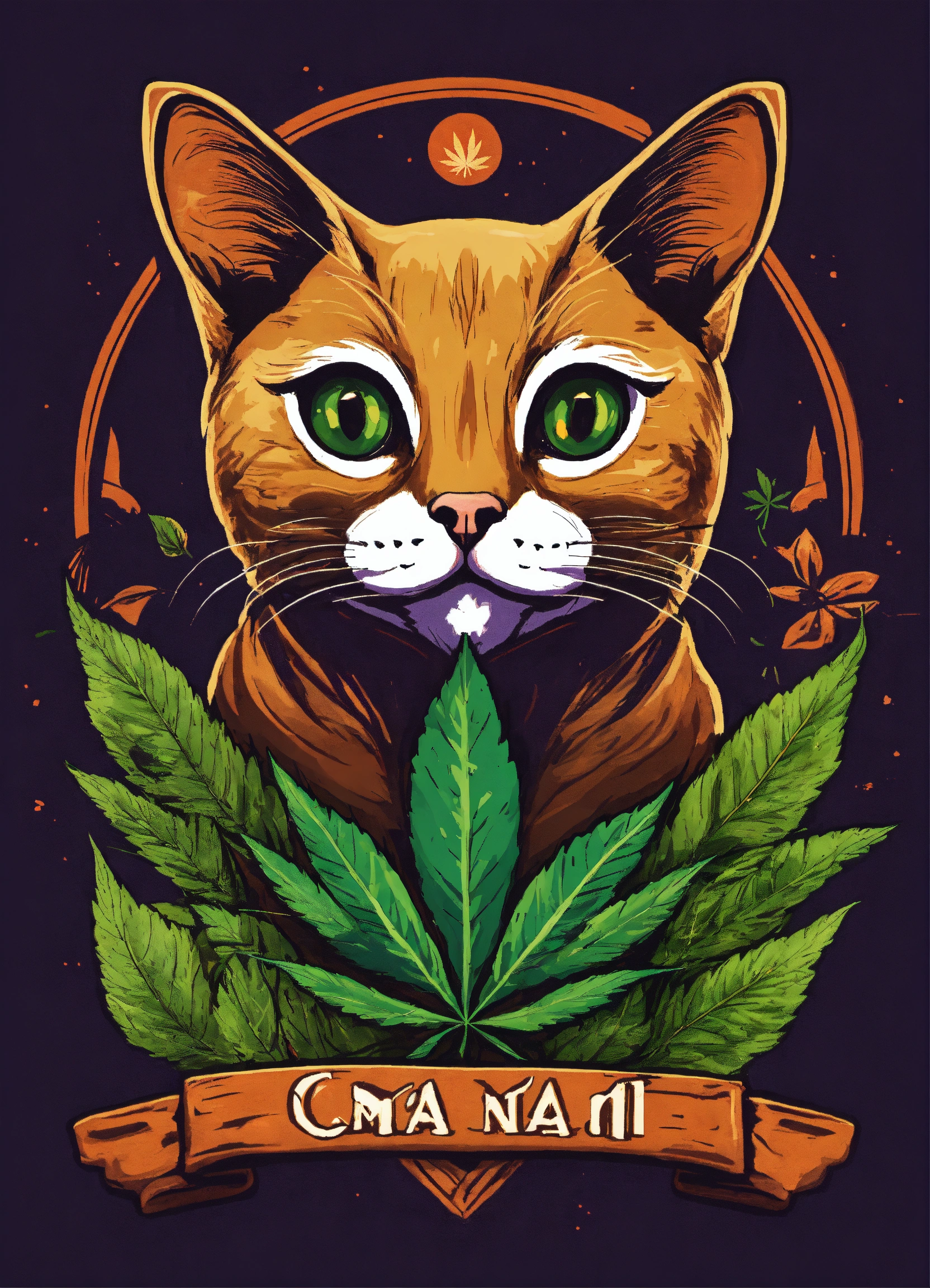 Diseño de camiseta logo de un gato siamés junto a un gato con hoja de marihuana