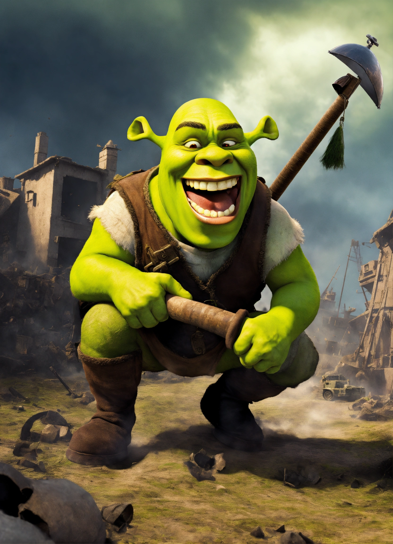 Shrek in the war screaming