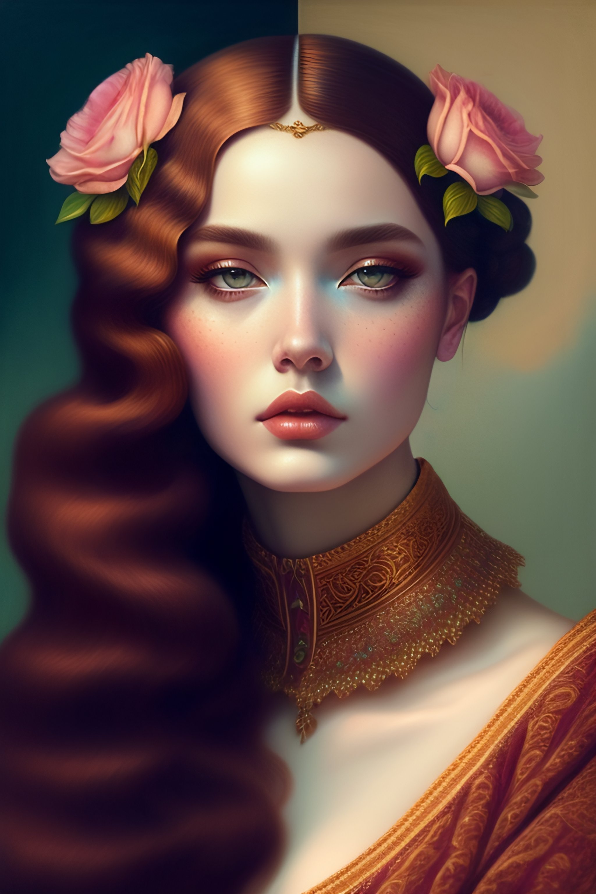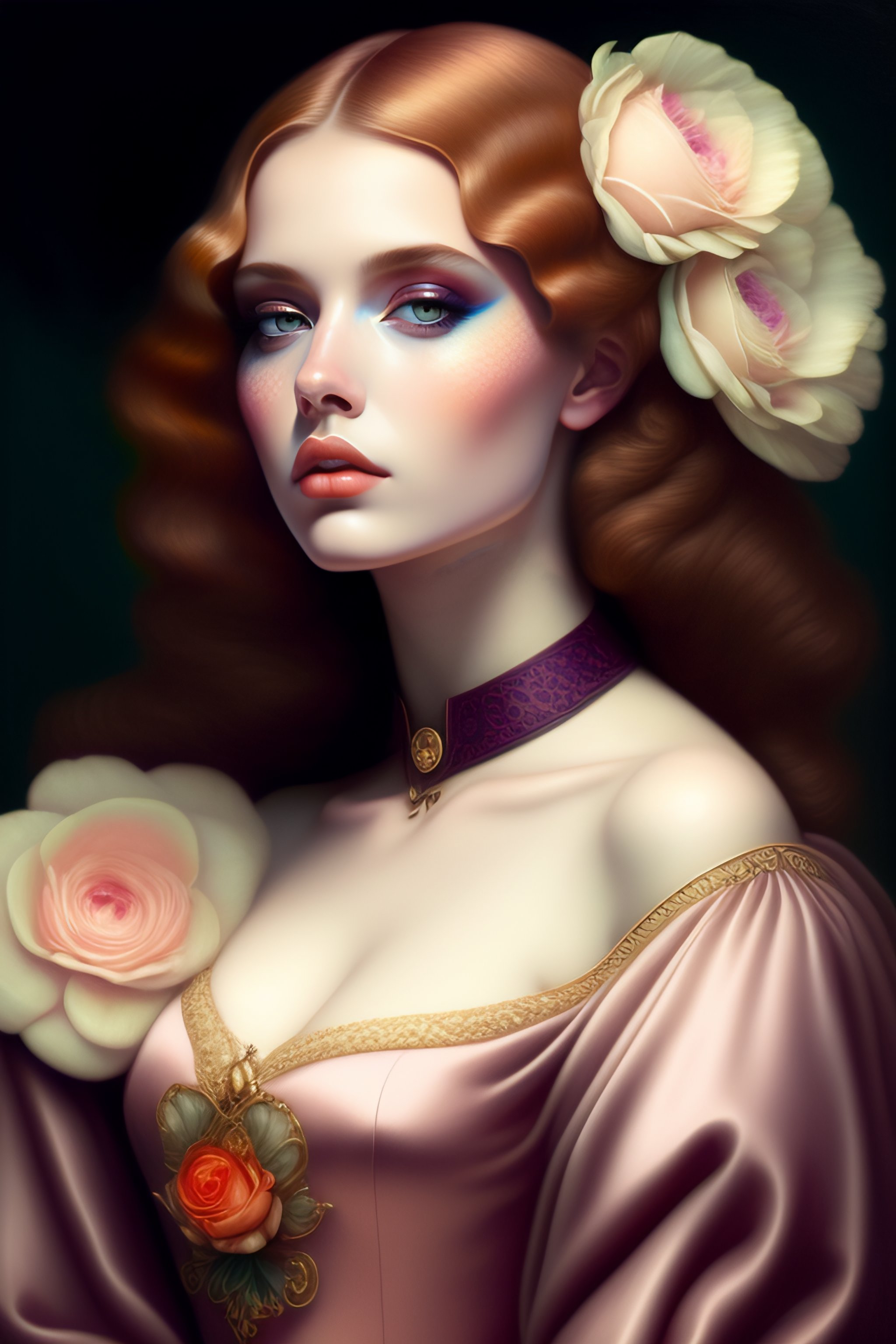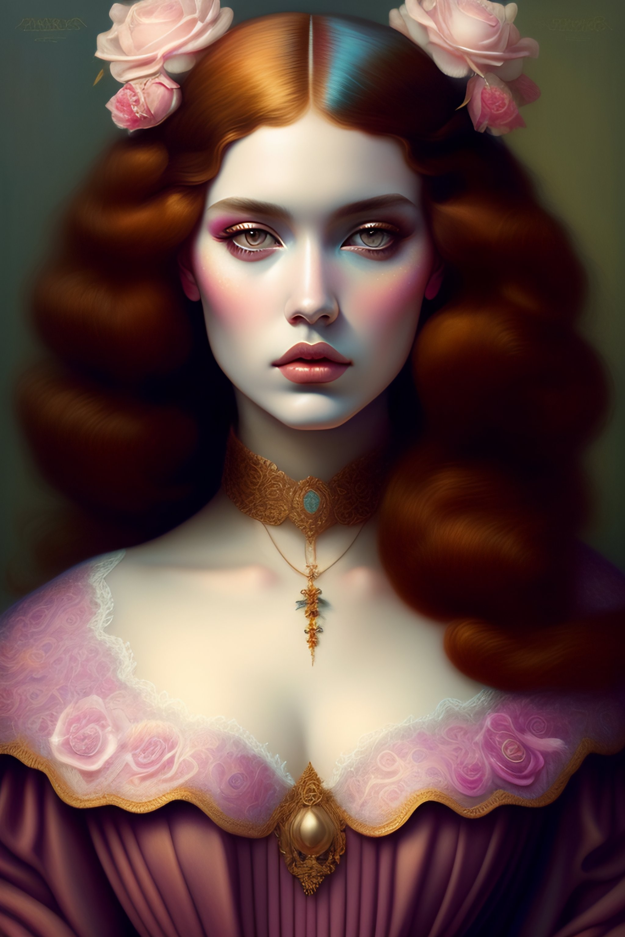 Pop surrealism, lowbrow art, realistic, woman painting, preraphaelites, hyper realism, muted colours, rococo, natalie shau, loreta lux, tom bagshaw, mark ryden, trevor brown style