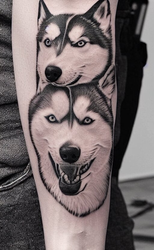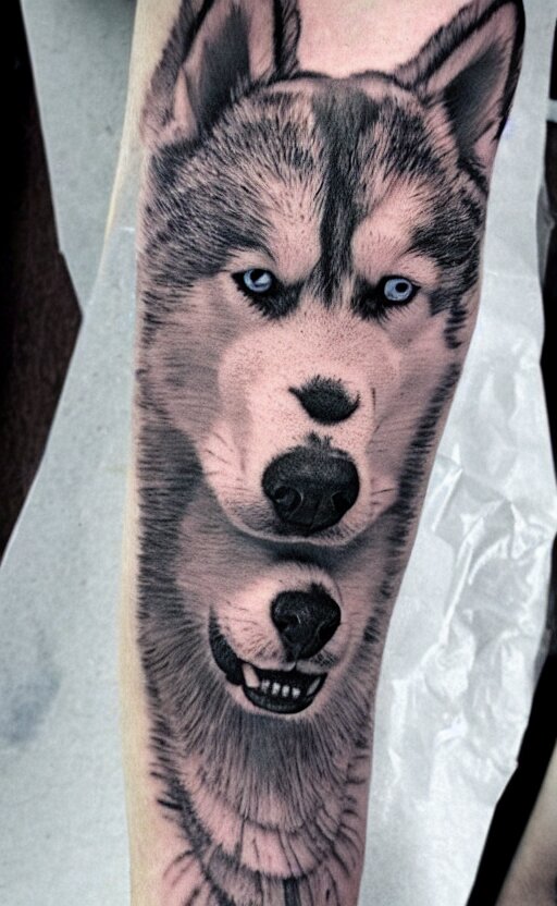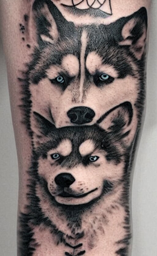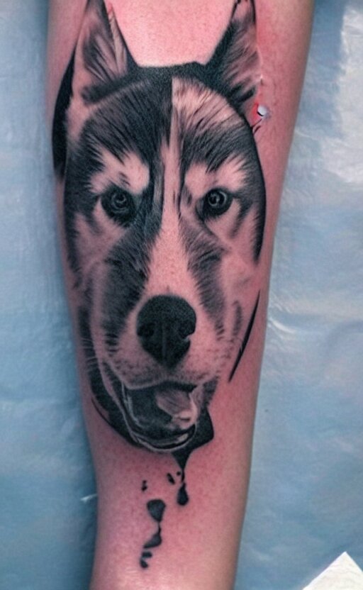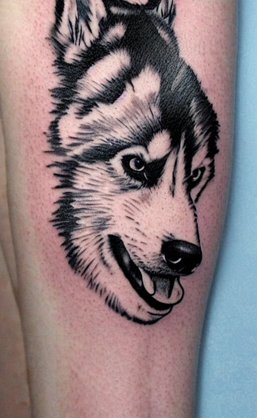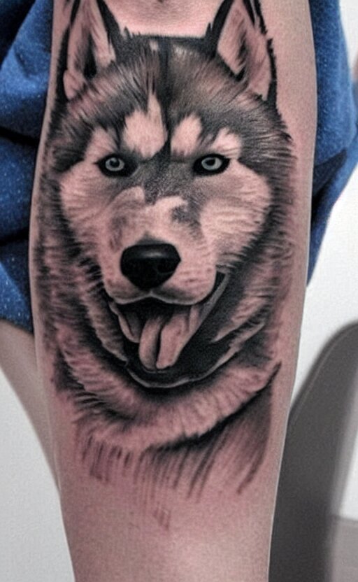 A tattoo of a husky dog
