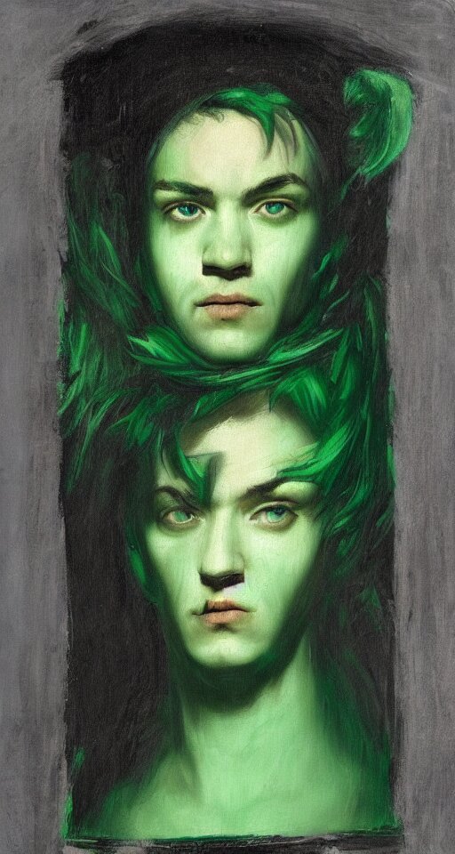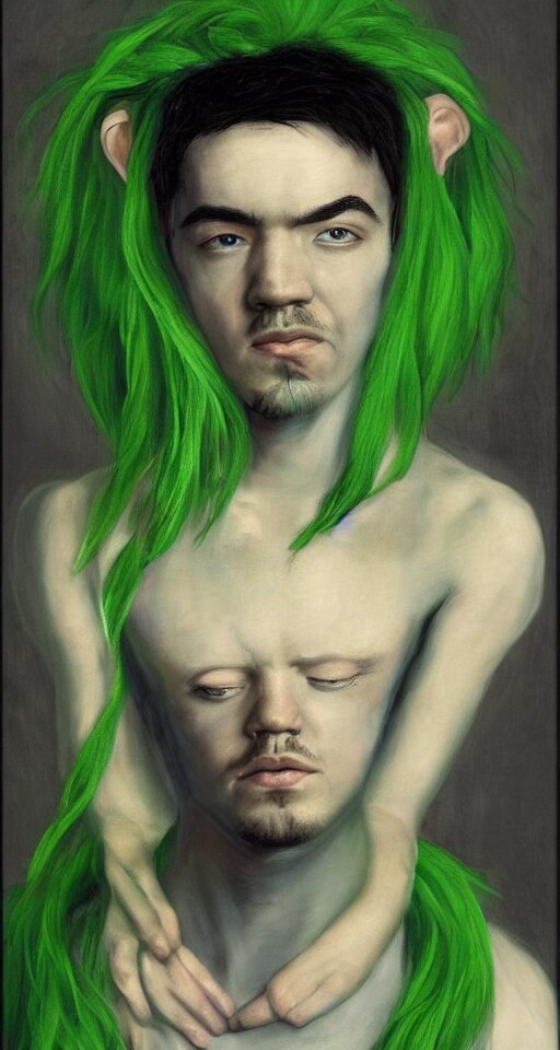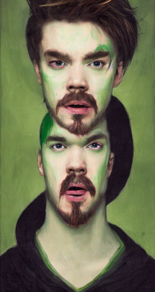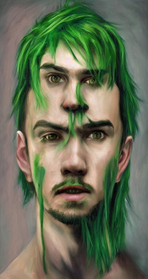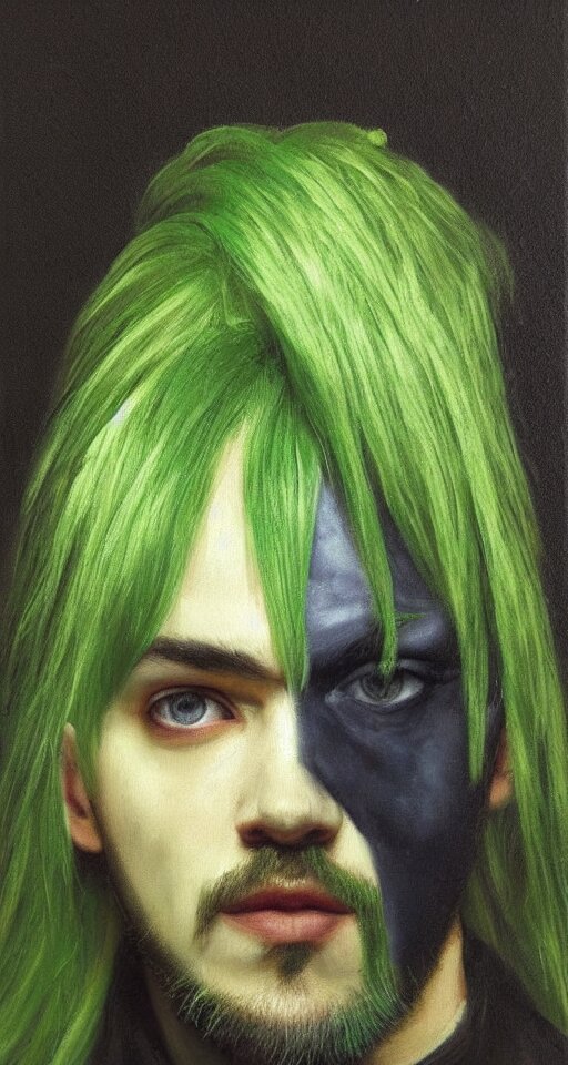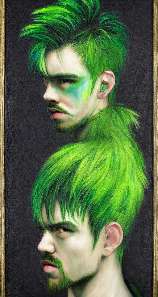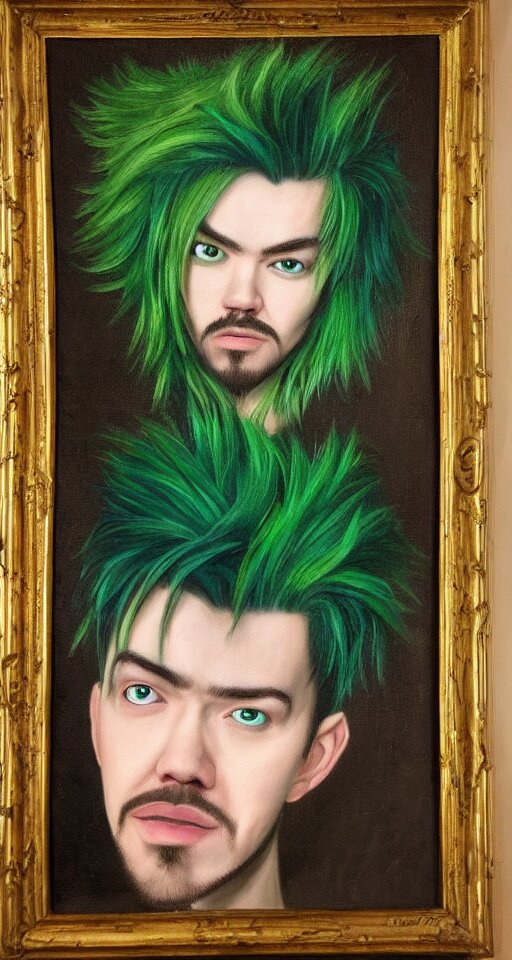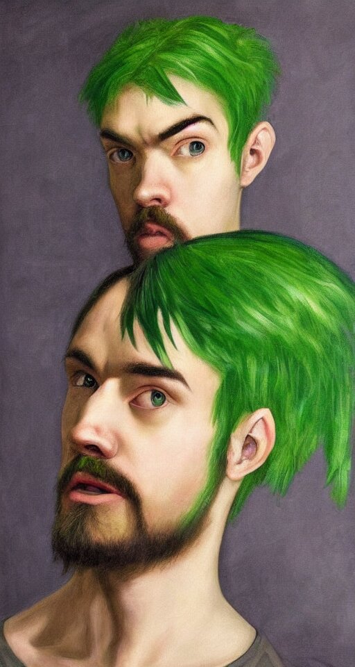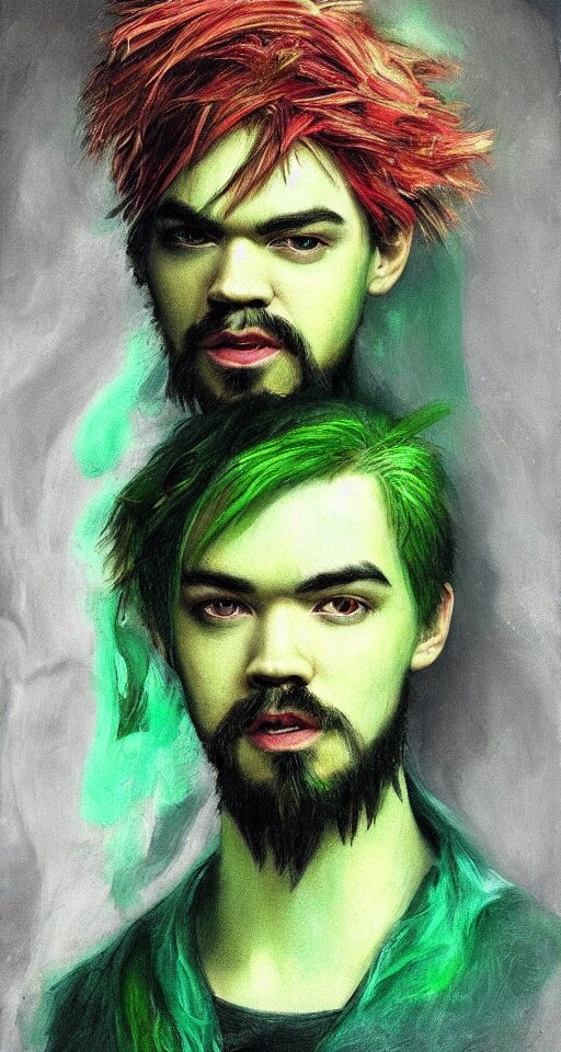 Jacksepticeye with dyed green hair renaissance portrait painting
