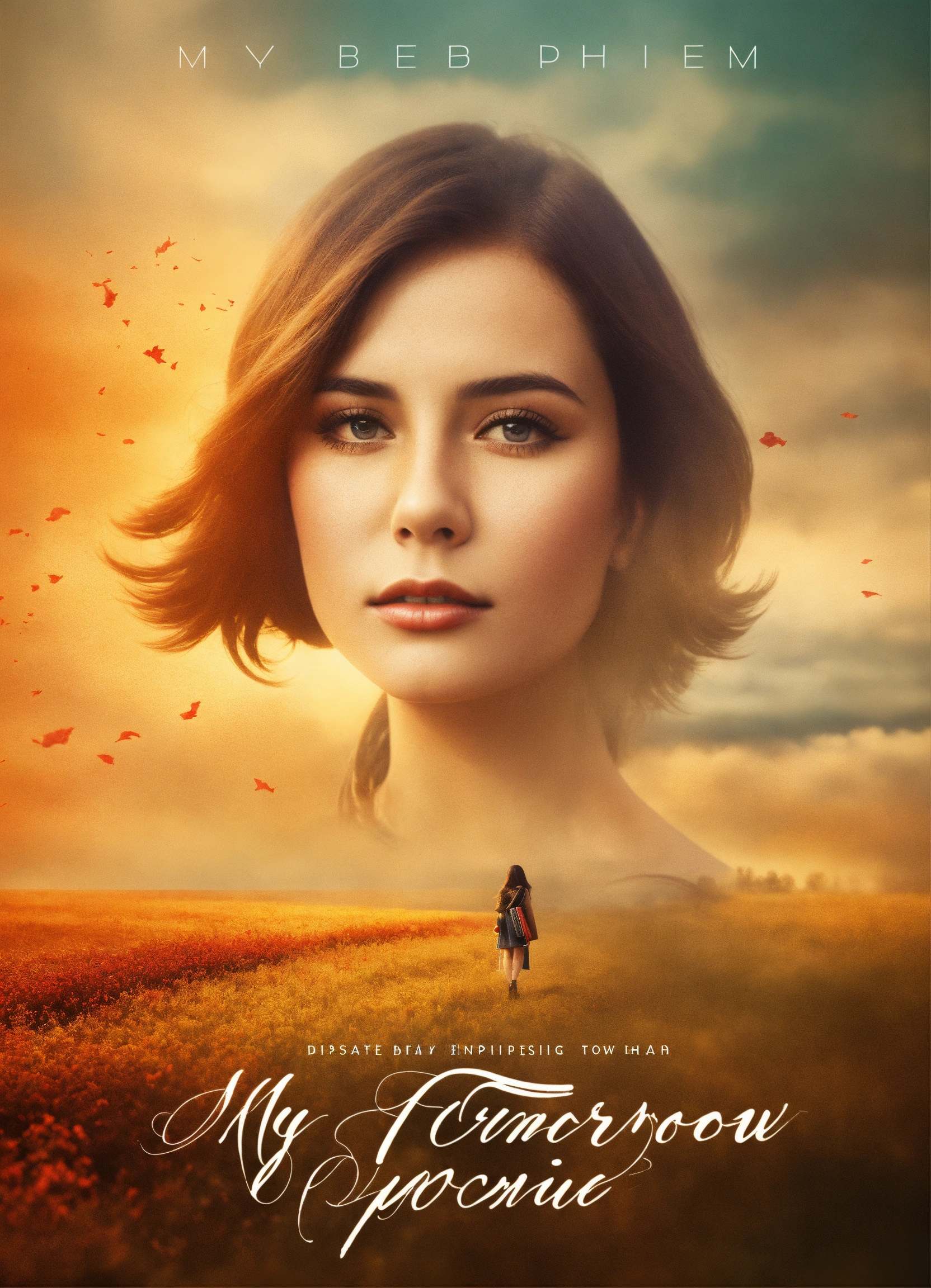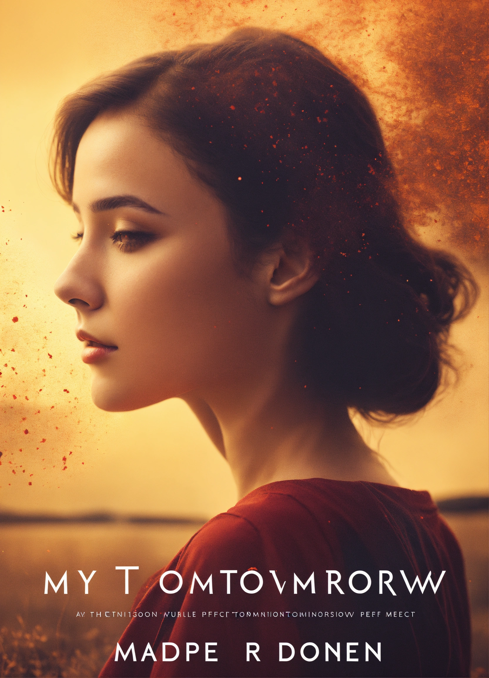 Create a captivating memoir book cover with the title my tomorrow, dispersion effect, with photo, my tomorrow, minimalist cover, a woman picture, vintage style color, dispersion effect, vintage color