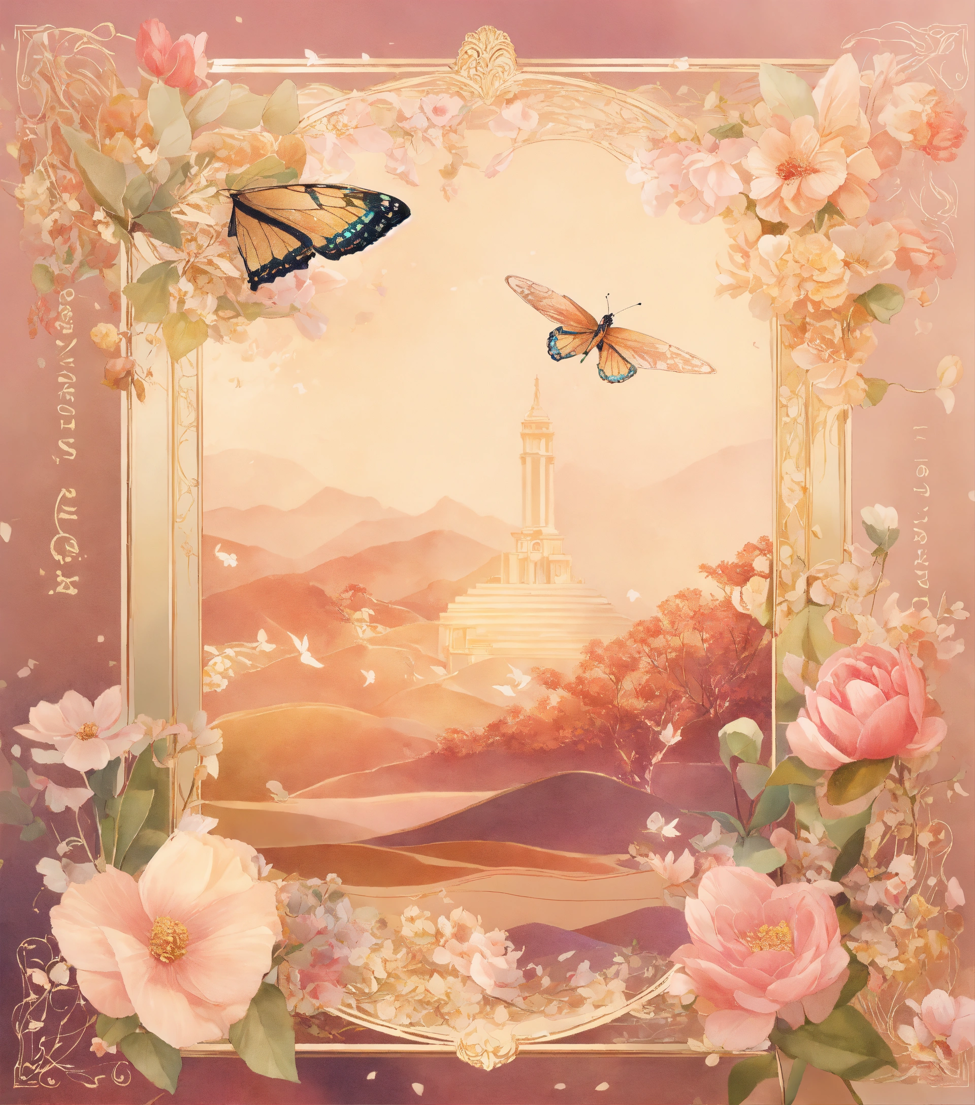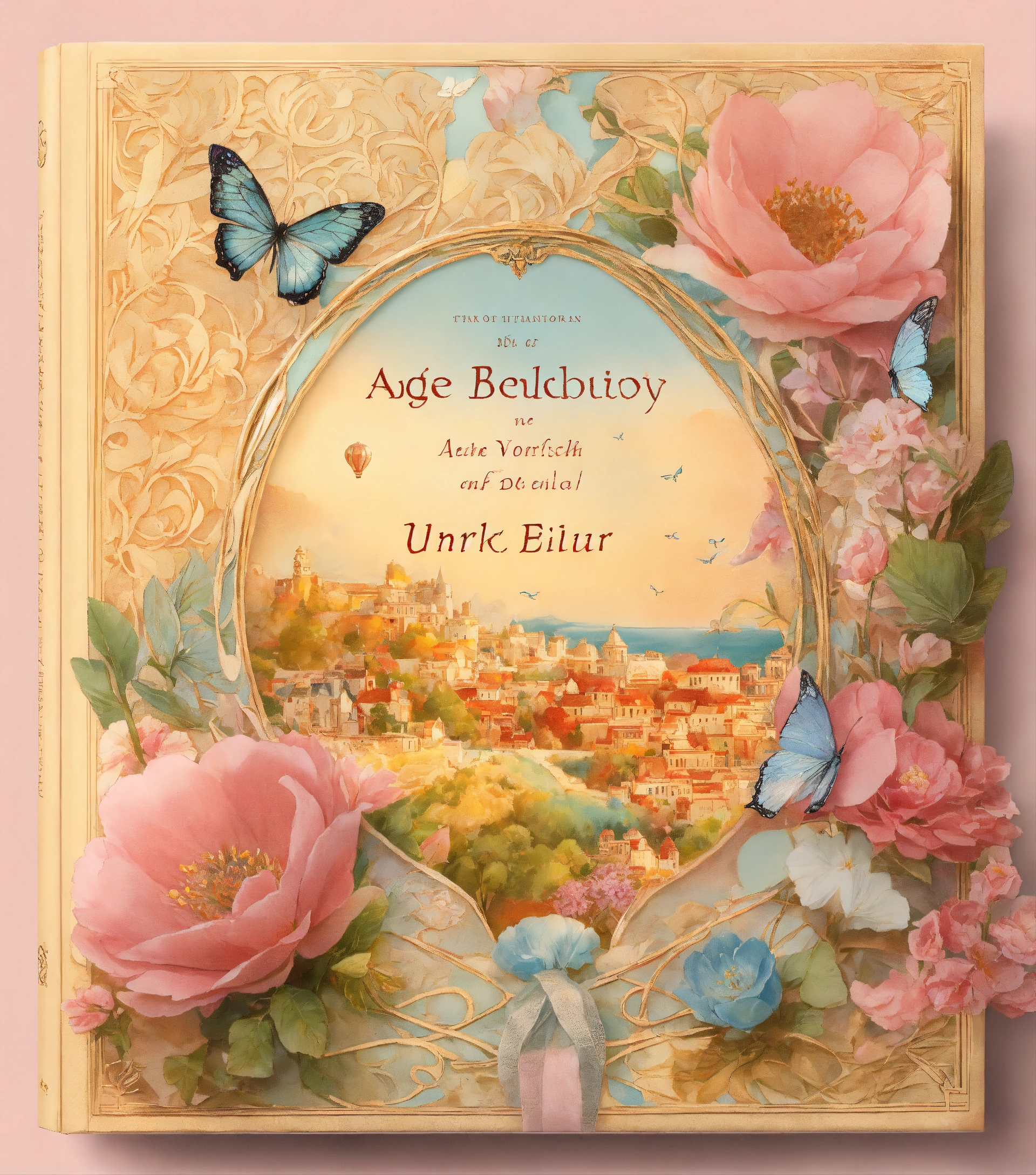 Create an enchanting book cover that reflects the essence of "ageless odyssey unearth the elixir of eternal youth." use a soft, pastel color palette with a focus on beige tones. include delicate floral motifs intertwining with worldly landmarks, symbolizing the global quest for timeless beauty. incorporate subtle elements like flowing ribbons or ethereal butterflies to evoke a sense of grace and transformation. let the cover exude serenity and intrigue, inviting readers to embark on a captivating journey of ageless living, do not include any letters or writing in the imnage
