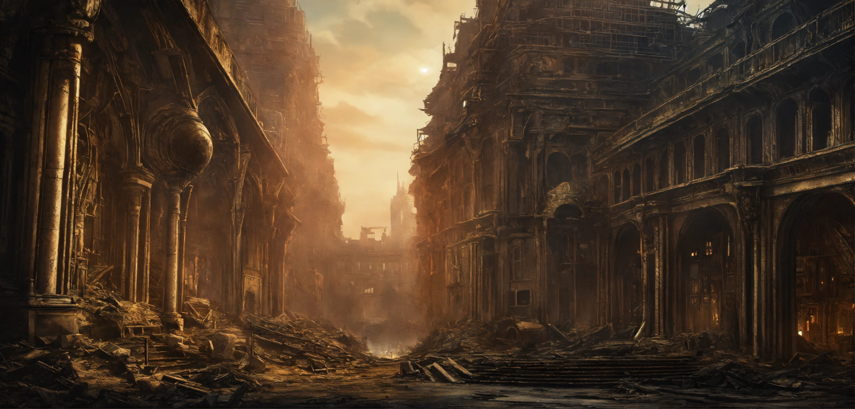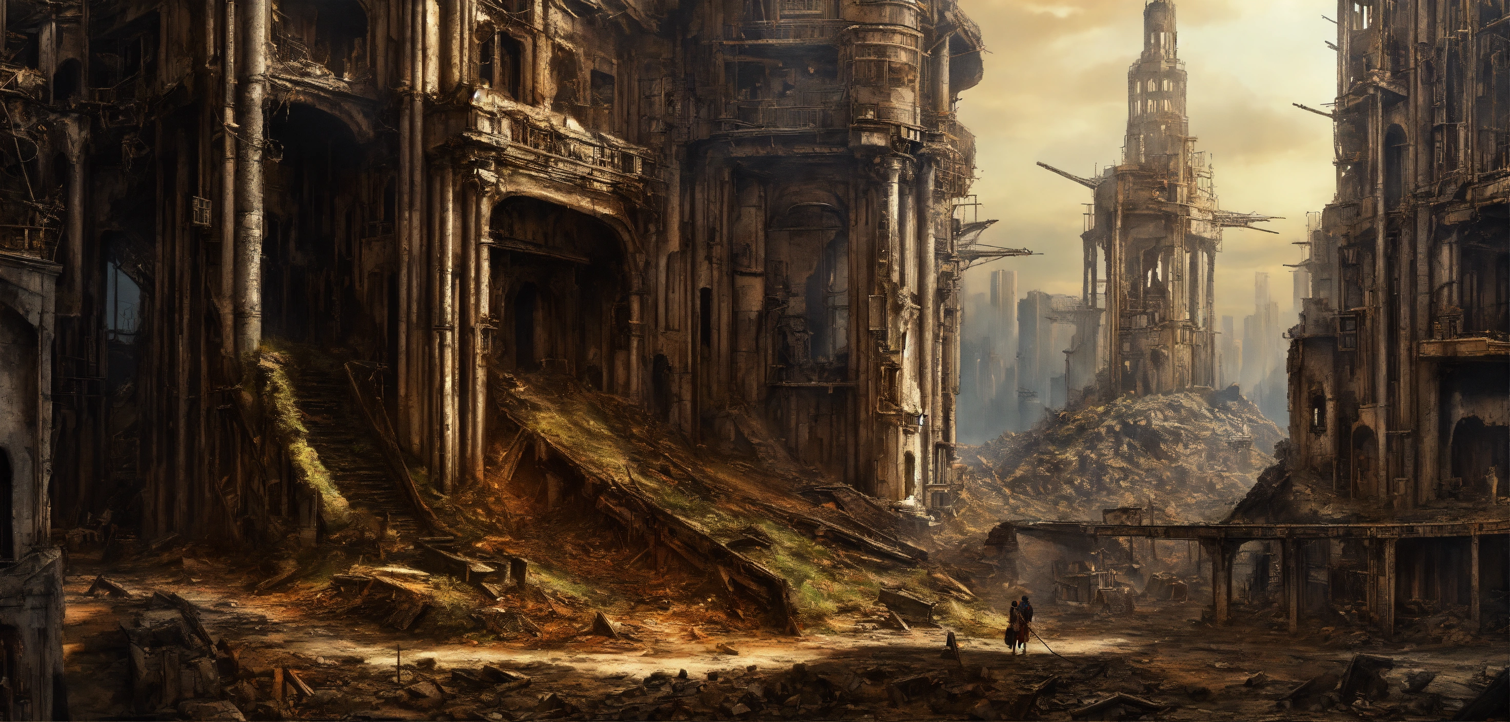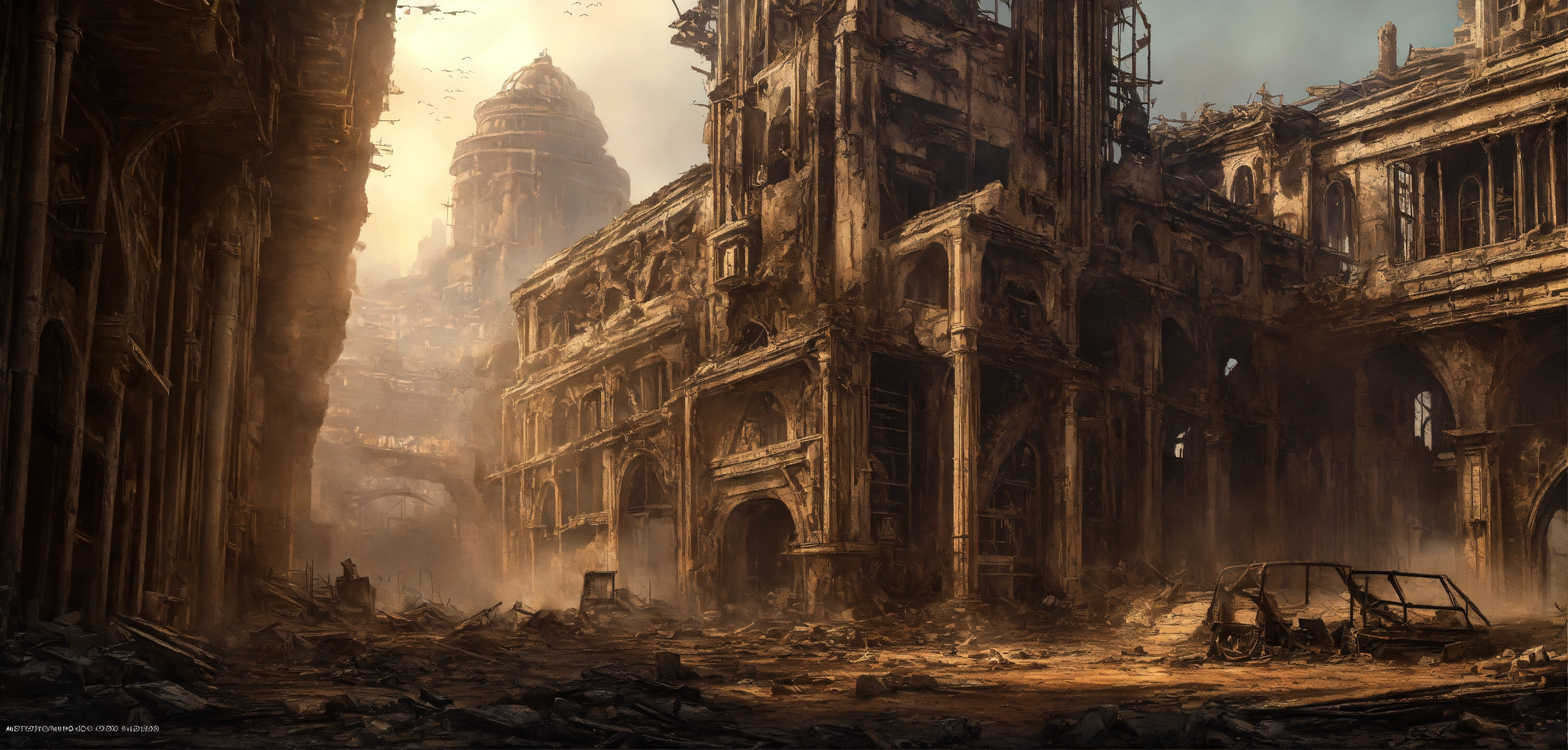Ruined city ruins in 1930, centred, high quality art by h.r. giger, realistic, vivid colors, highly detailed, uhd drawing, pen and ink, perfect composition, beautiful detailed intricate insanely detailed octane render trending on artstation, 32k, ultra hd, 8k artistic photography, photorealistic concept art, soft natural volumetric cinematic perfect light.