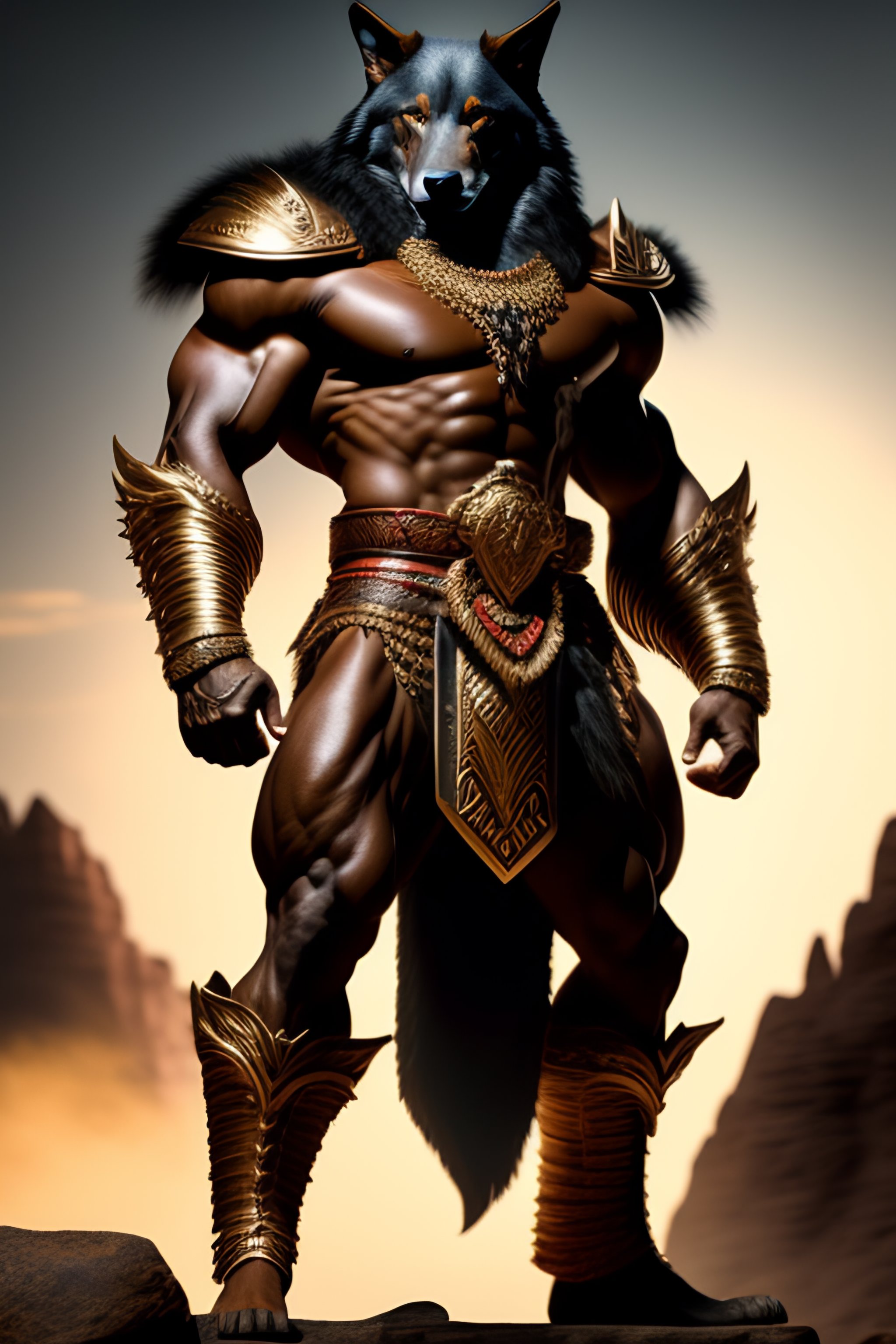 Handsome old wolf man warlord wearing bronze age clothing, bodybuilder, ultra high quality, ultra high definition, 8k, photograph photorealistic by frank frazetta, full body