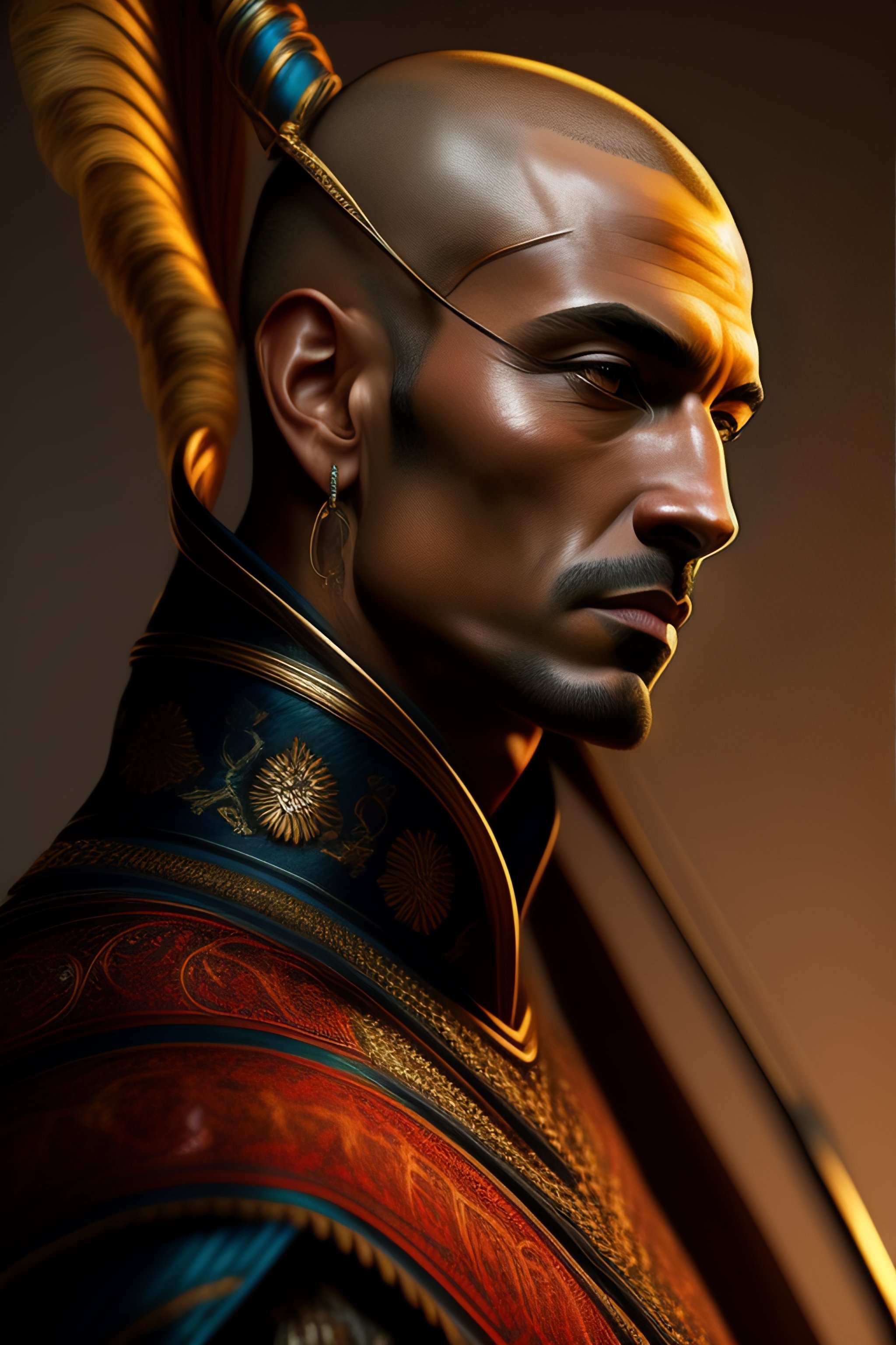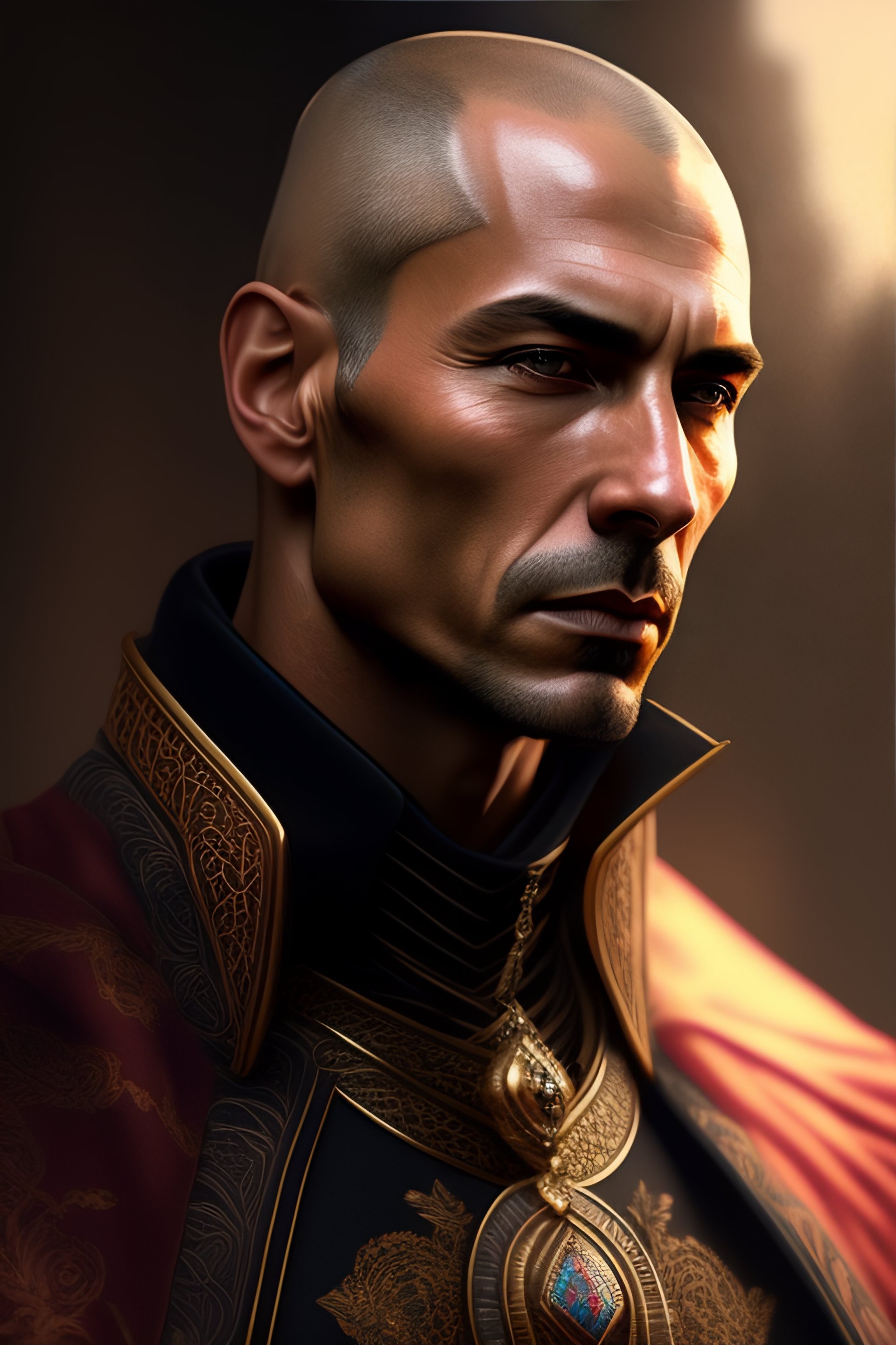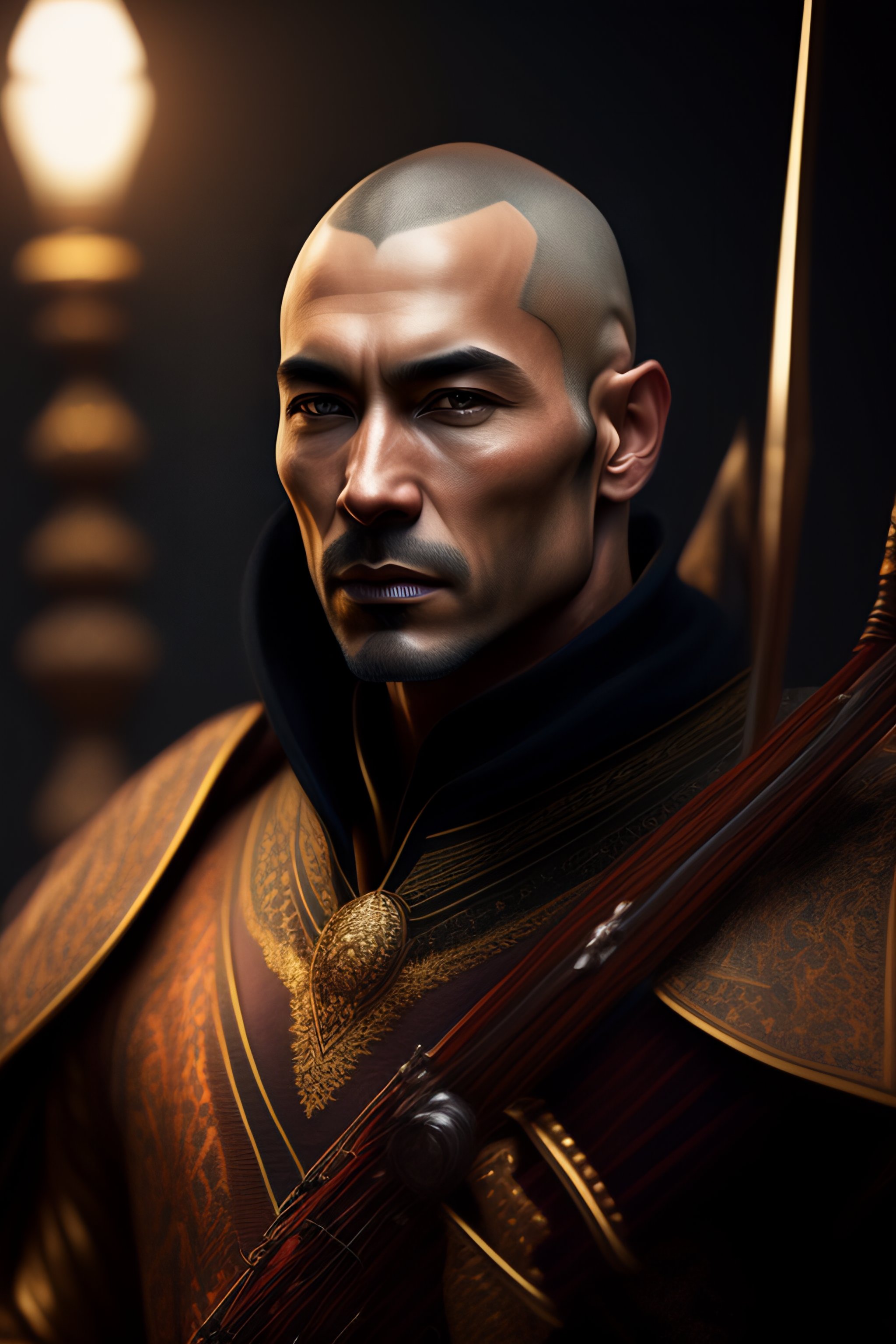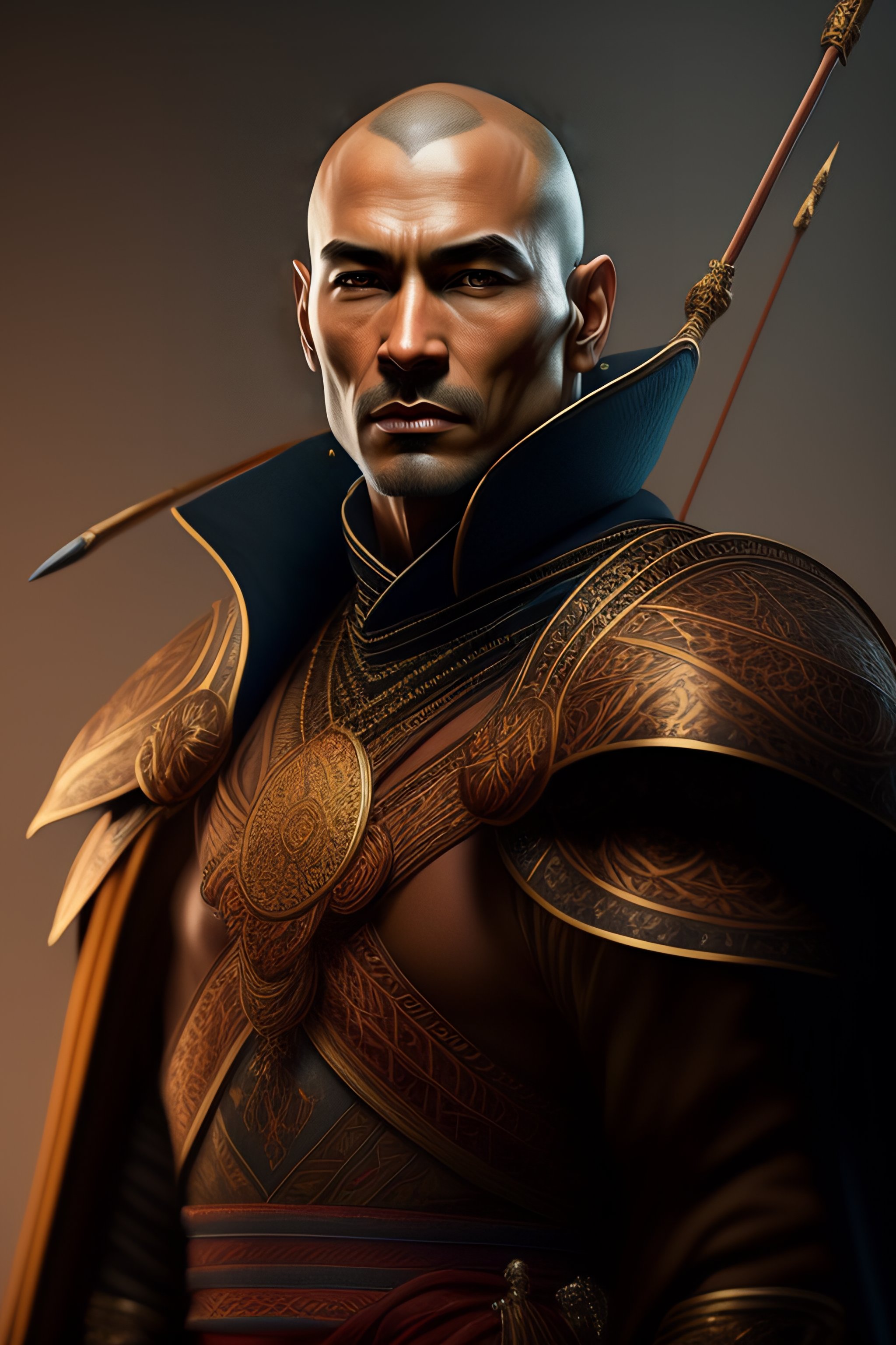 A caucassian archer 45 years old, shaved head, intricate, elegant, dramatic lighting, highly detailed, lifelike, photorealistic, digital painting, artstation, illustration, concept art, smooth, sharp focus, art by keith parkinson