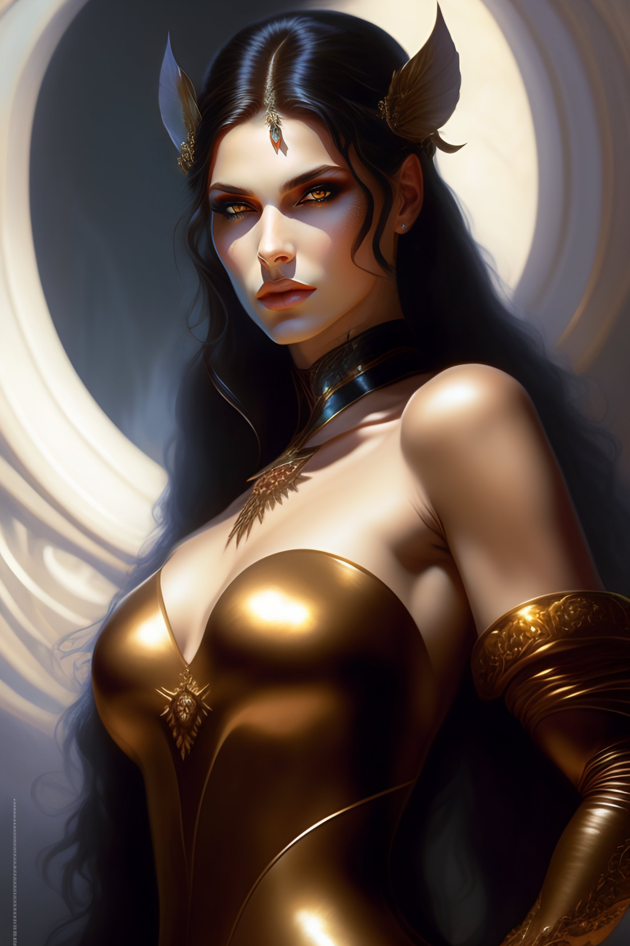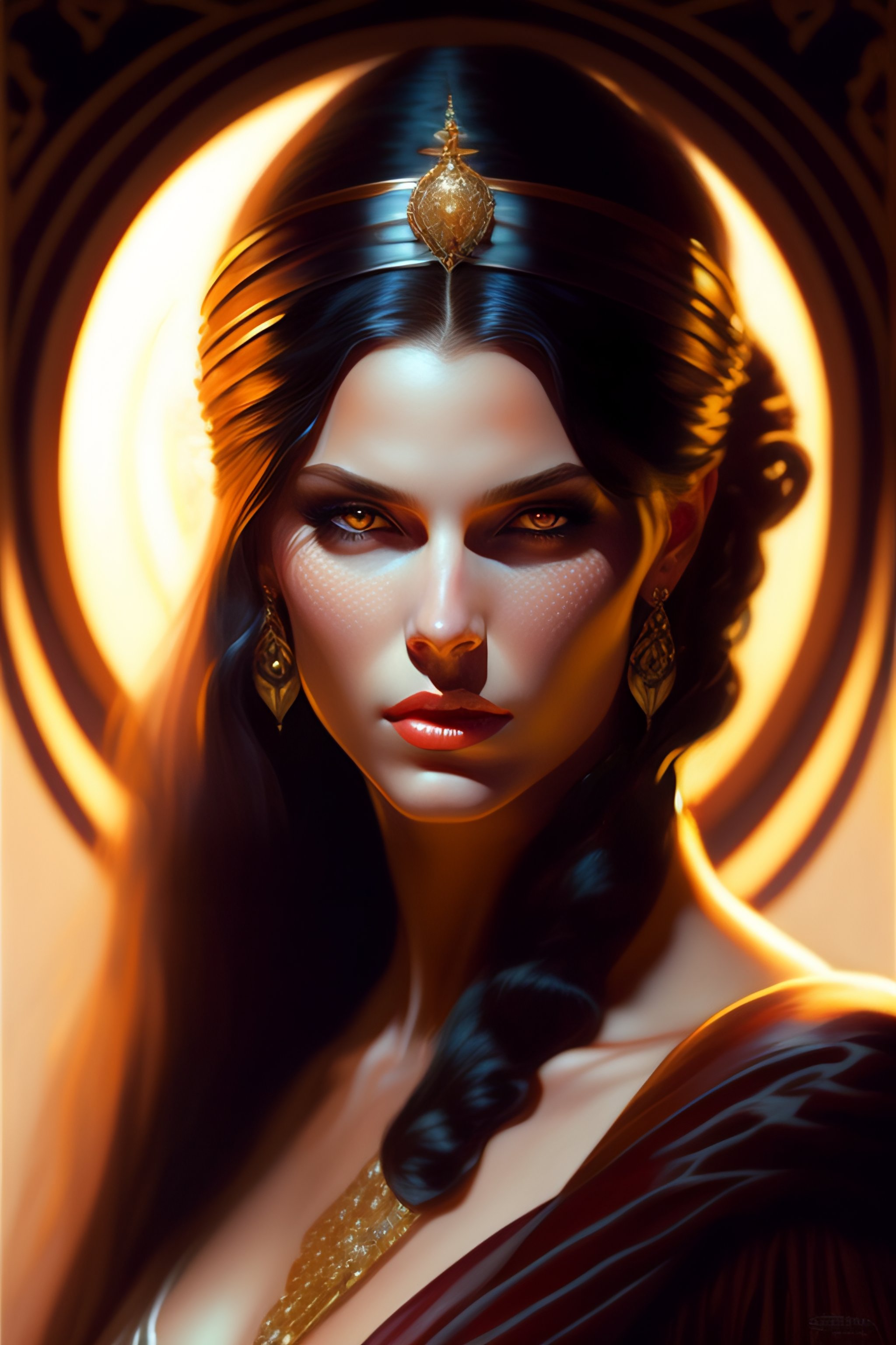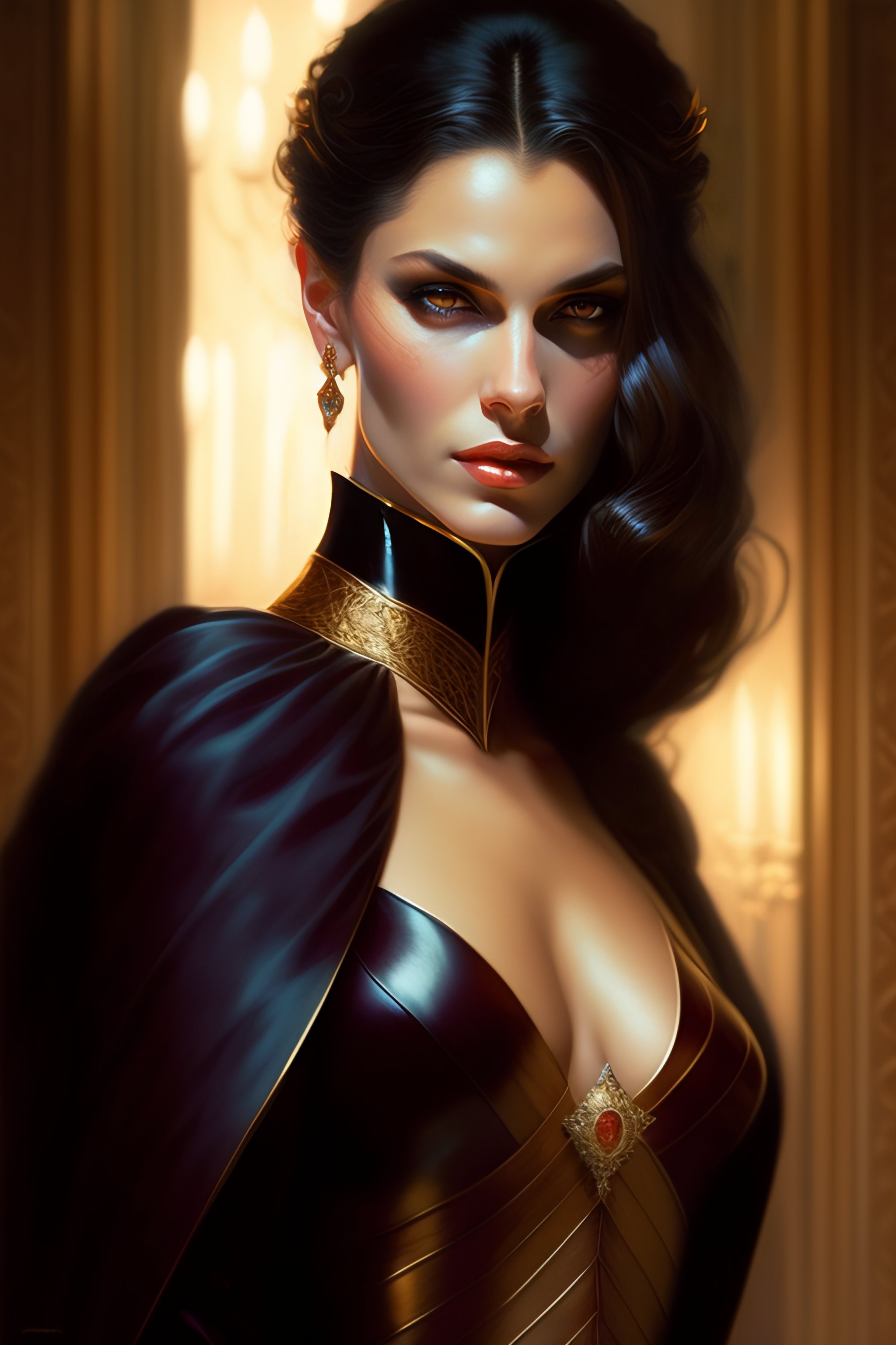 A queen vampire, dark, piercing eyes, gentle expression, elegant clothing, photorealistic, highly detailed, artstation, smooth, sharp focus, art by michael whelan, artgerm, greg rutkowski and alphonse mucha