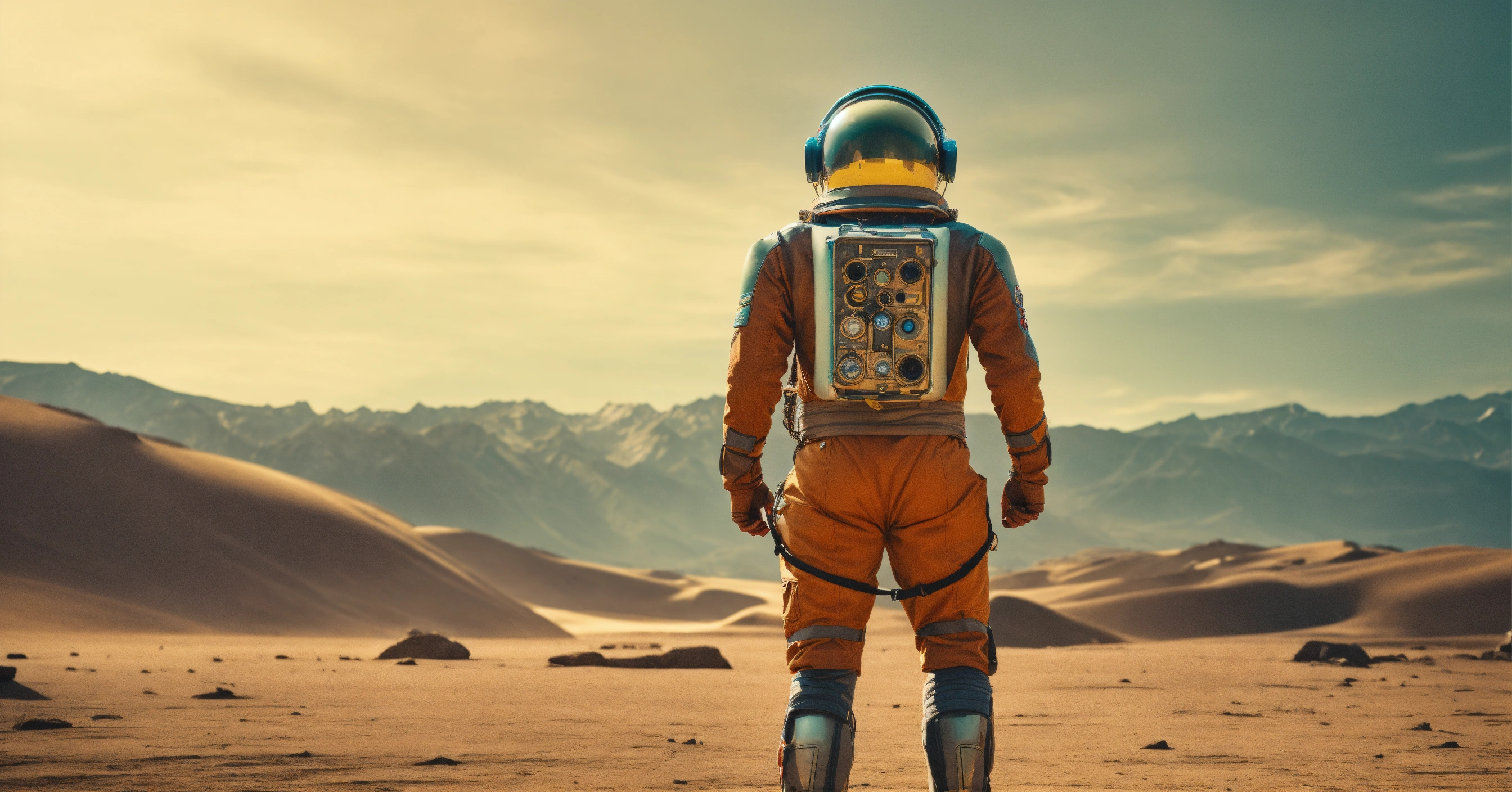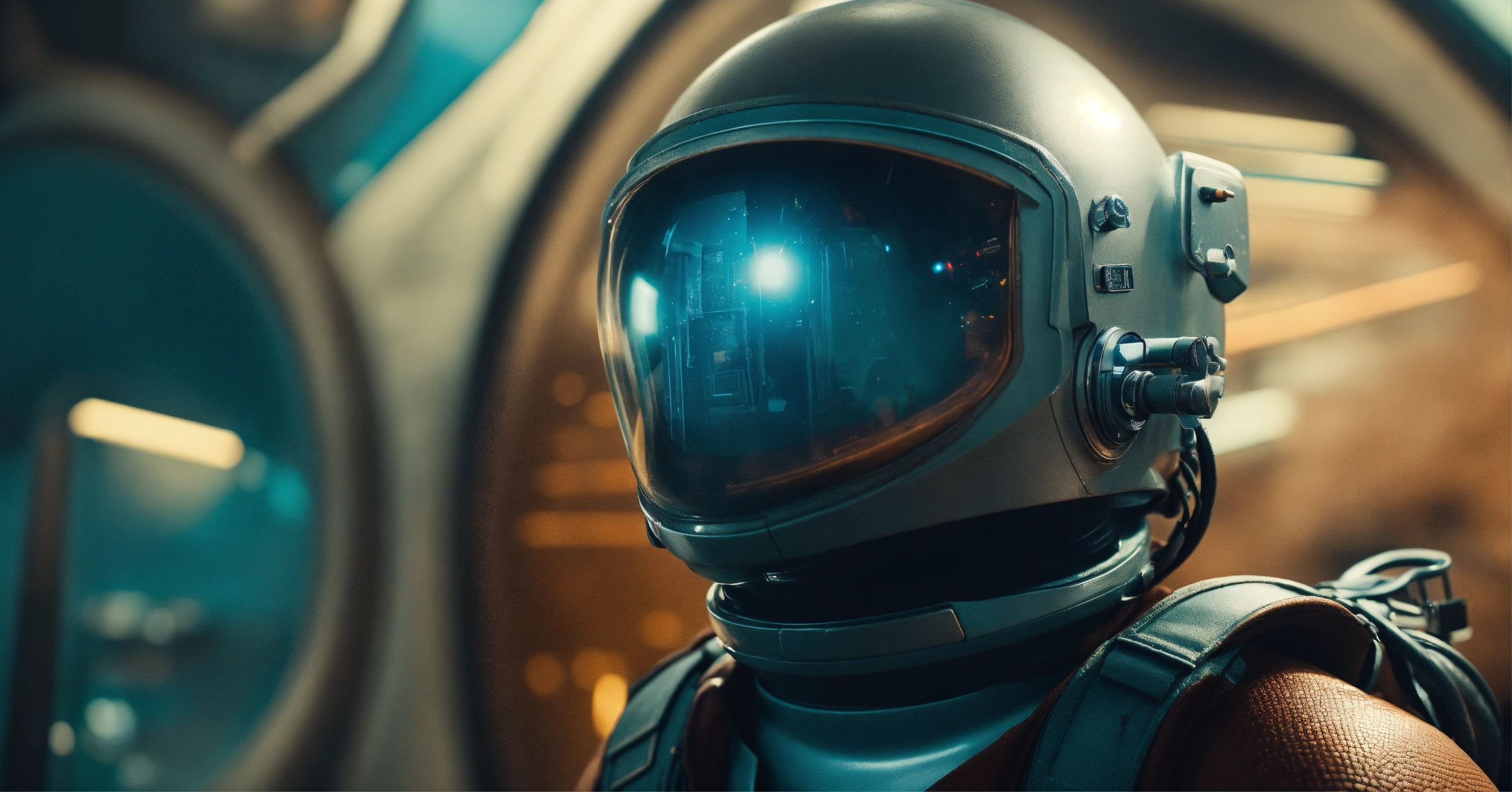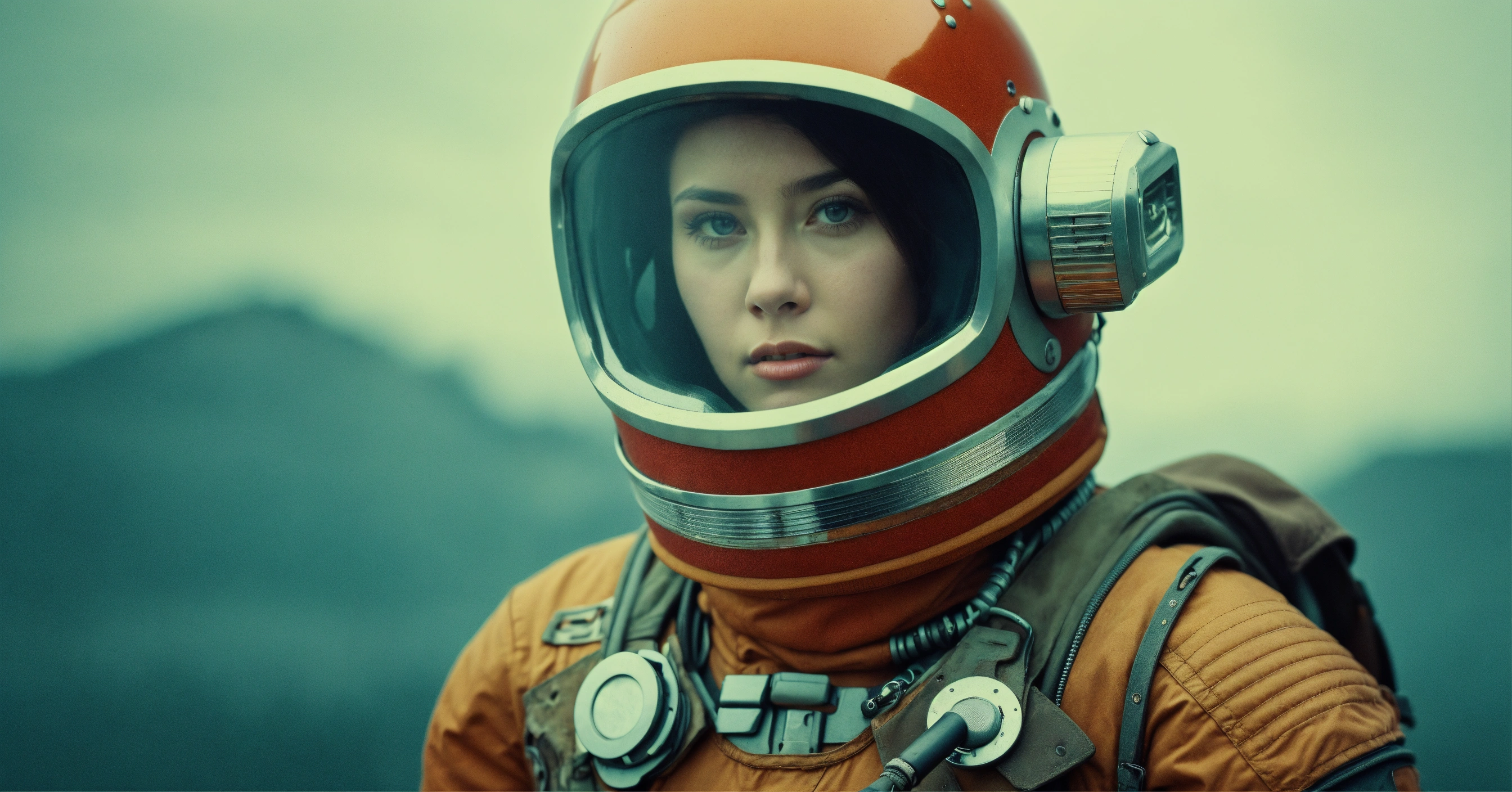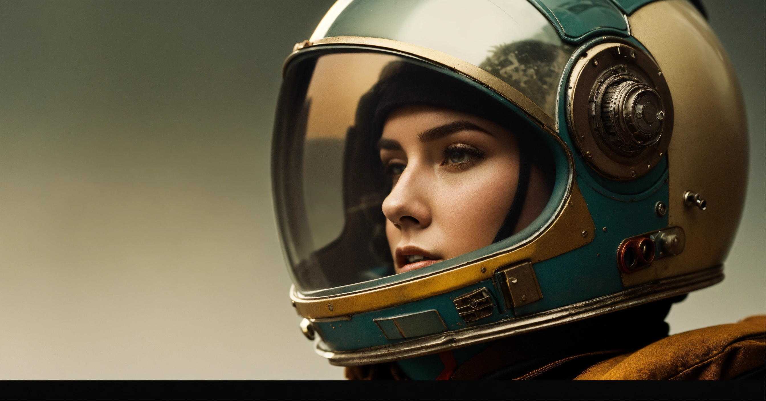 High-resolution photograph of retro futuristic explorer against a minimalist background, focusing on detail and texture.