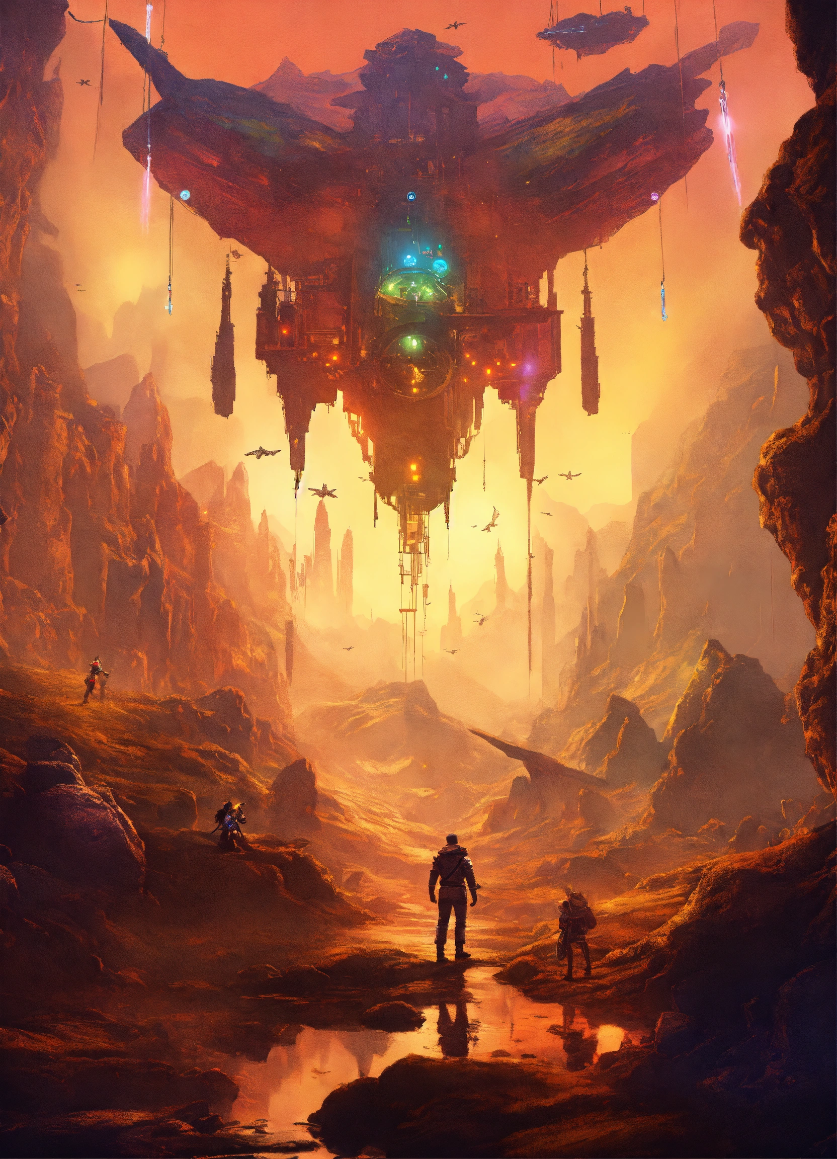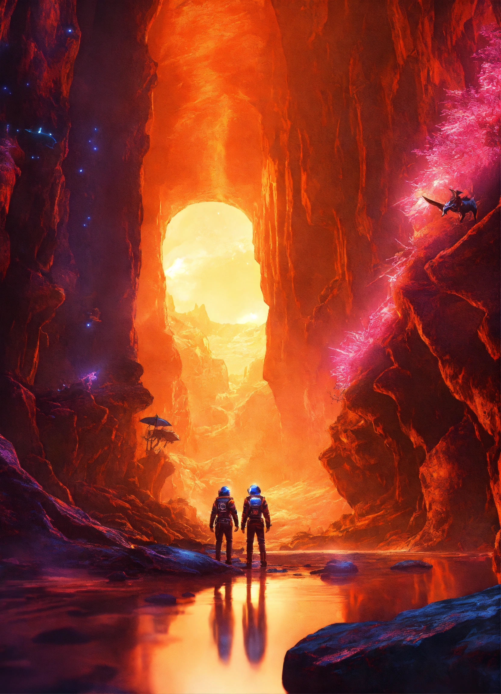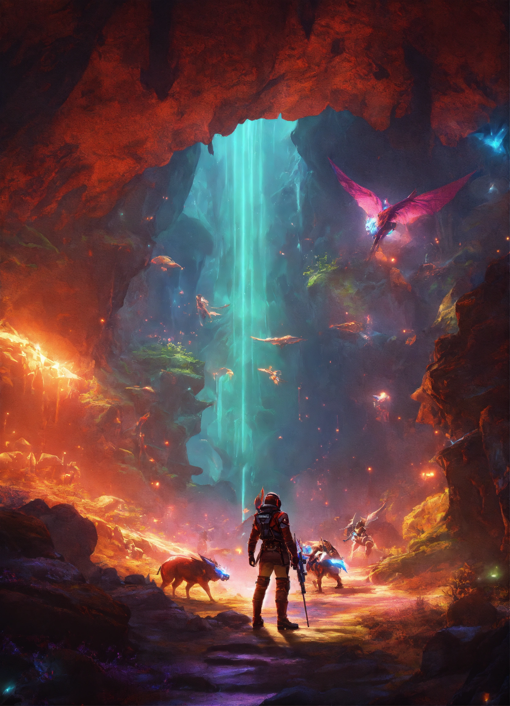 Space opera revolution in a subterranean cavern with magical creatures in the virtual landscape