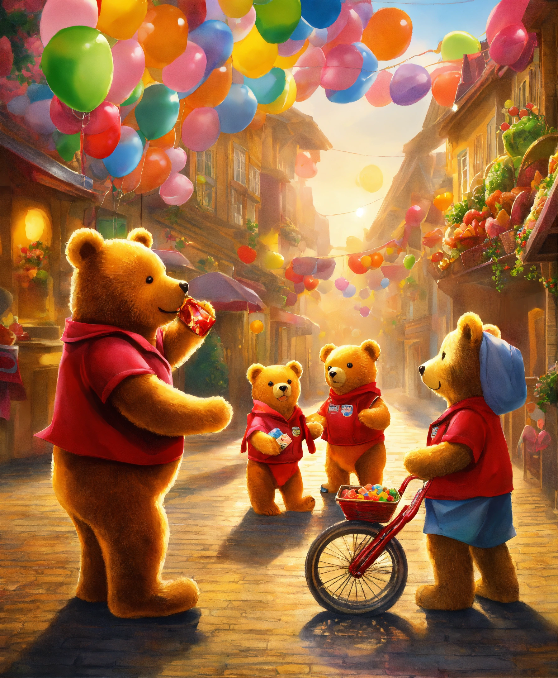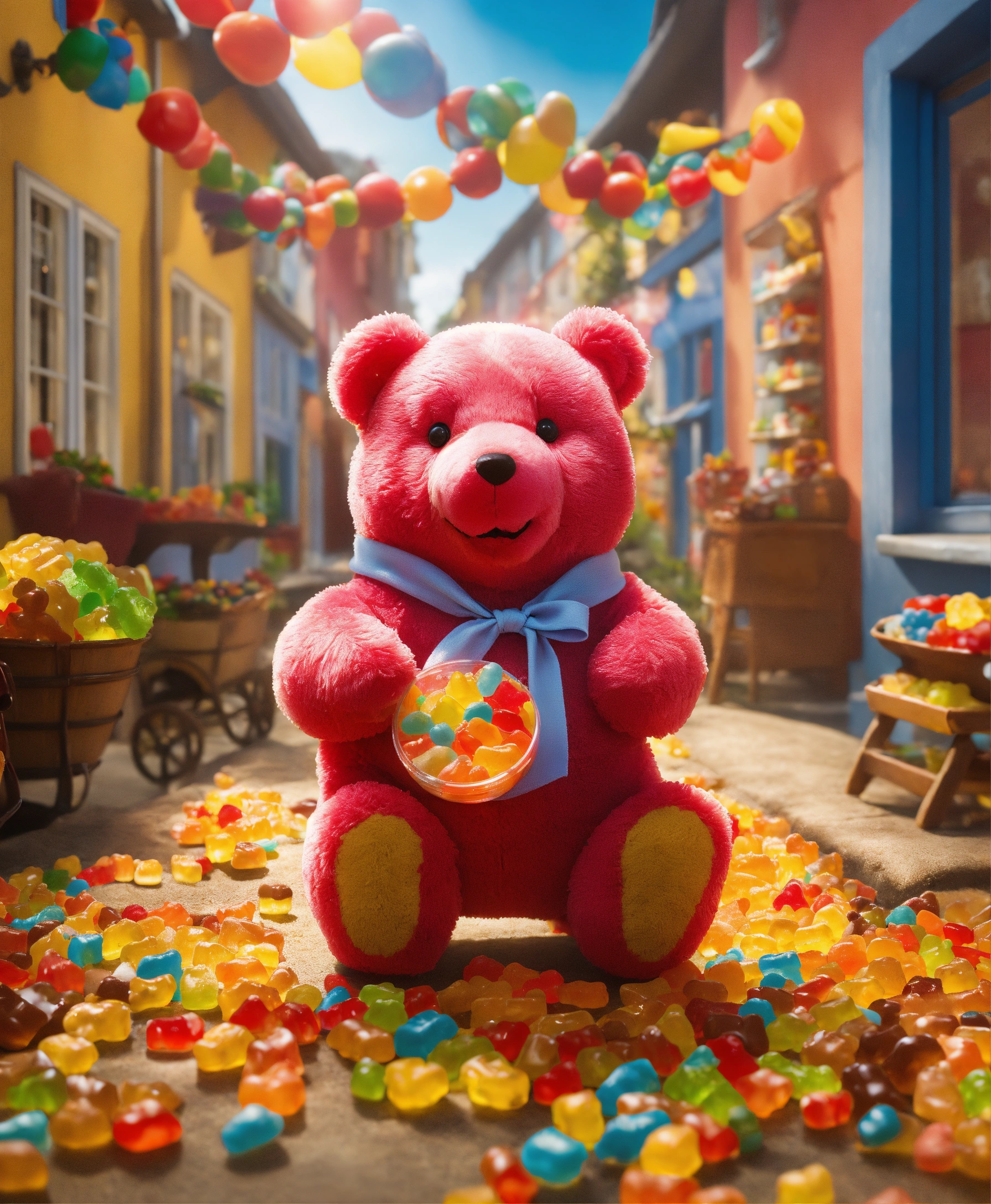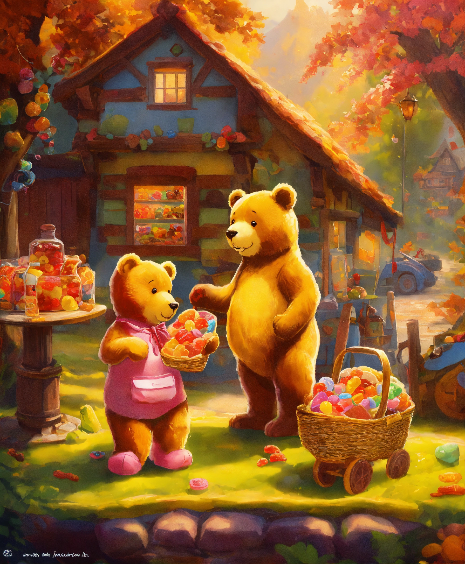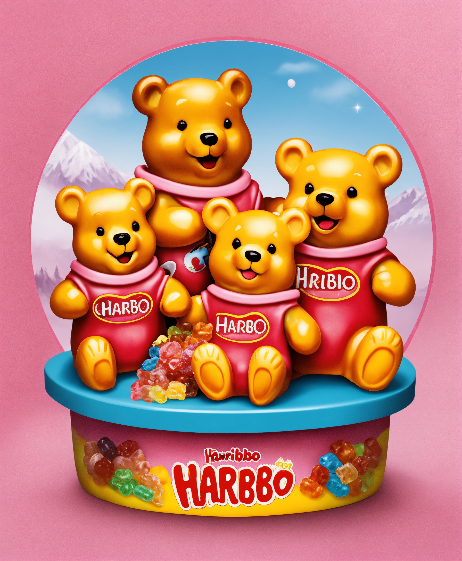 There is a cheerful atmosphere and comfort on the planet haribo. it is painted in warm shades such as pink, orange and yellow to create a feeling of warmth and joy. the inhabitants of the planet haribo are haribo bears, which are very similar to people. they dress, communicate, work and spend time just like people. haribo bear mothers carefully take care of their cubs, pushing them in comfortable strollers around the small bear town. the inhabitants of the planet haribo enjoy varied and delicious food, just like people. they can feed on a variety of haribo sweets such as gummy bears or fruit rings. the painting can show haribo bears enjoying these delicacies on the holiday table, as well as other objects associated with haribo sweets, such as chocolates or caramels. on planet haribo, every day is filled with warmth, joy and smiles. haribo bears live in harmony and happily share their sweet joys with other inhabitants of the planet.