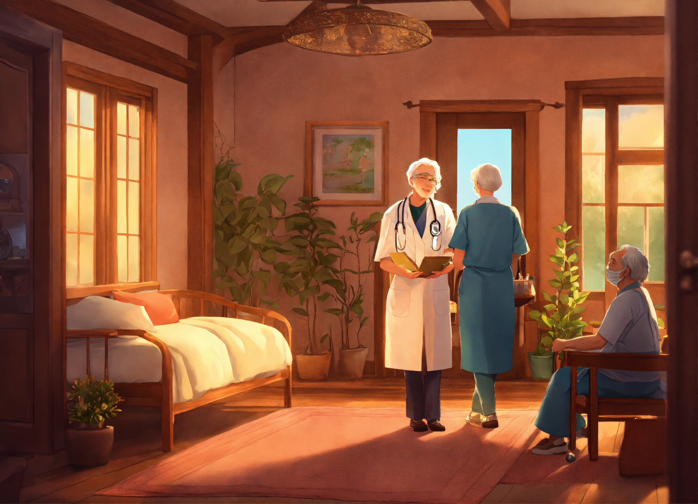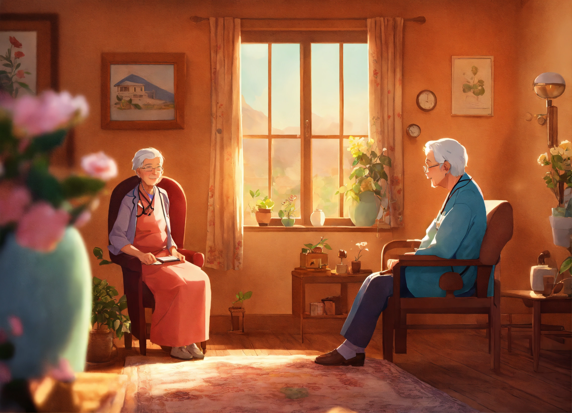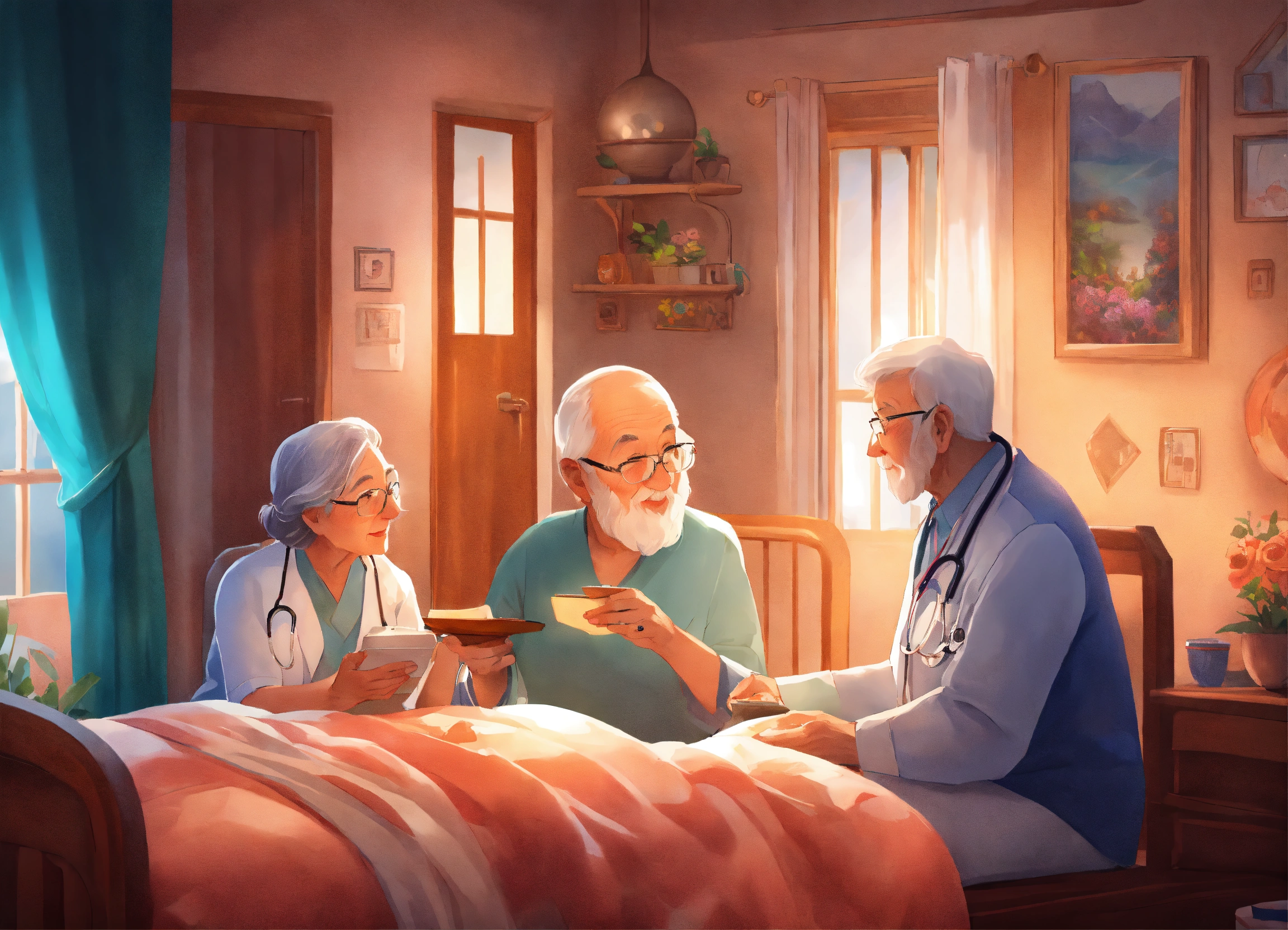 Delve into an enchanting animated image that portrays the fulfillment of seniors' long-awaited dreams. behold as they receive access to high-quality medical care with doctor home visit, all within the serene and familiar confines of their beloved home.