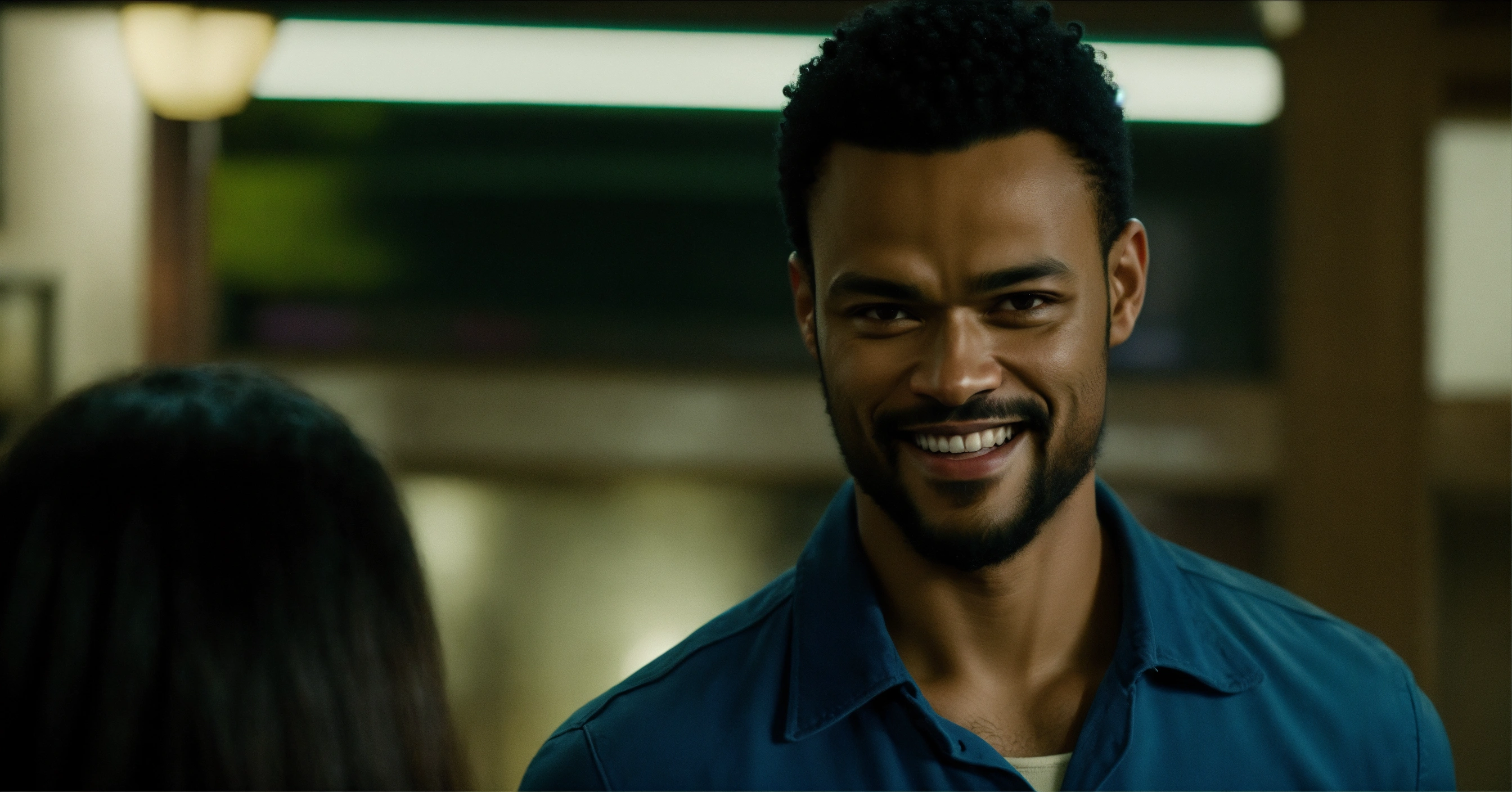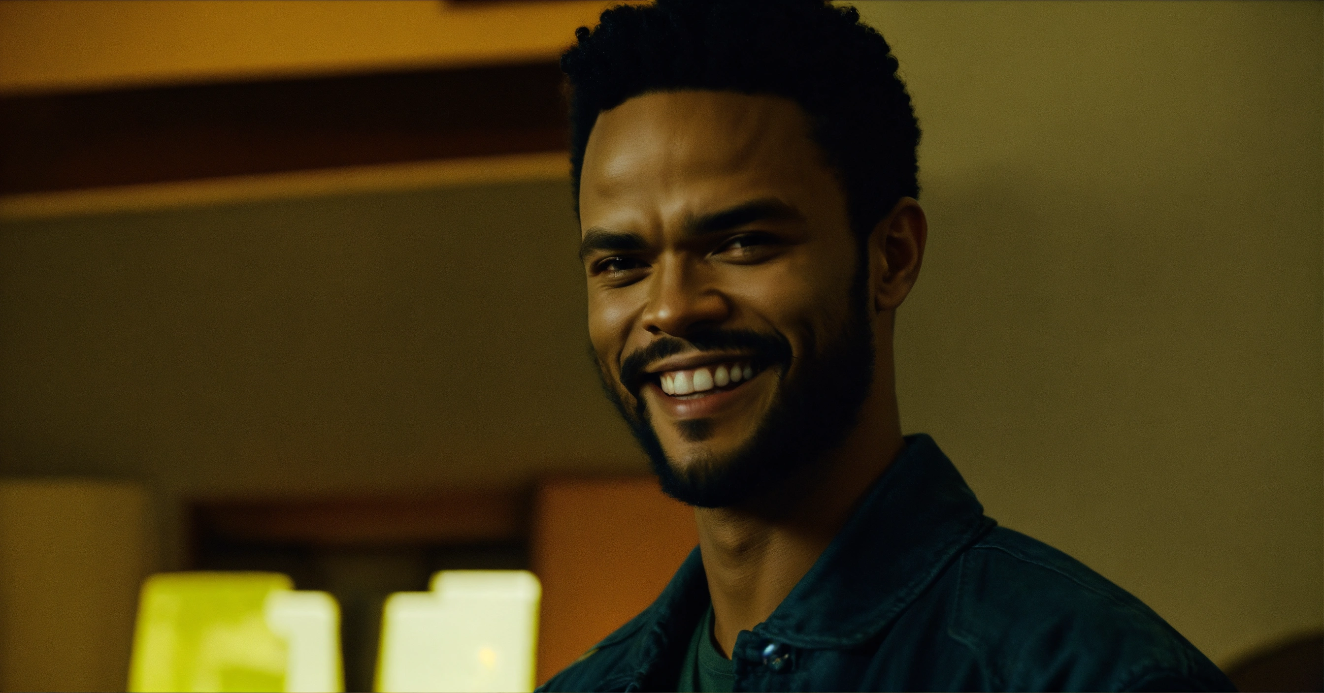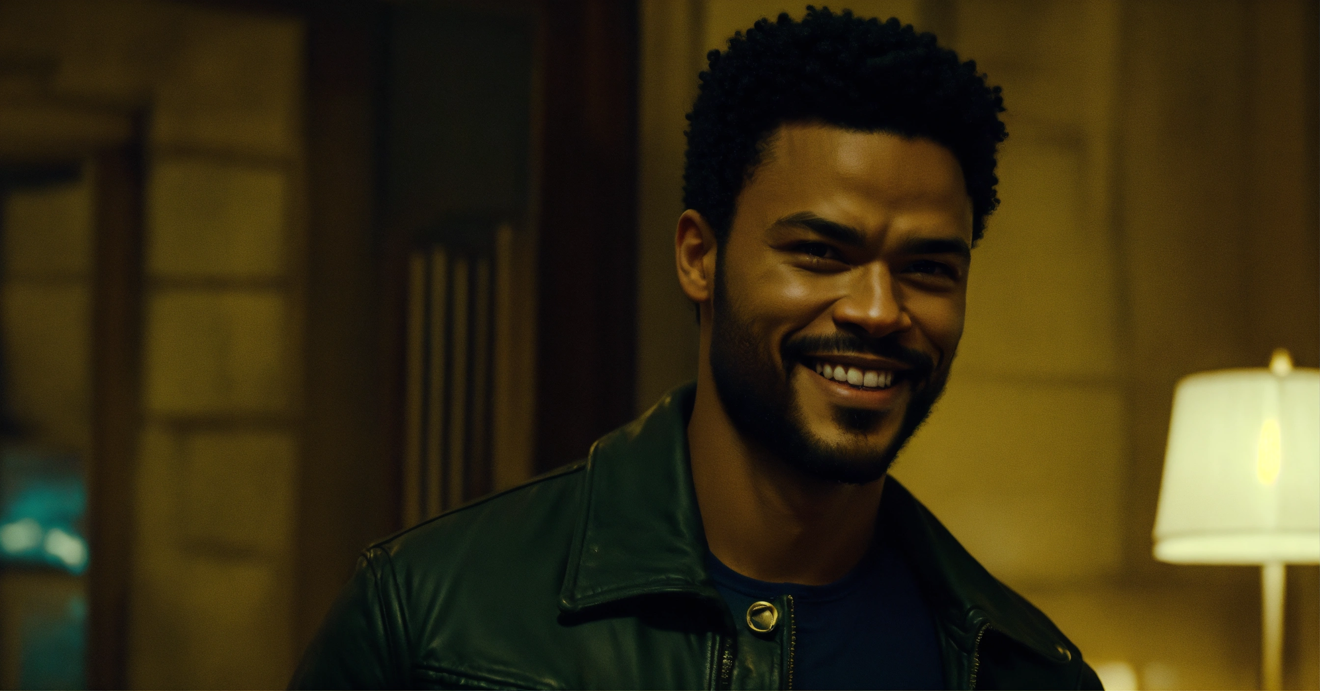 Handsome nice eka darville, apocalypse, dark, cinematic, jessica jones style, short hair, short temples, smile