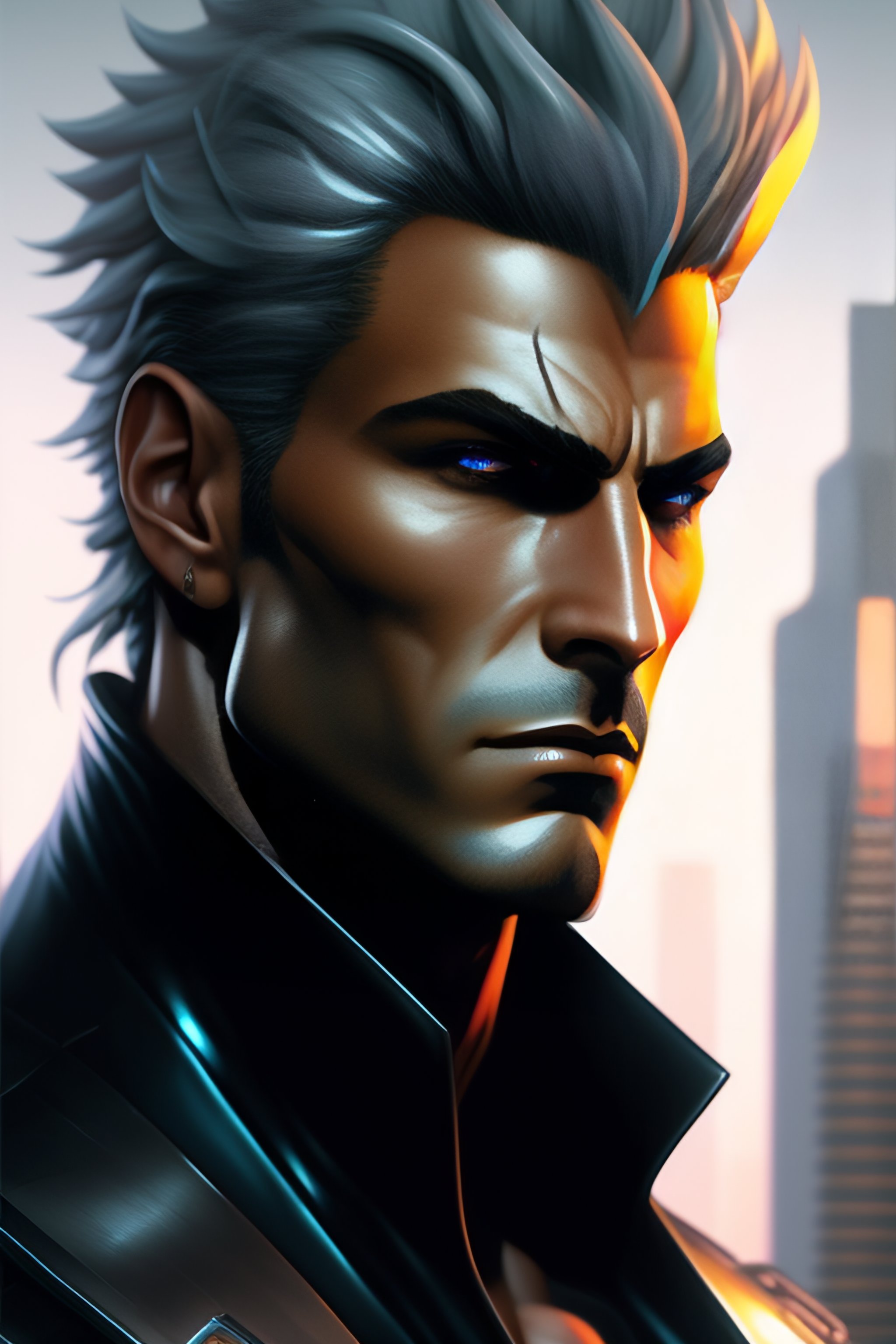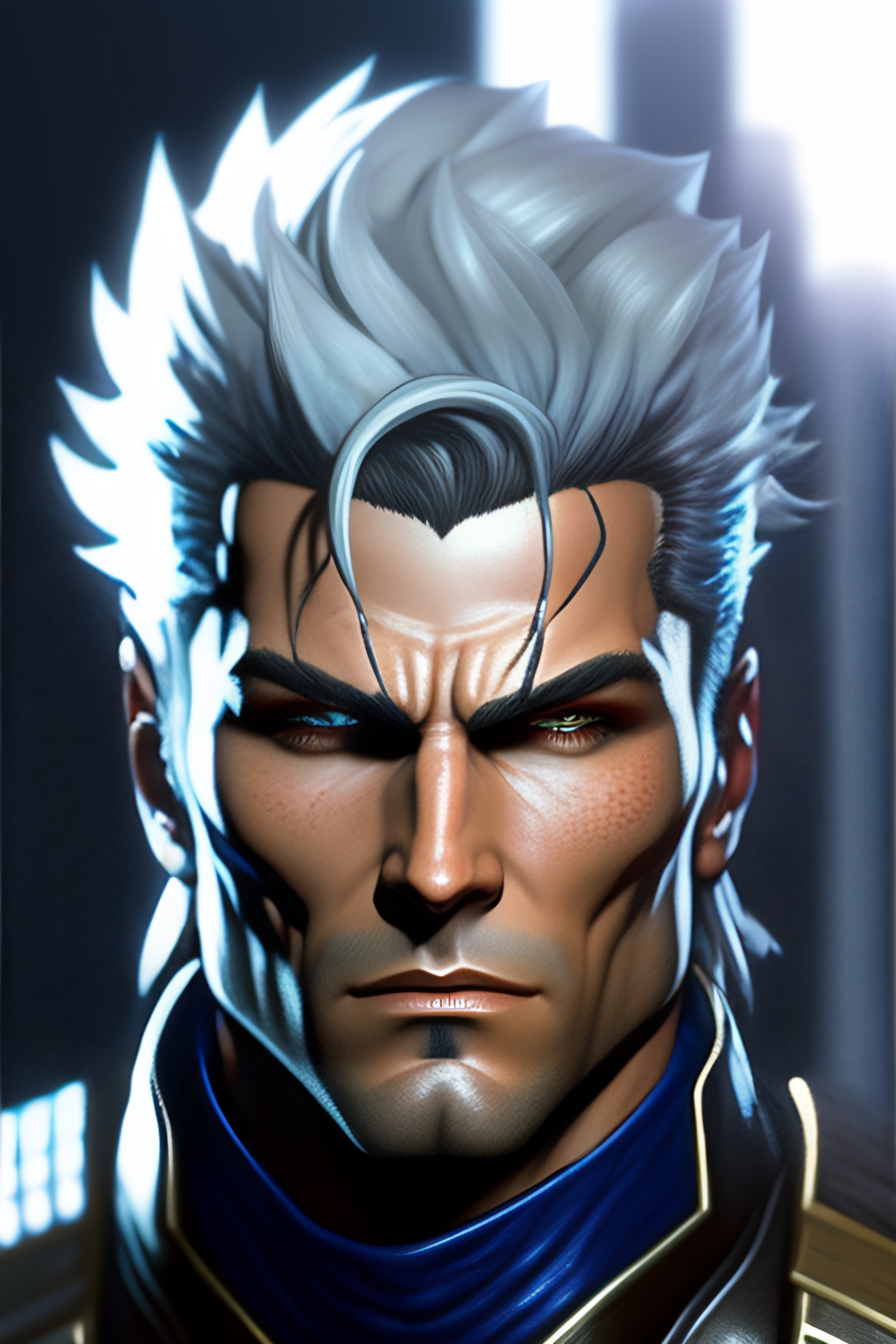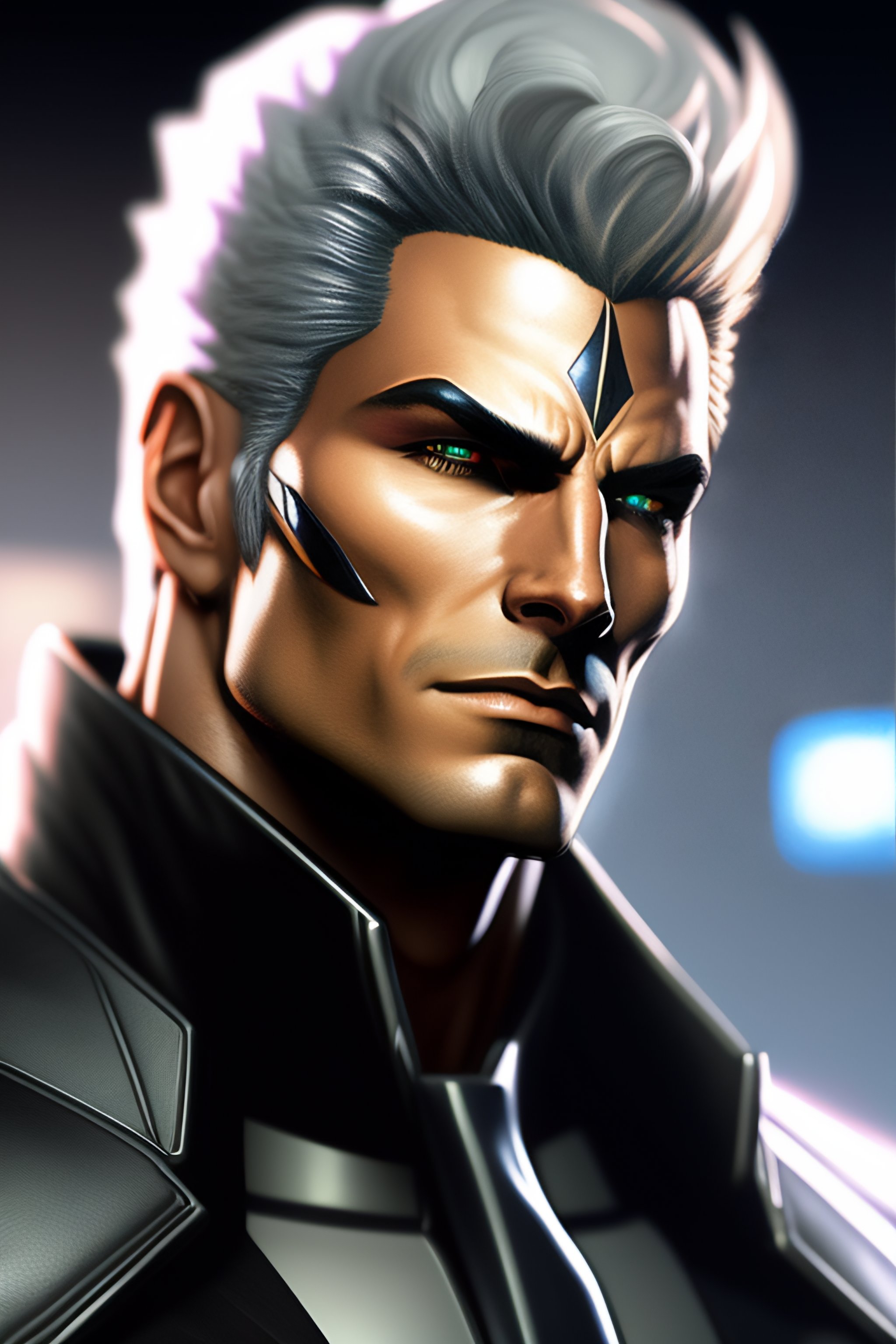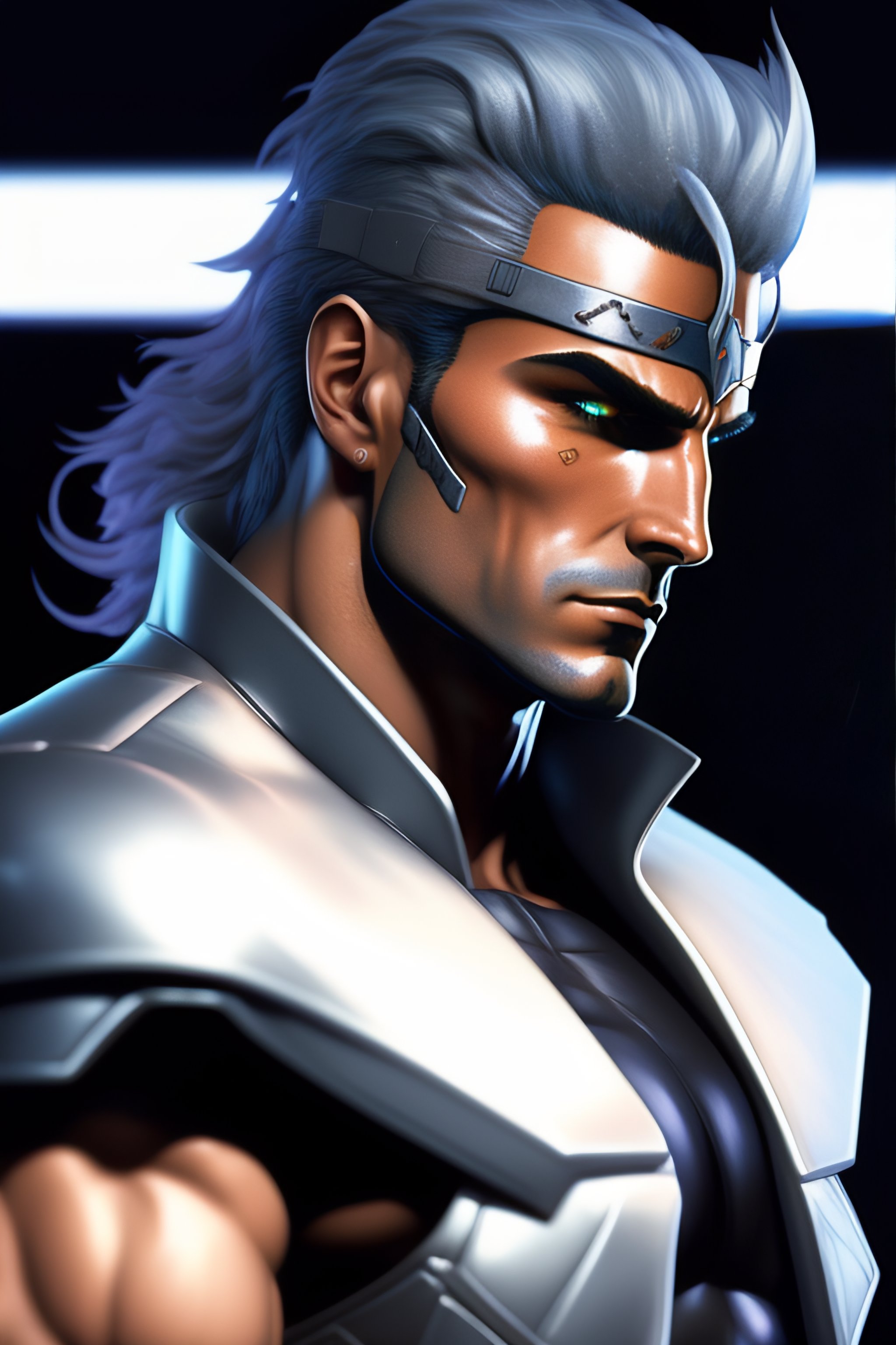 Solid snake from metal gear, cyber cowboy, close up, concept art, highly detailed, sci - fi poster, in the style of alex ross, silver hair