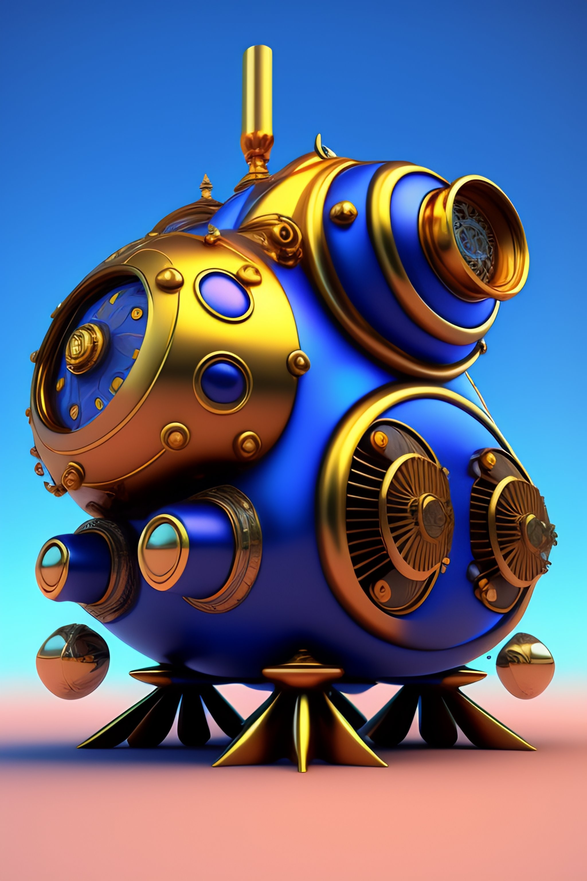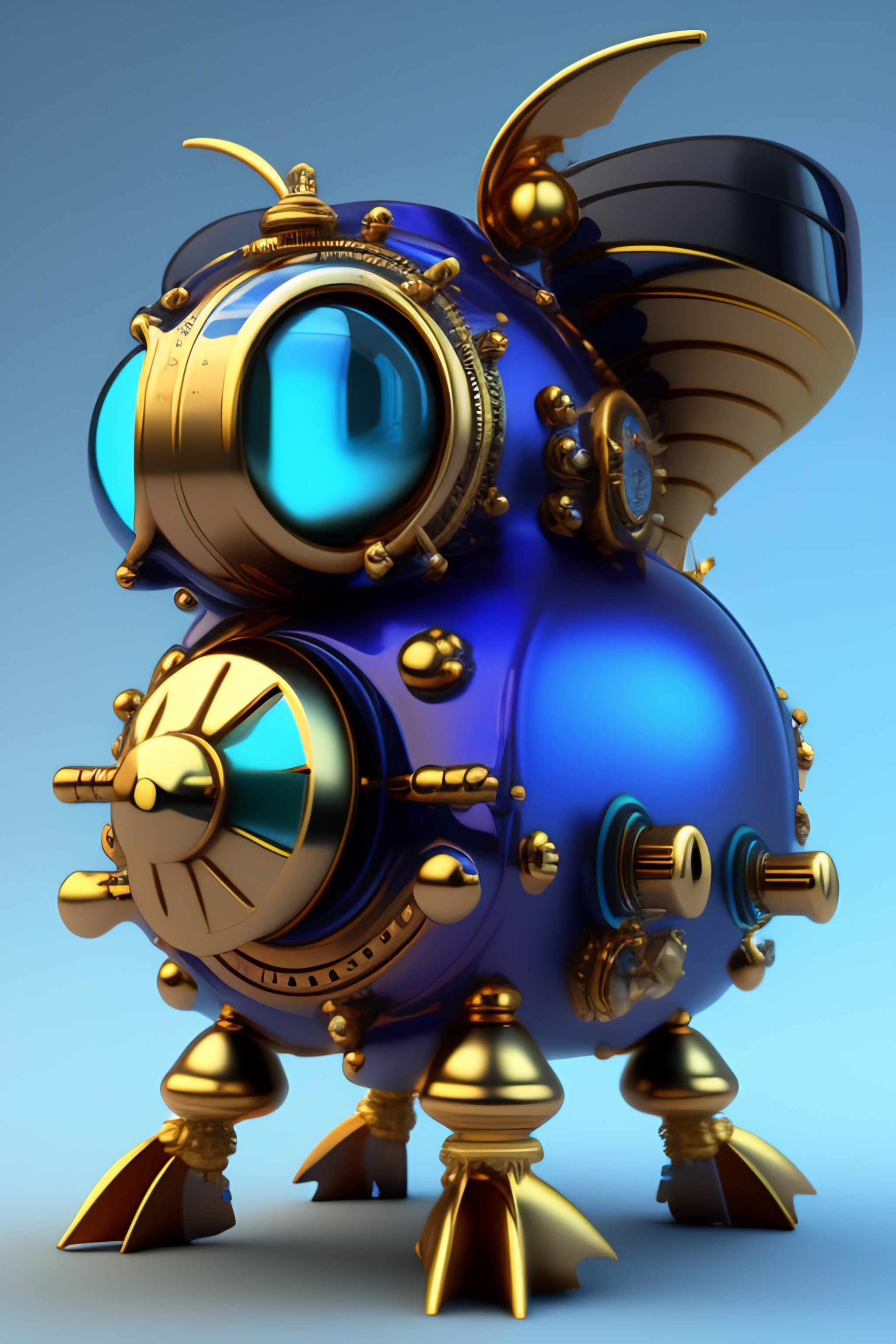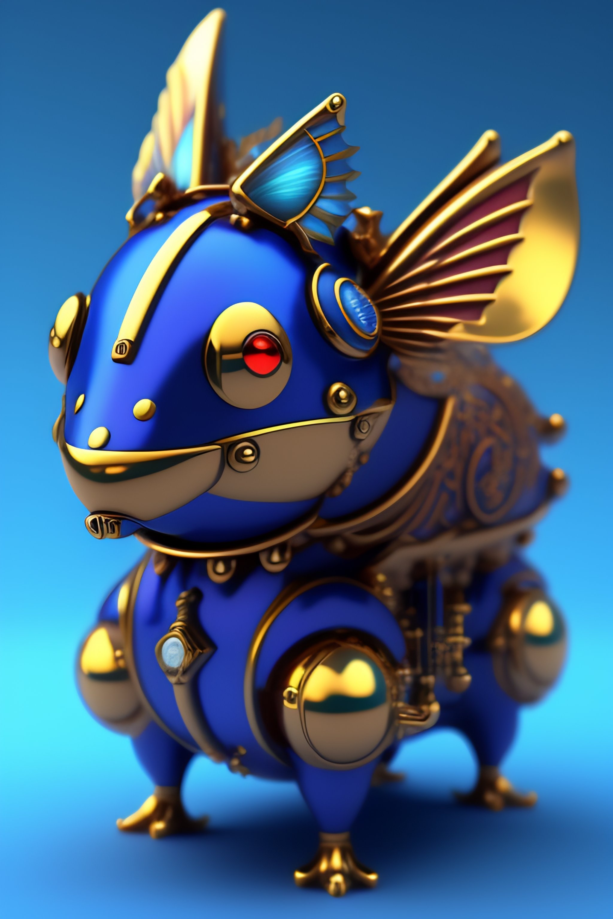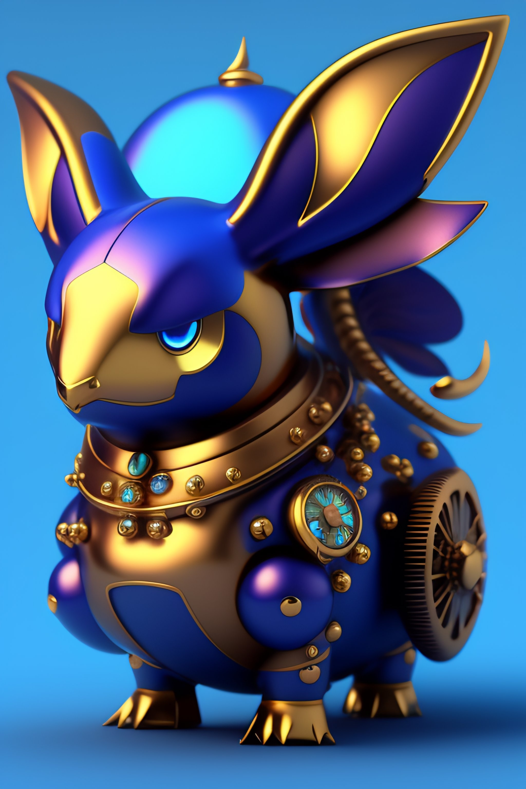 Steampunk mechanical pokemon 3d render digital art on a mystical blue background
