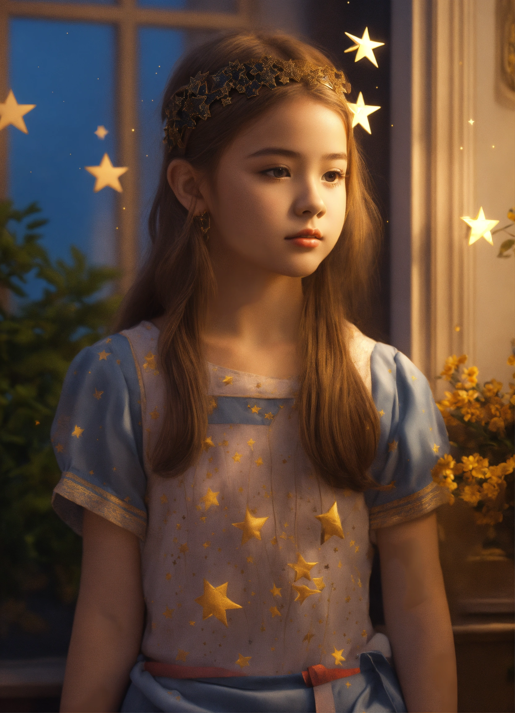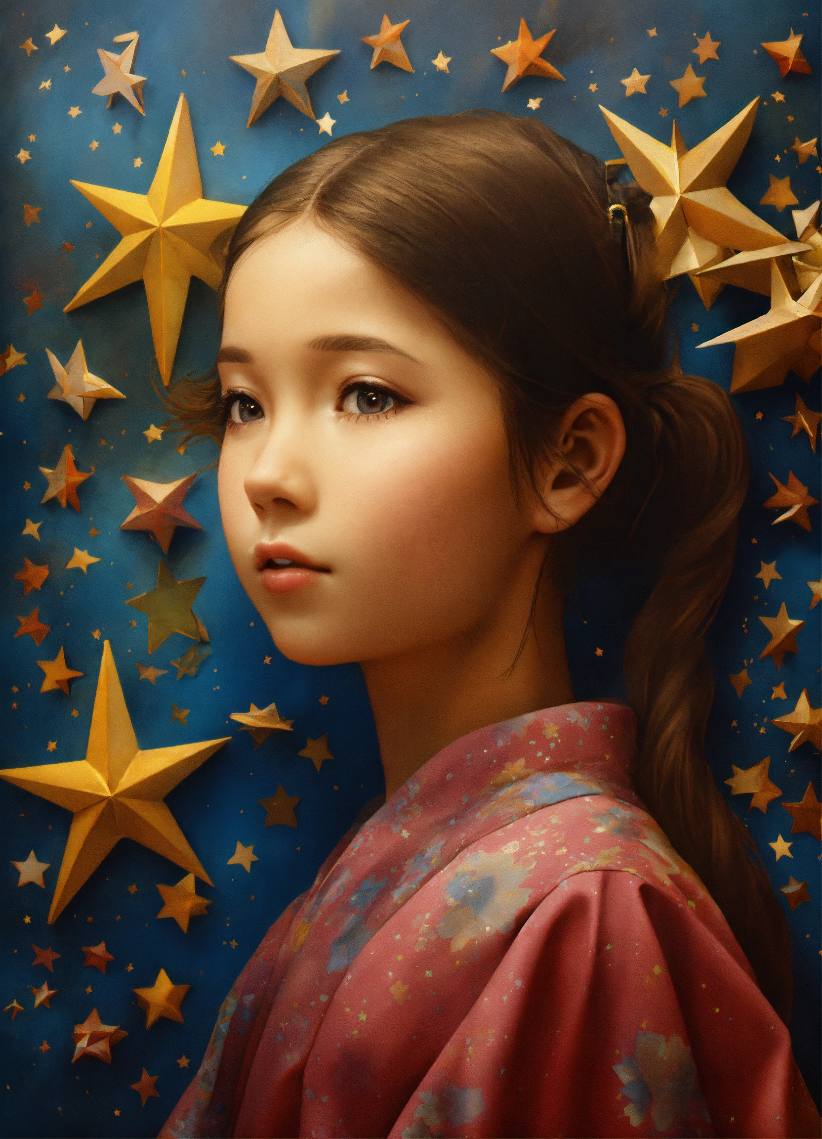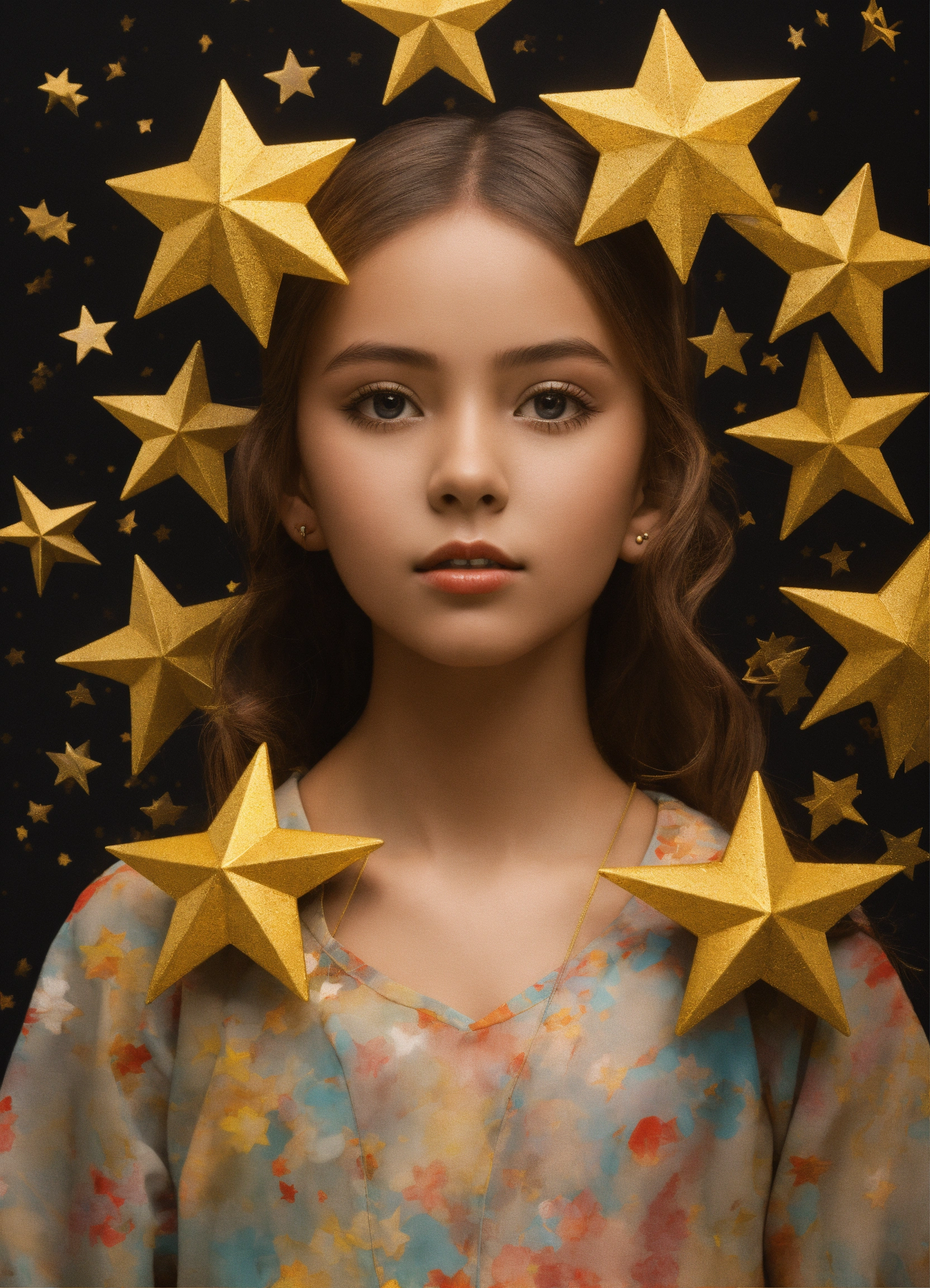 Young girl with two stars 3d art