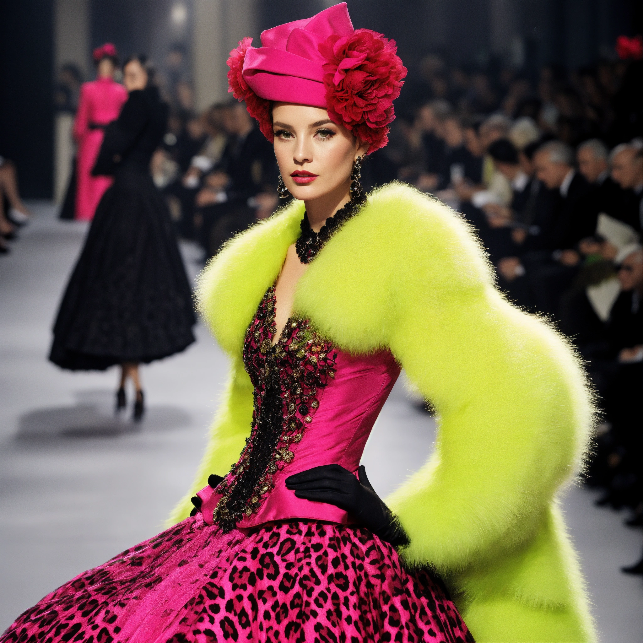 Christian dior, galliano john, haute couture fall 2009, basques, girdles, lace-edged slips, petticoats, black pearl, black gloves, touch of leoperd, curly hair chignon, tule vail, high heels, parisian salon, boutique, montaigne avenue, bright space well lit suit, bar suit, le new look, white walls, fluorescent green fur, leopard, edith bouvier beale