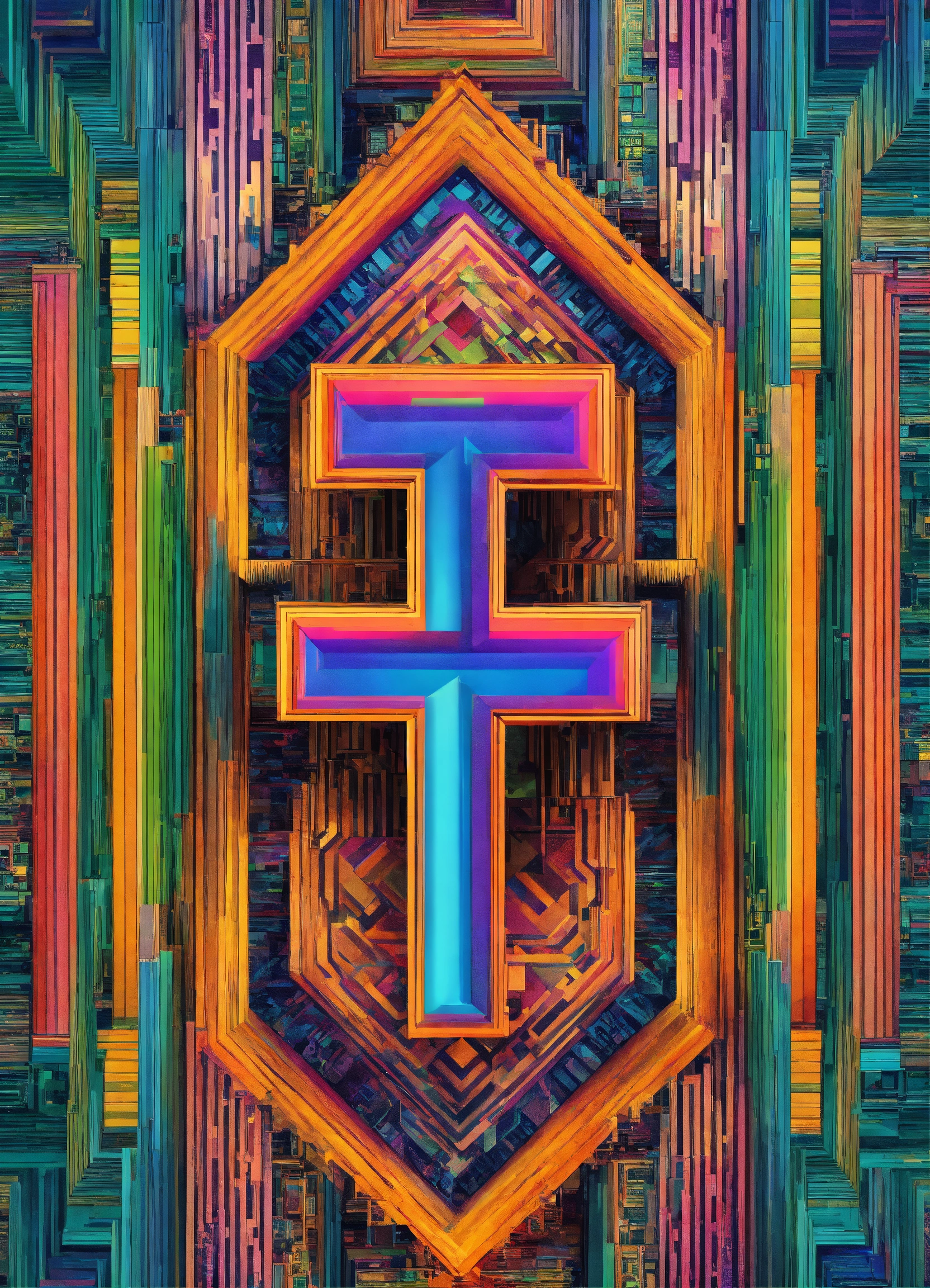 Graphic typography of the letter "f" made of symmetrical colors psychedelic, optical illusion, symmetrical skin, glitch art, highly detailed typeface, award winning photo