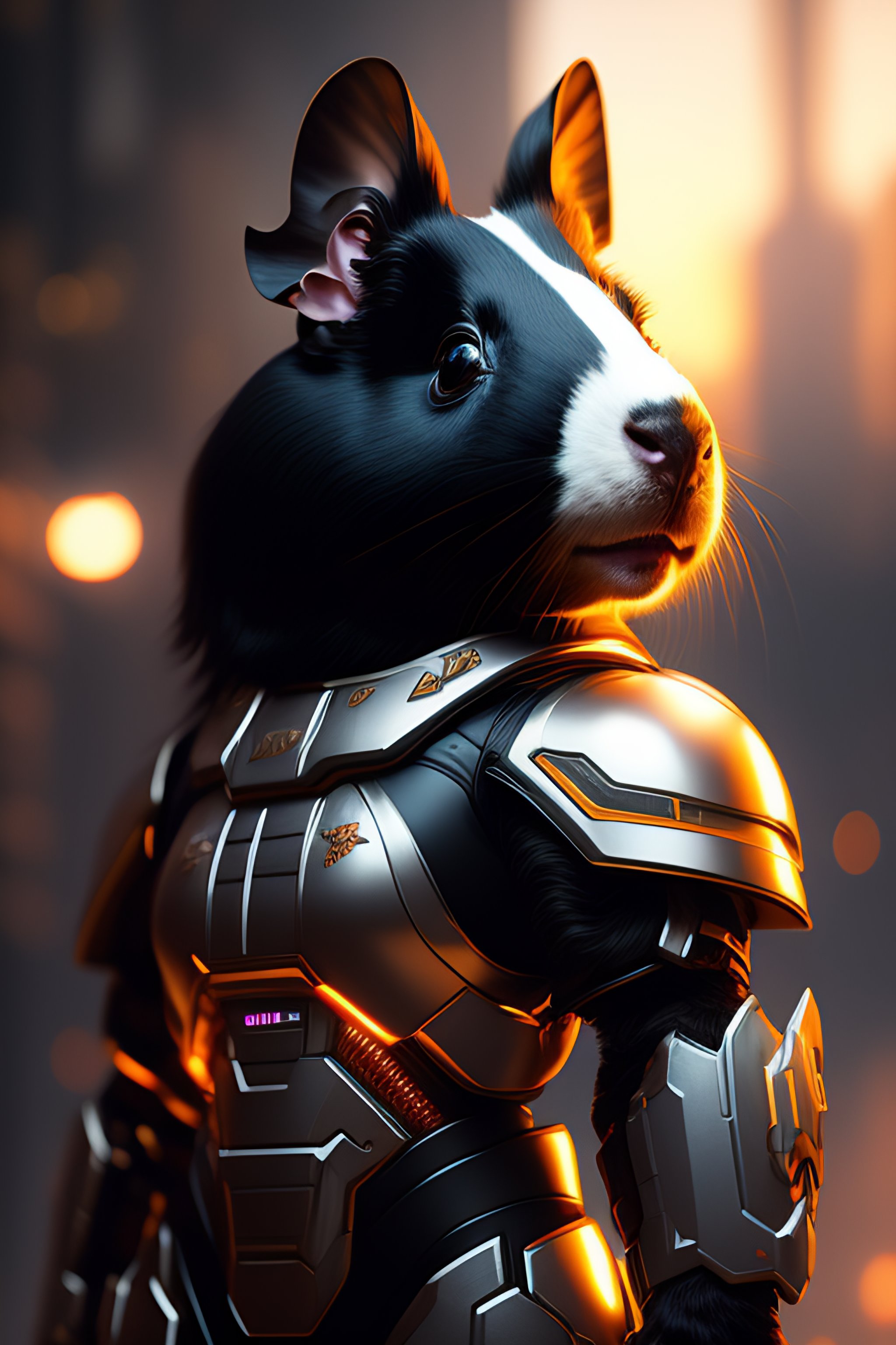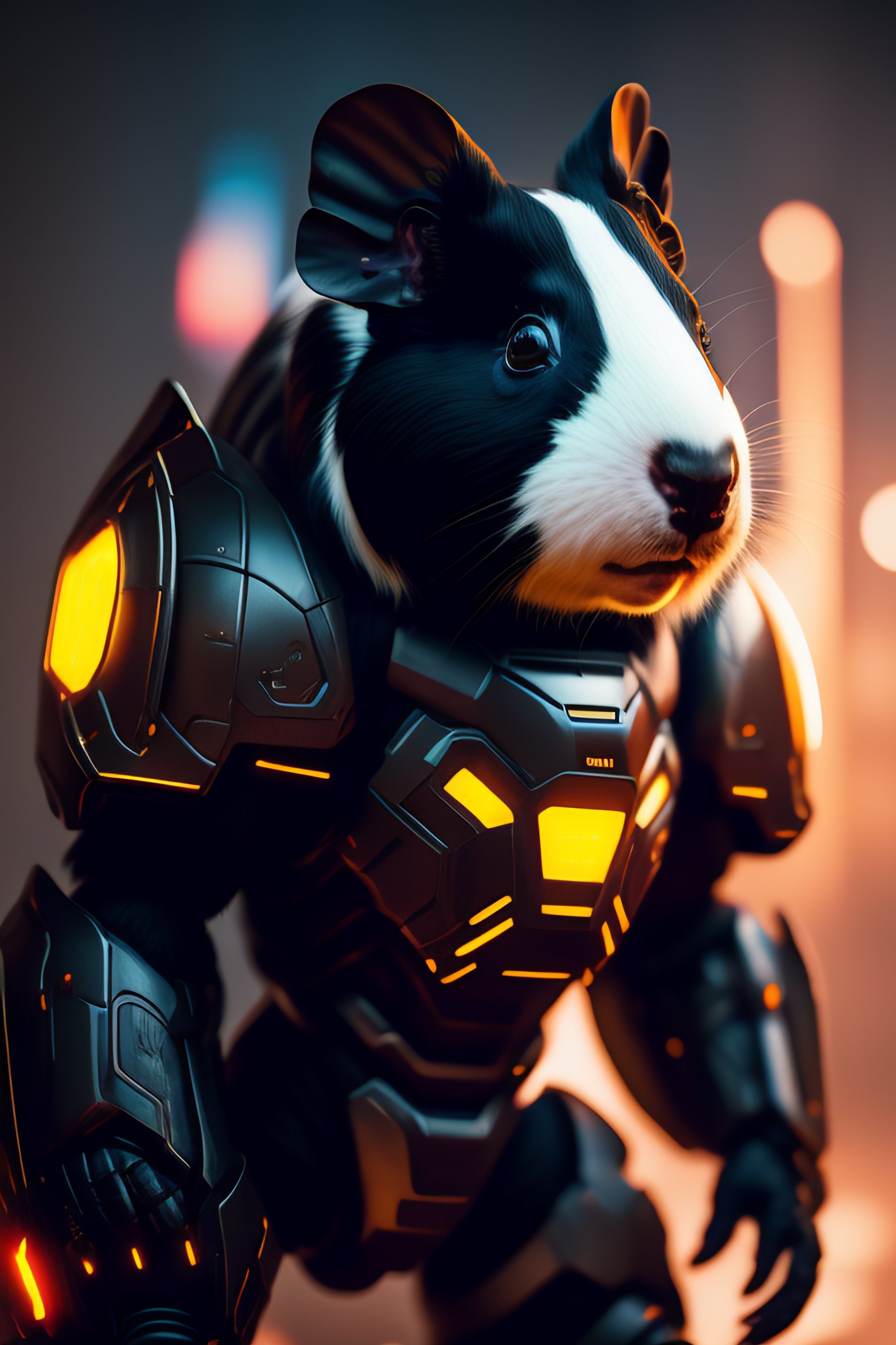 A black white guinea pig as the doomslayer, realistic scifi cyberpunk power armor robot, detailed, centered, digital painting, artstation, concept art, donato giancola, joseph christian leyendecker, wlop, boris vallejo, breathtaking, 8k resolution, extremely detailed, beautiful, establishing shot, artistic, hyperrealistic, beautiful face, octane render, cinematic lighting, dramatic lighting, masterpiece