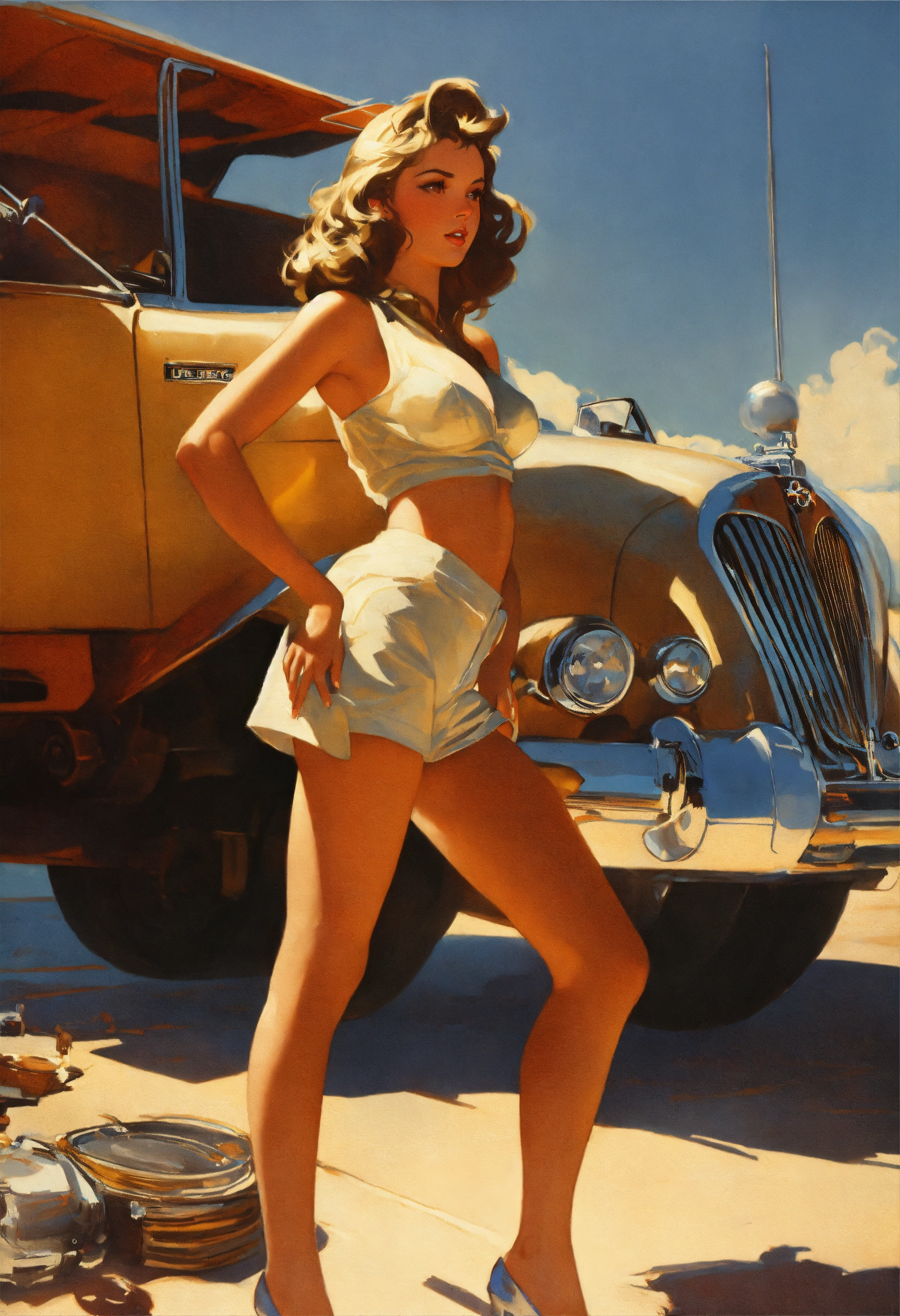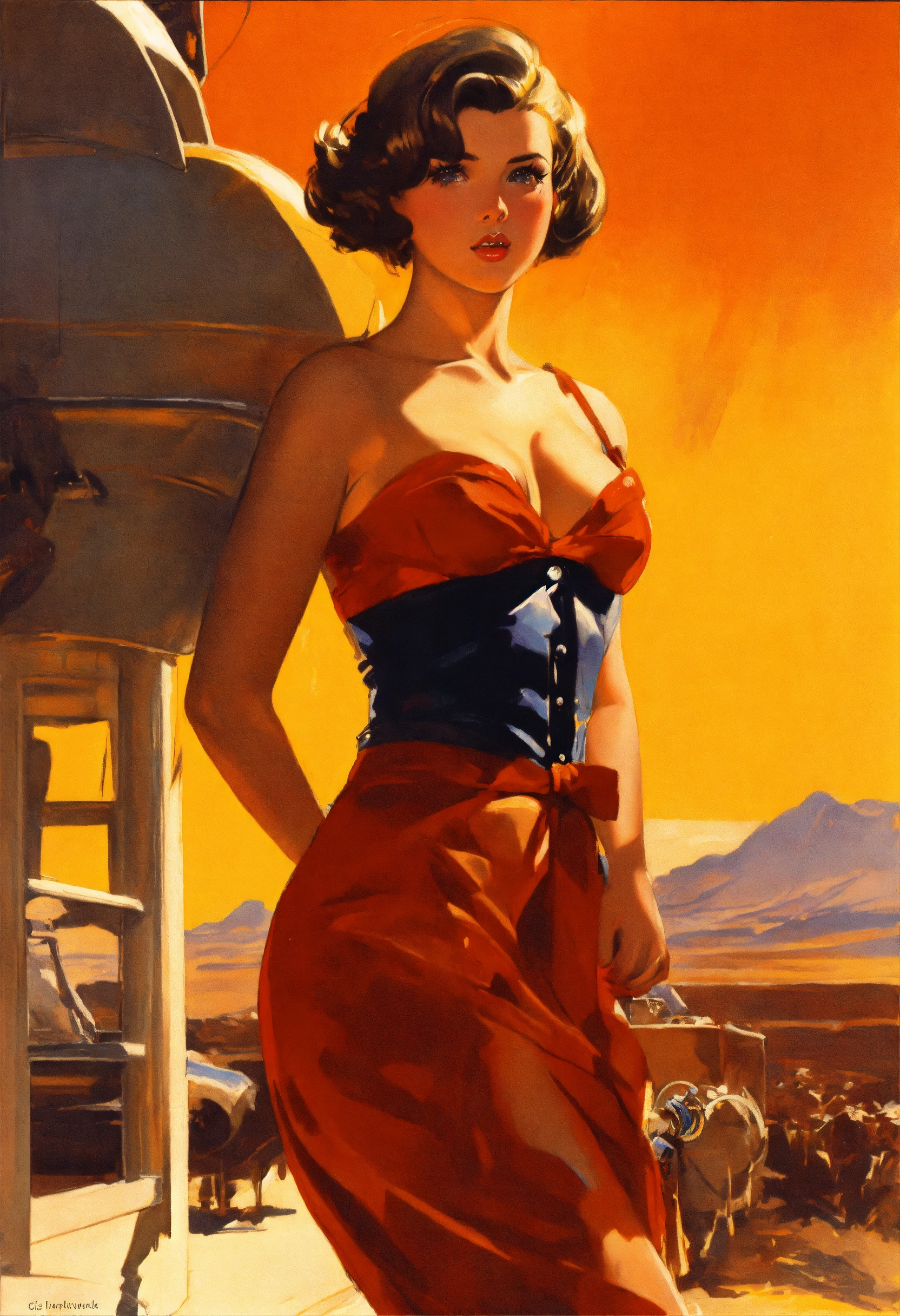 Beautiful attractive, gorgeous, emily ratjakowski, top, from the front, gil elvgren, syd mead, medium, high detail