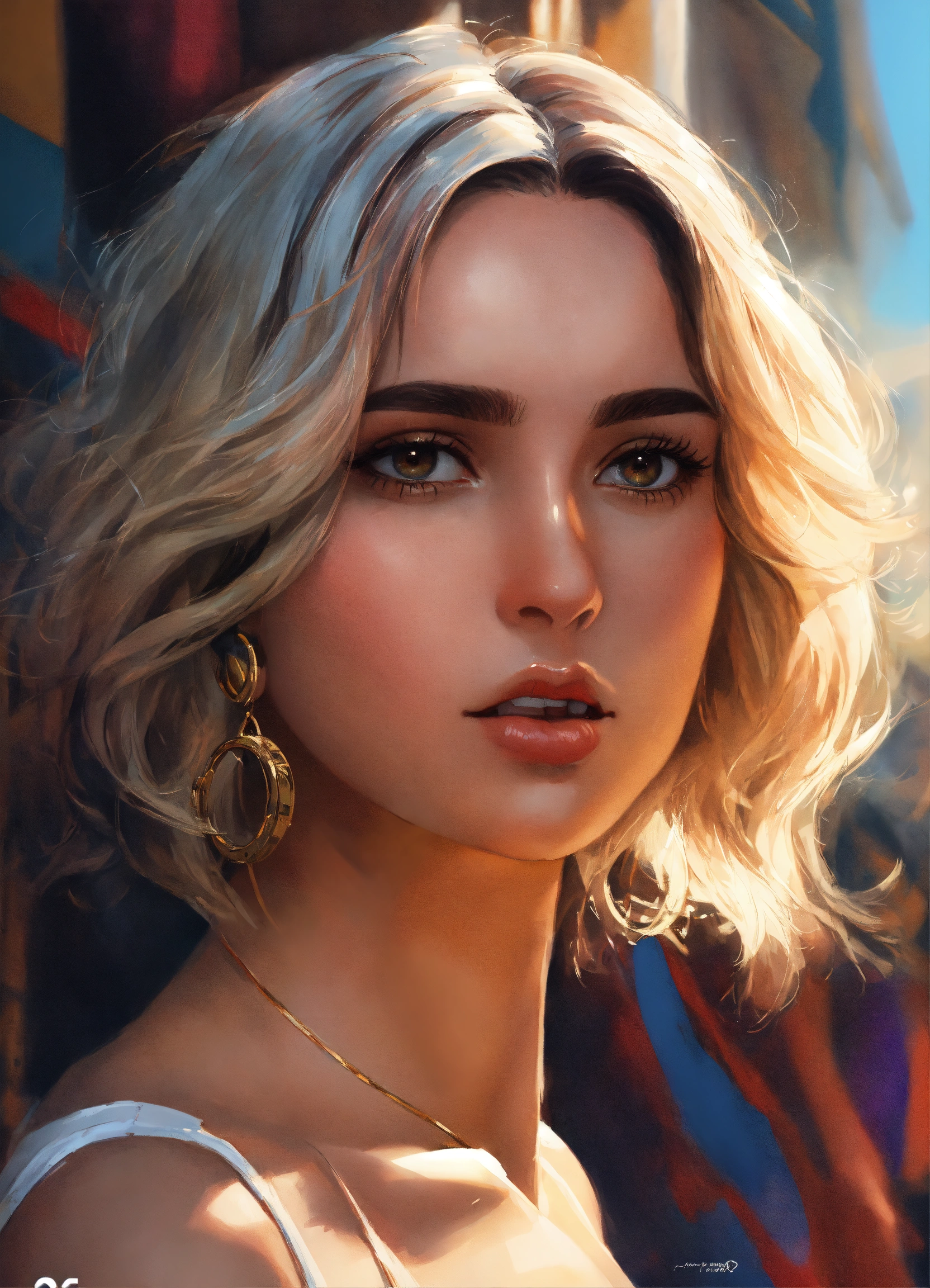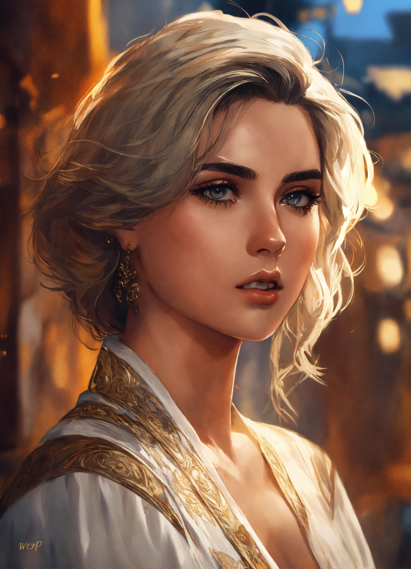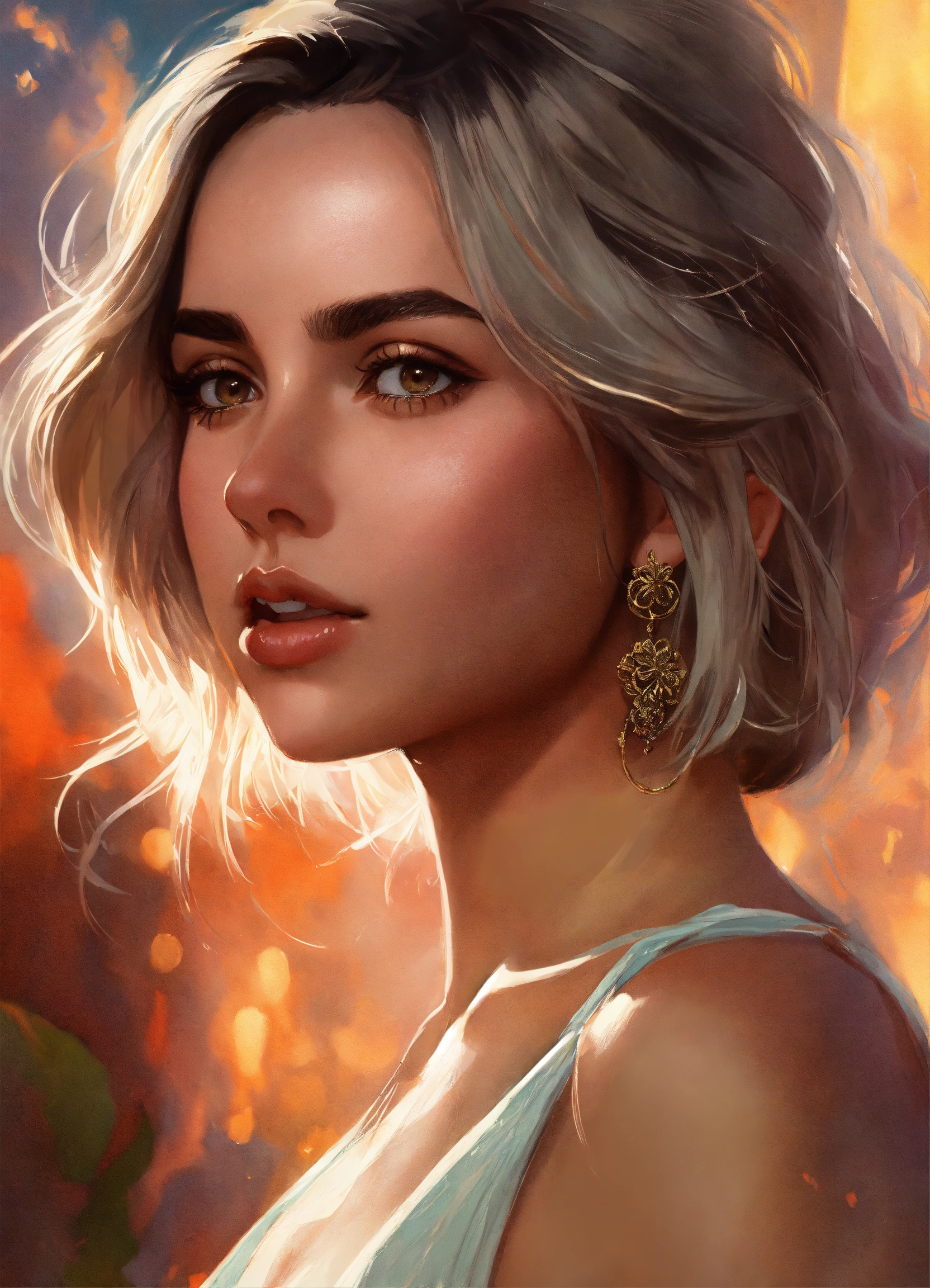 Ana de armas, the beautiful cuban famous actress high on a gorgeous mount anime, tossed, with short white hair, character portrait, 1 9 6 0 s, long hair, intricate, elegant, highly detailed, digital painting, art station, concept art, focus smooth and crisp, illustration, art by wlop, charlie bowater and alexandra fomina