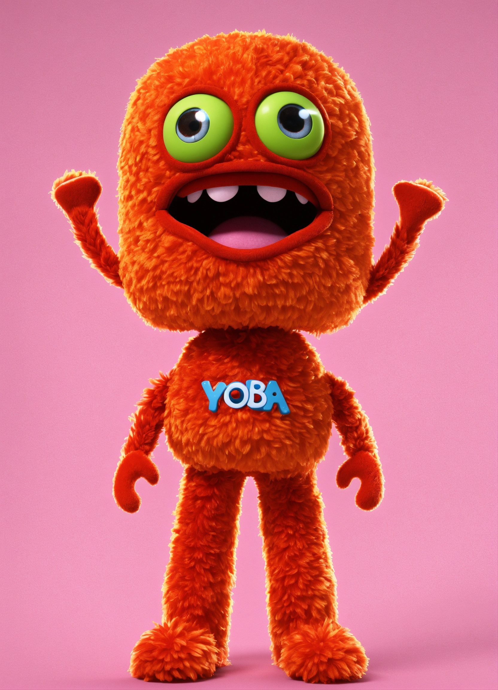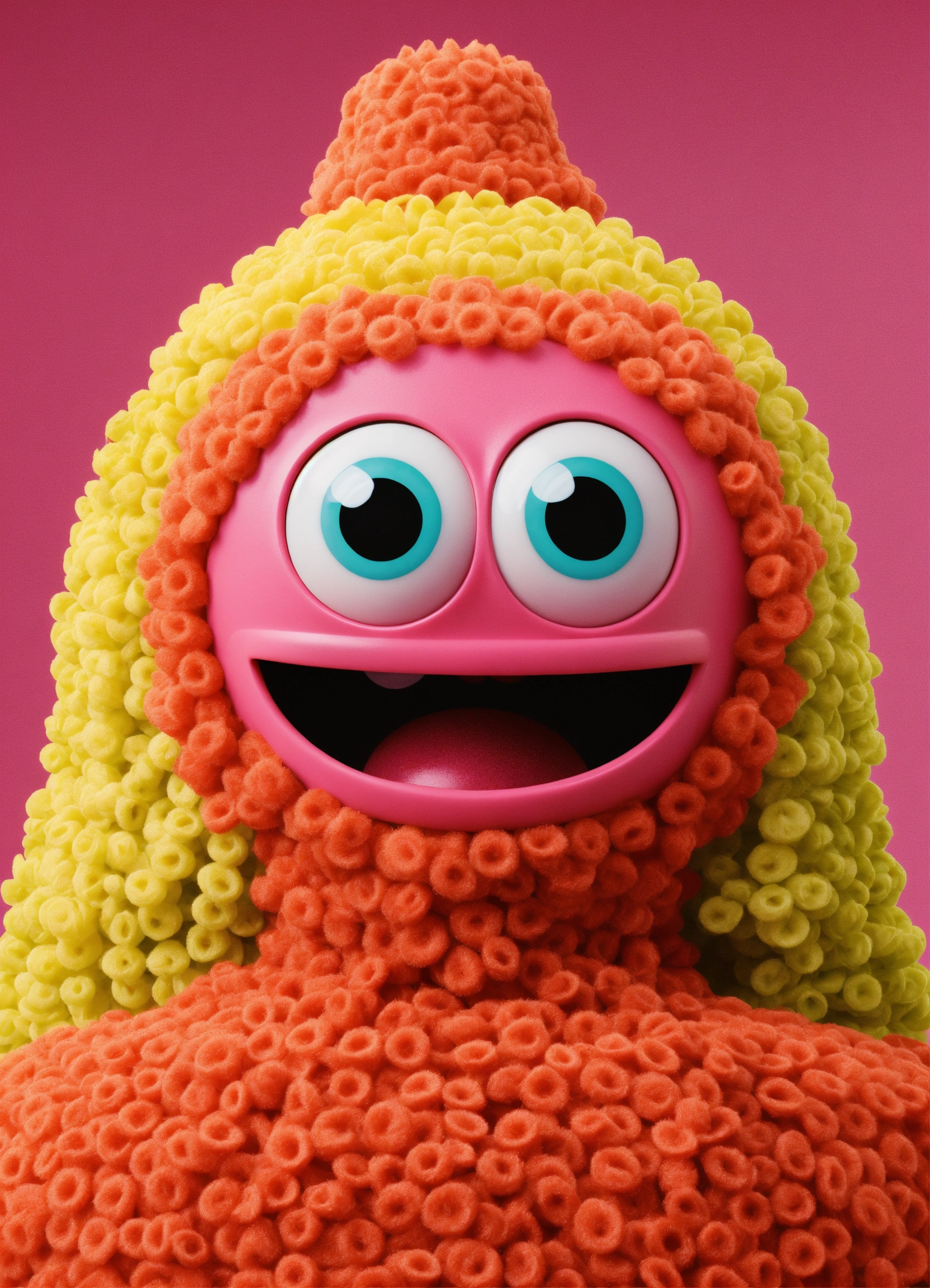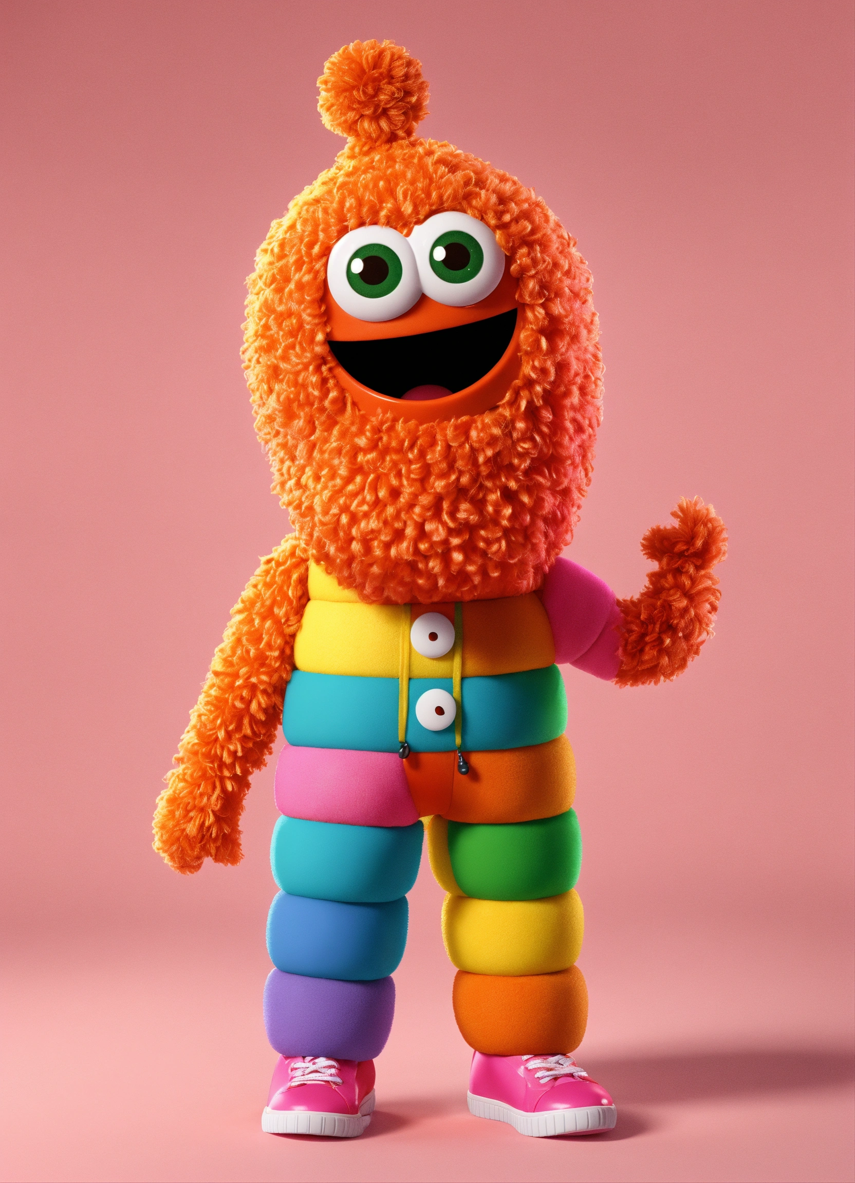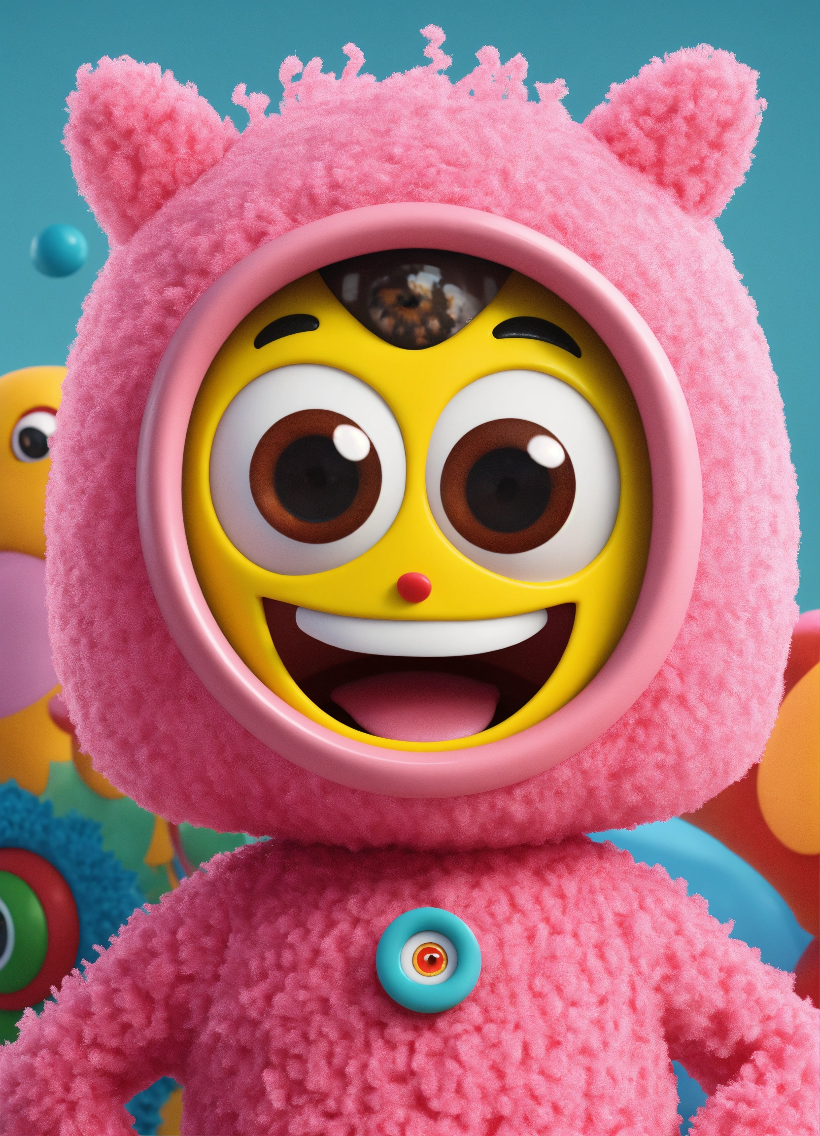 Create a cute yo gabba gabba female character with cute eyes, playful looking in front of the camera and smiling in 3d
